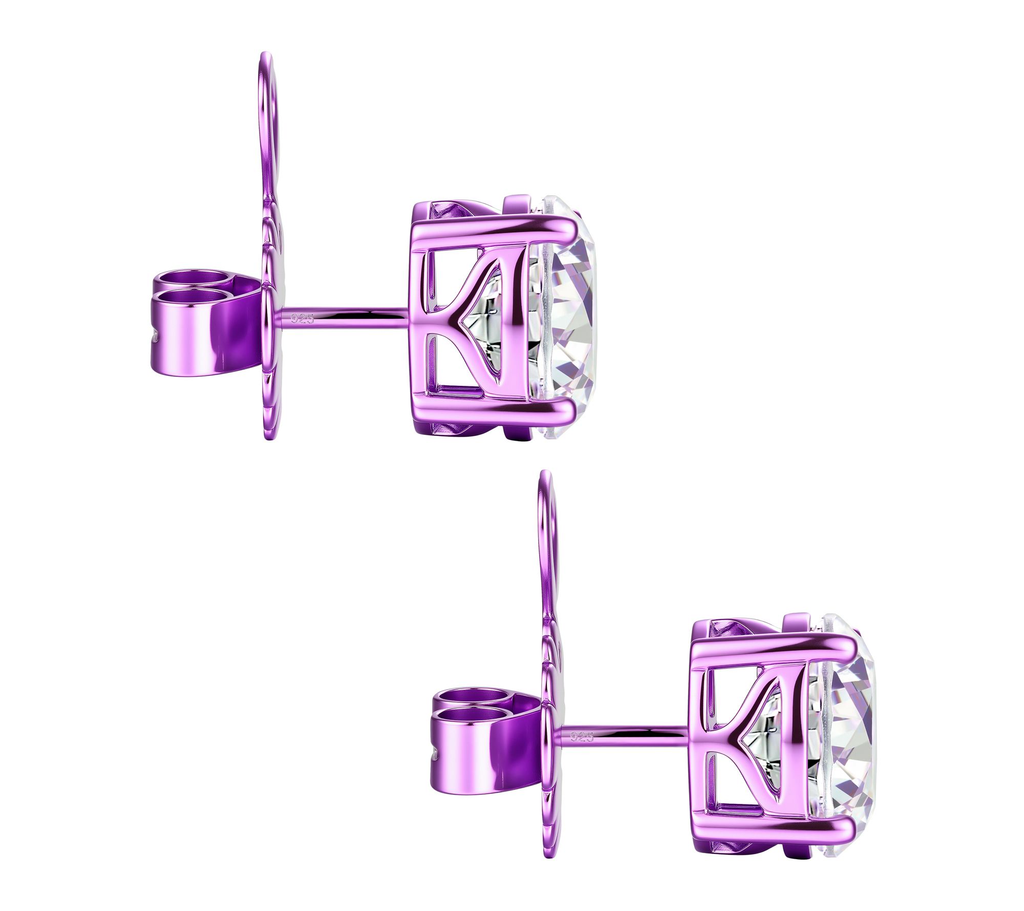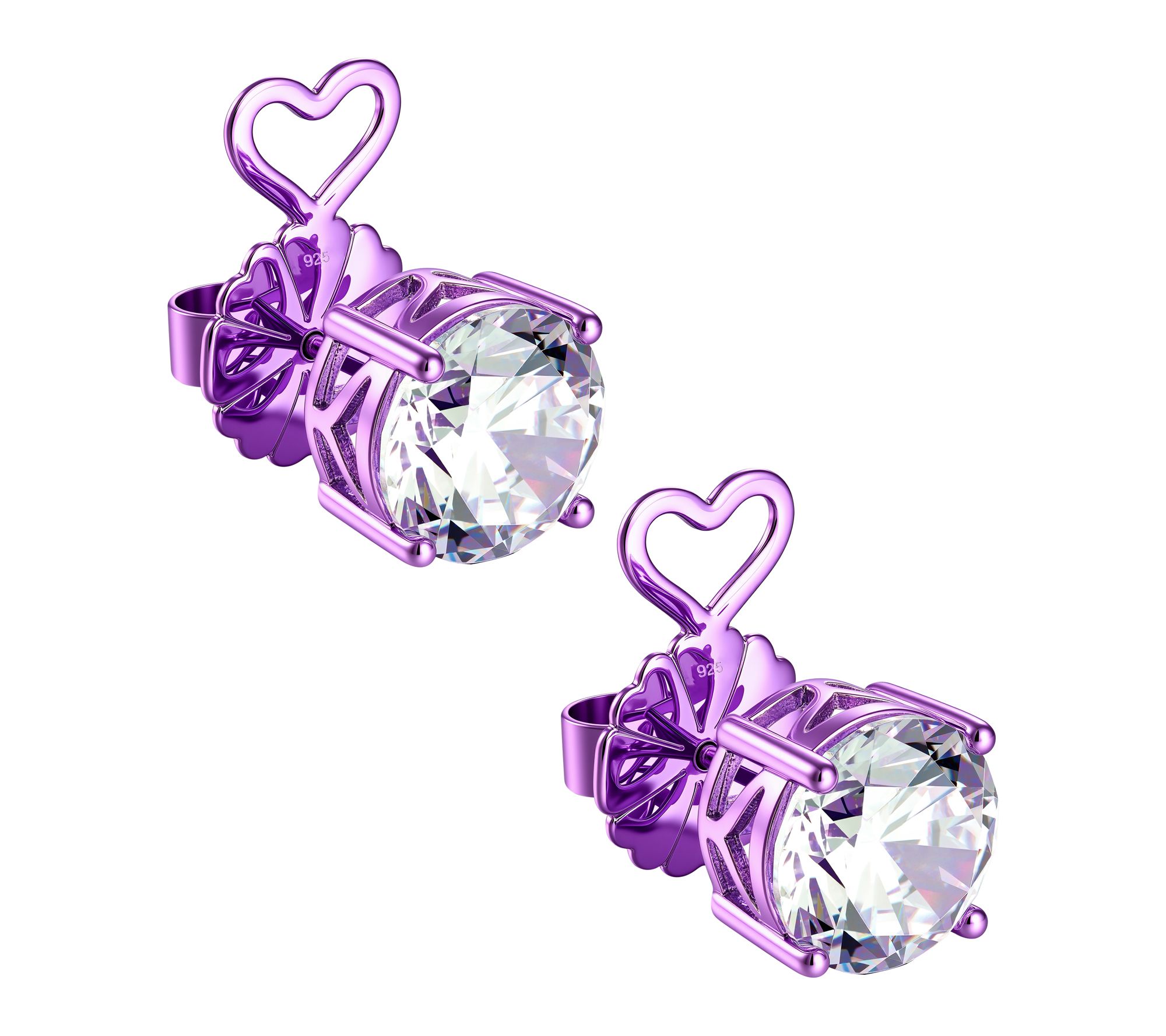 Let your style shine with these heart-shaped stud earrings, glimmering with Diamonique simulated diamonds. A vibrant purple e-coat adds a playful pop of color, making them an eye-catching finishing touch for brunch dates, evening outings, or days when you simply want to brighten your look.