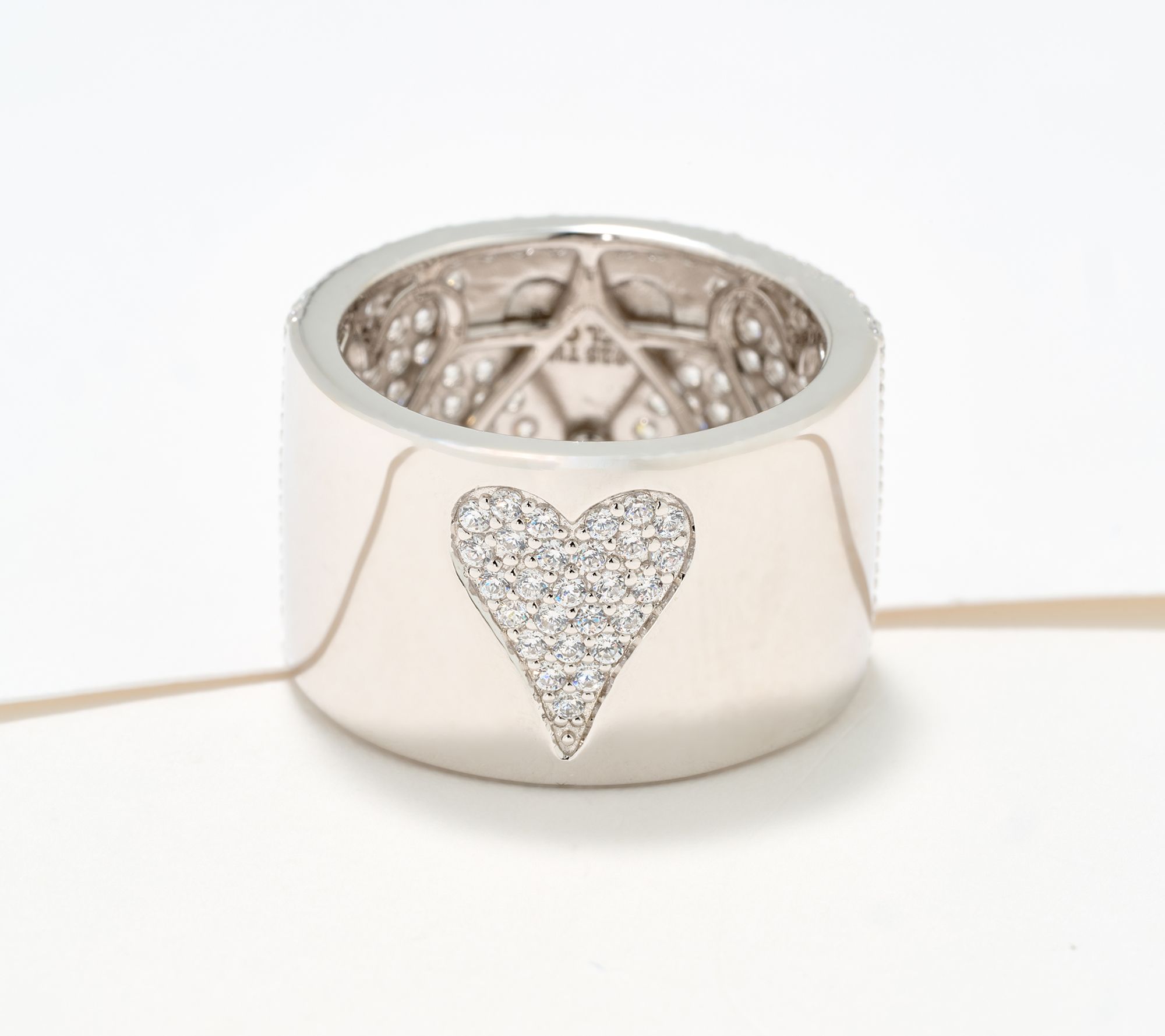 Two looks in one! Jennifer Miller's heart motif band ring features a polished heart surrounded by pave-set Diamonique simulated diamonds on one side, and a sparkling heart filled with pave-set Diamonique simulated diamonds surrounded by polished metal on the other side. You get to choose your passion -- subtle sparkle or all out bling!