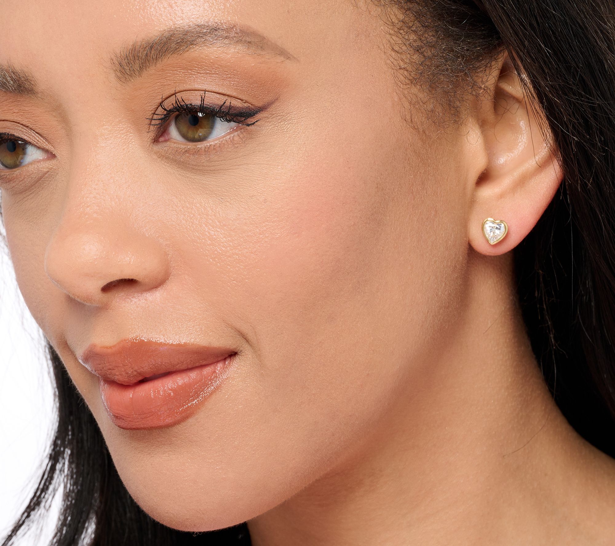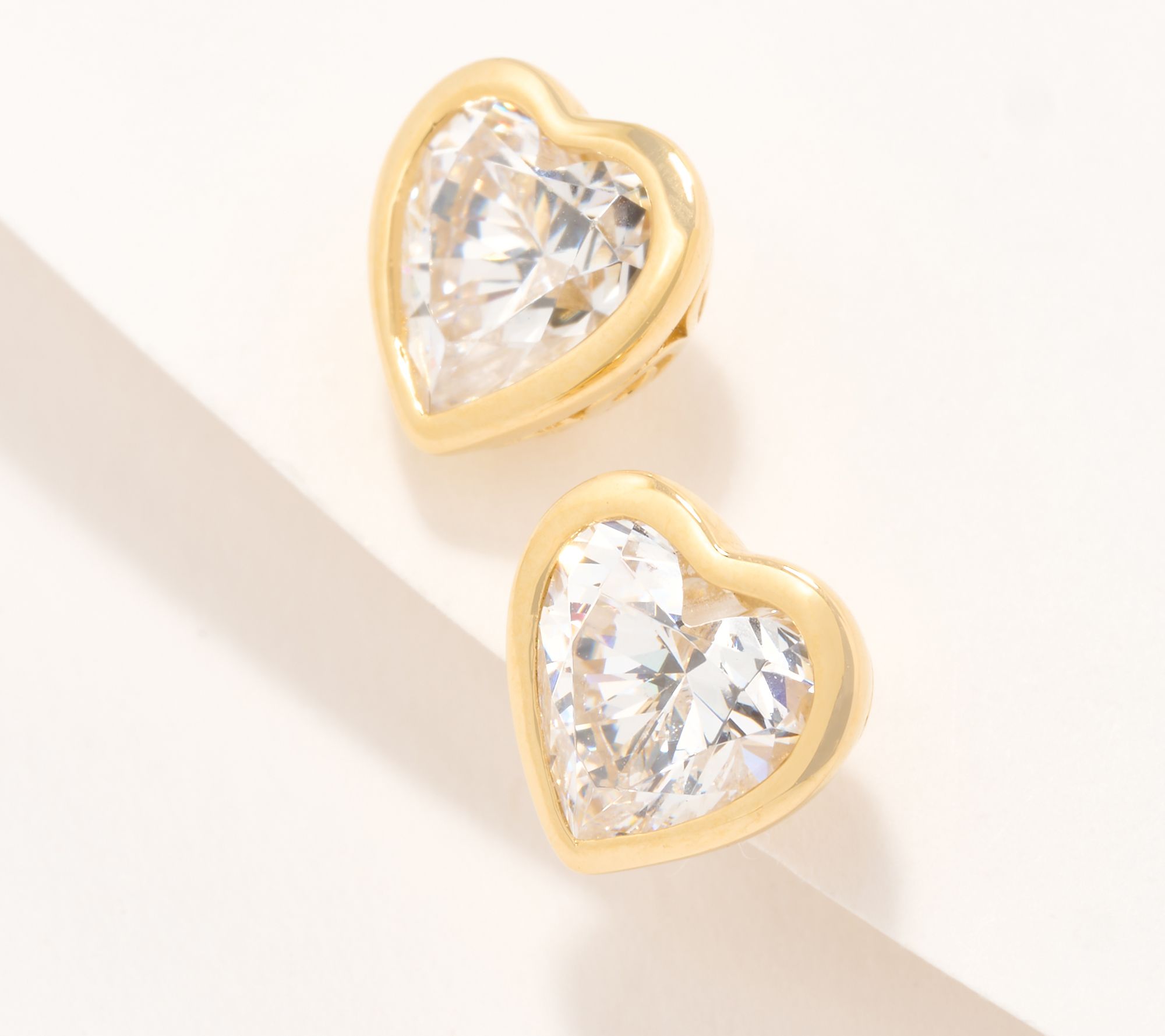 Studs: heart-shaped, bezel-set Diamonique simulated diamond studs; posts and clutches, for pierced ears only