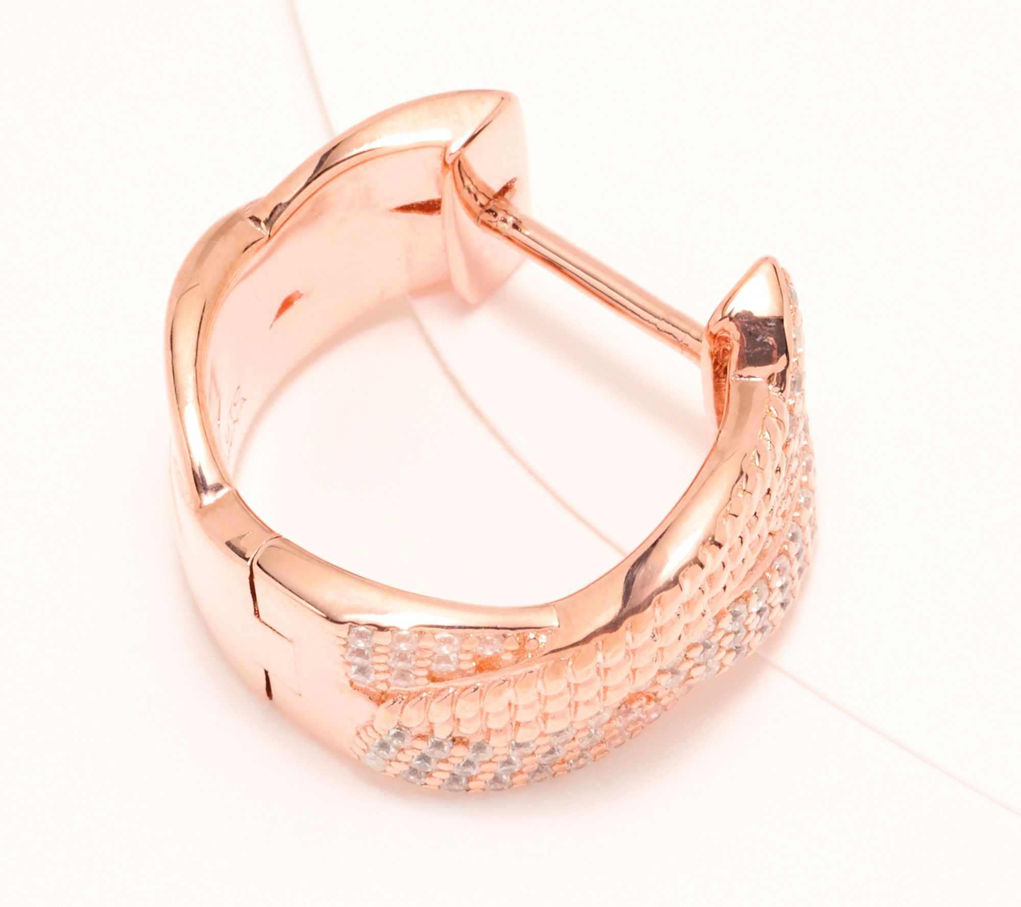Twisted huggie-hoop design with textured finish and round, white Diamonique simulated diamonds