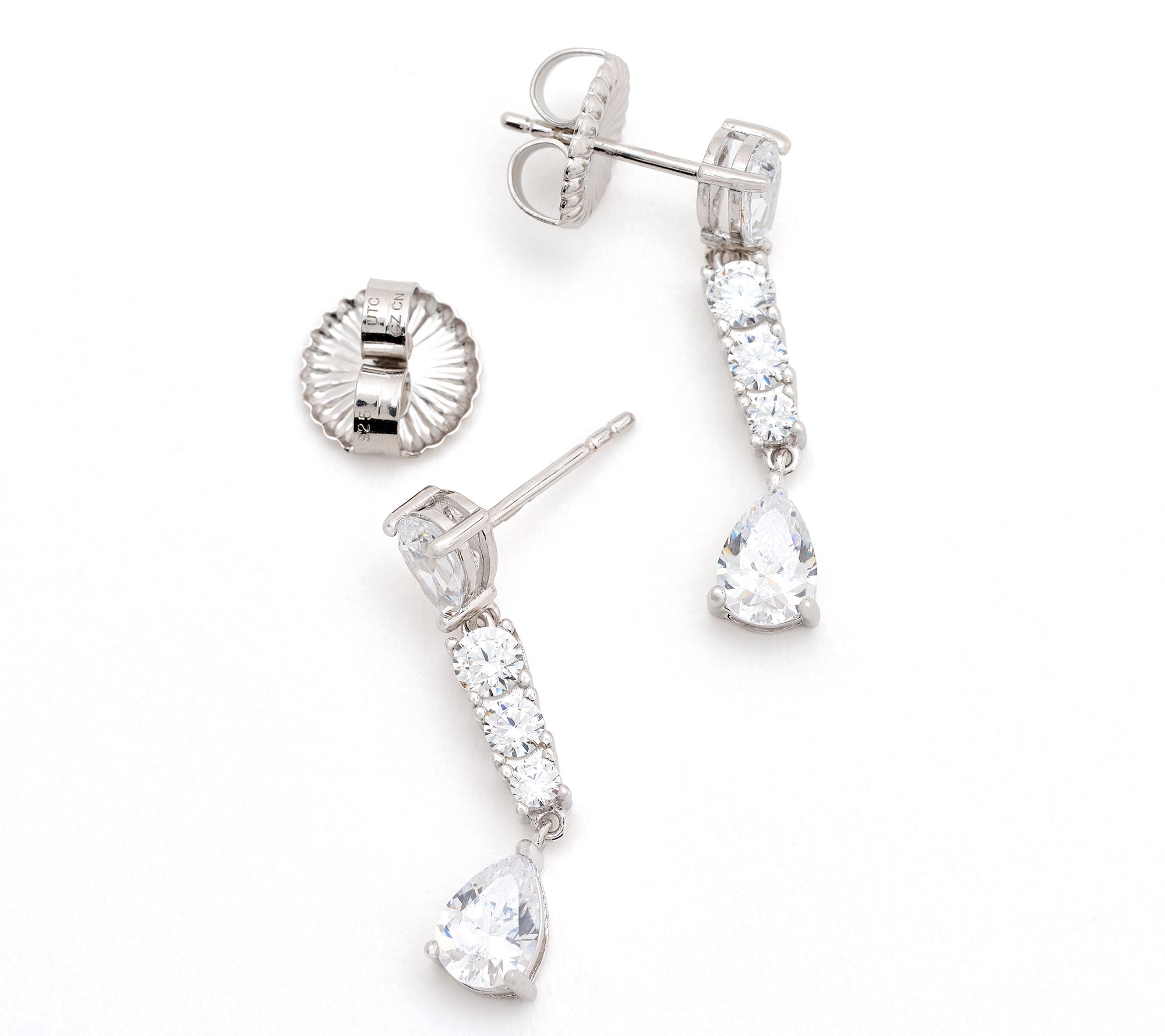 Prong-set pear and round Diamonique simulated diamonds in a linear drop design