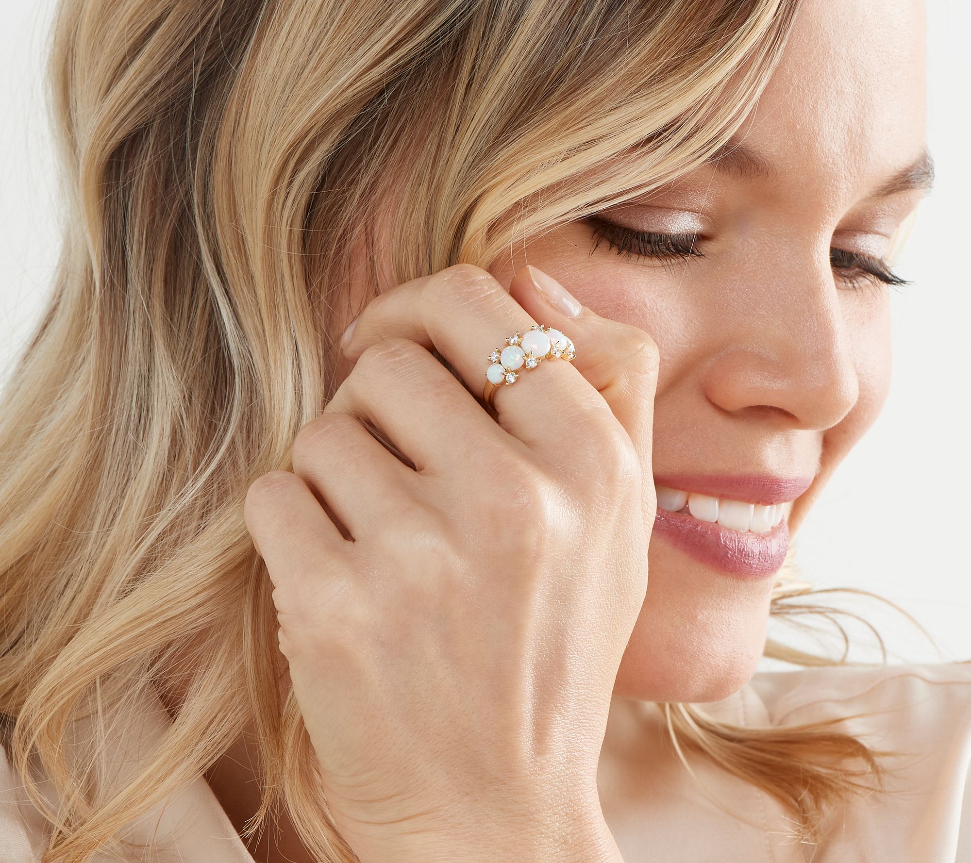 • Simulated opal and round, white Diamonique simulated diamonds
