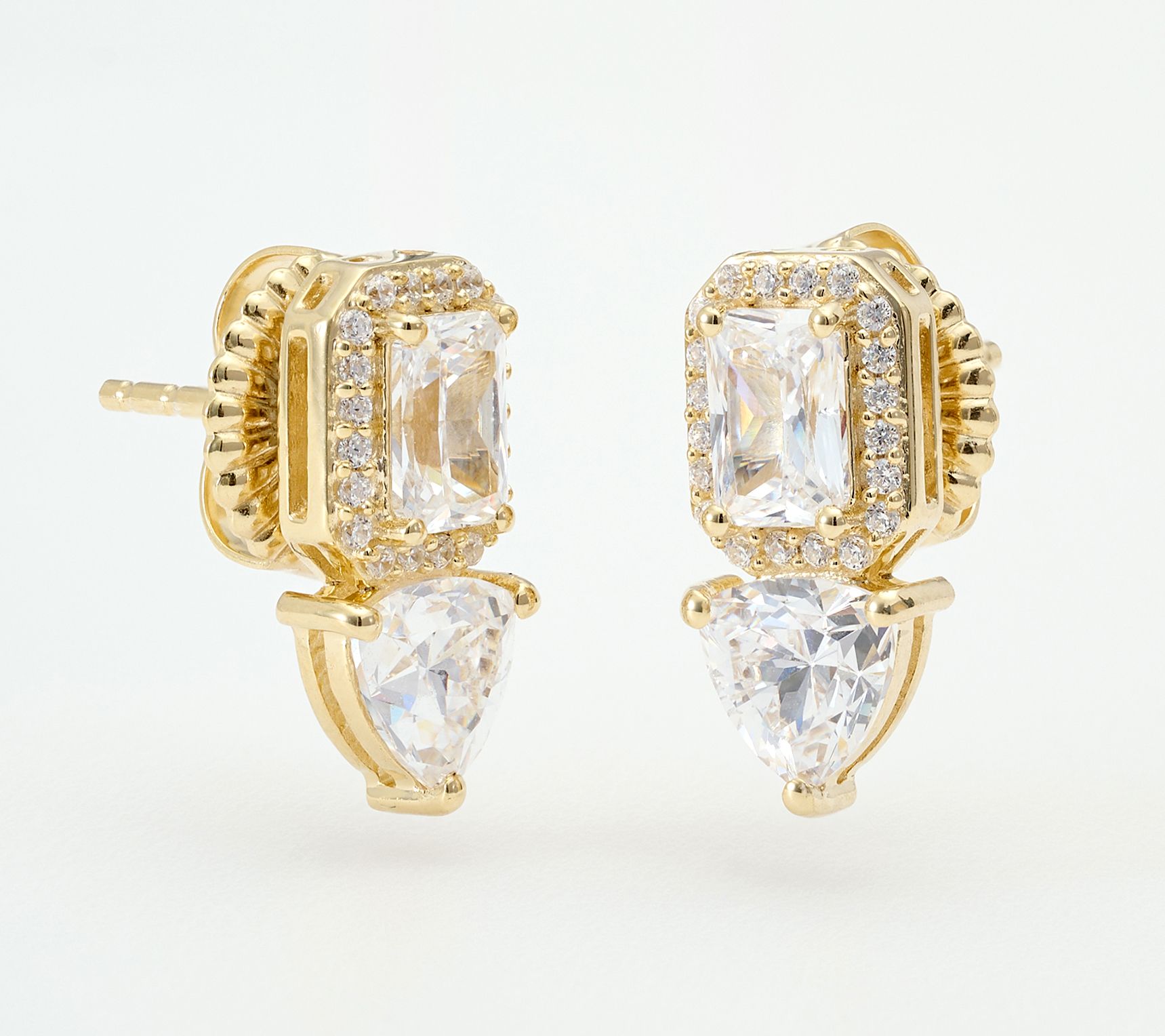 A masterclass in sparkle, these elegant drop earrings, with a Kathy Levine spin, feature Diamonique simulated diamond baguette- and trillion-cut shapes. From boardroom meetings to cocktail hours, their dazzling halo detail brings just the right amount of glamour to your look.