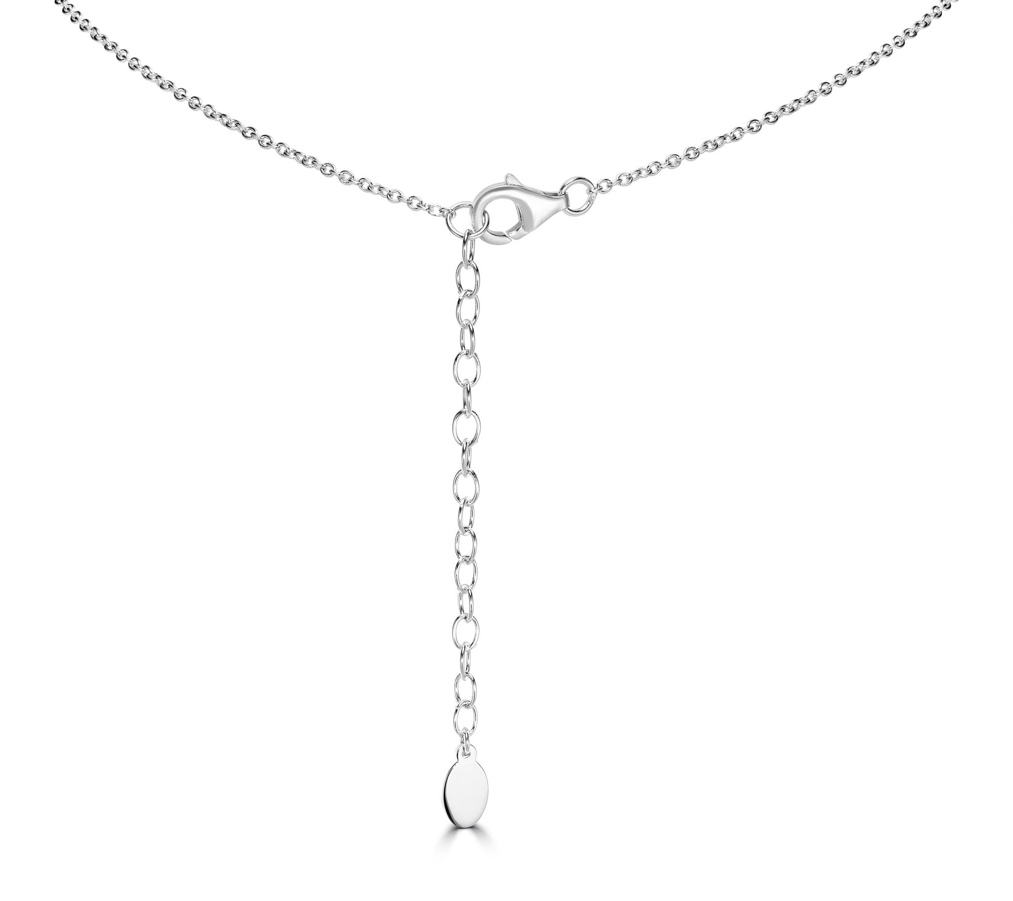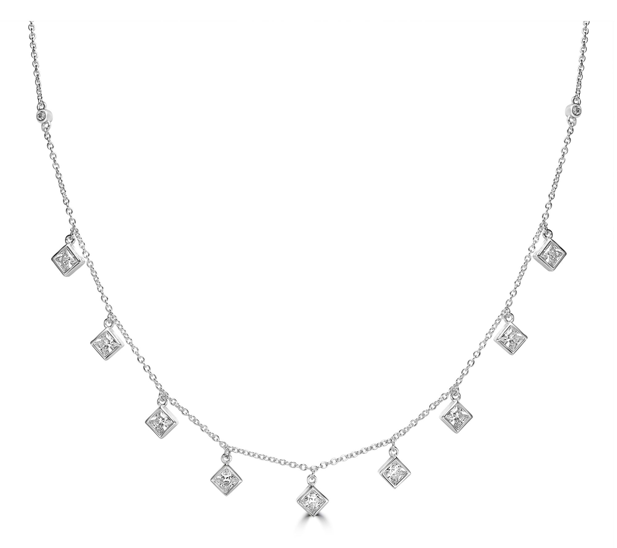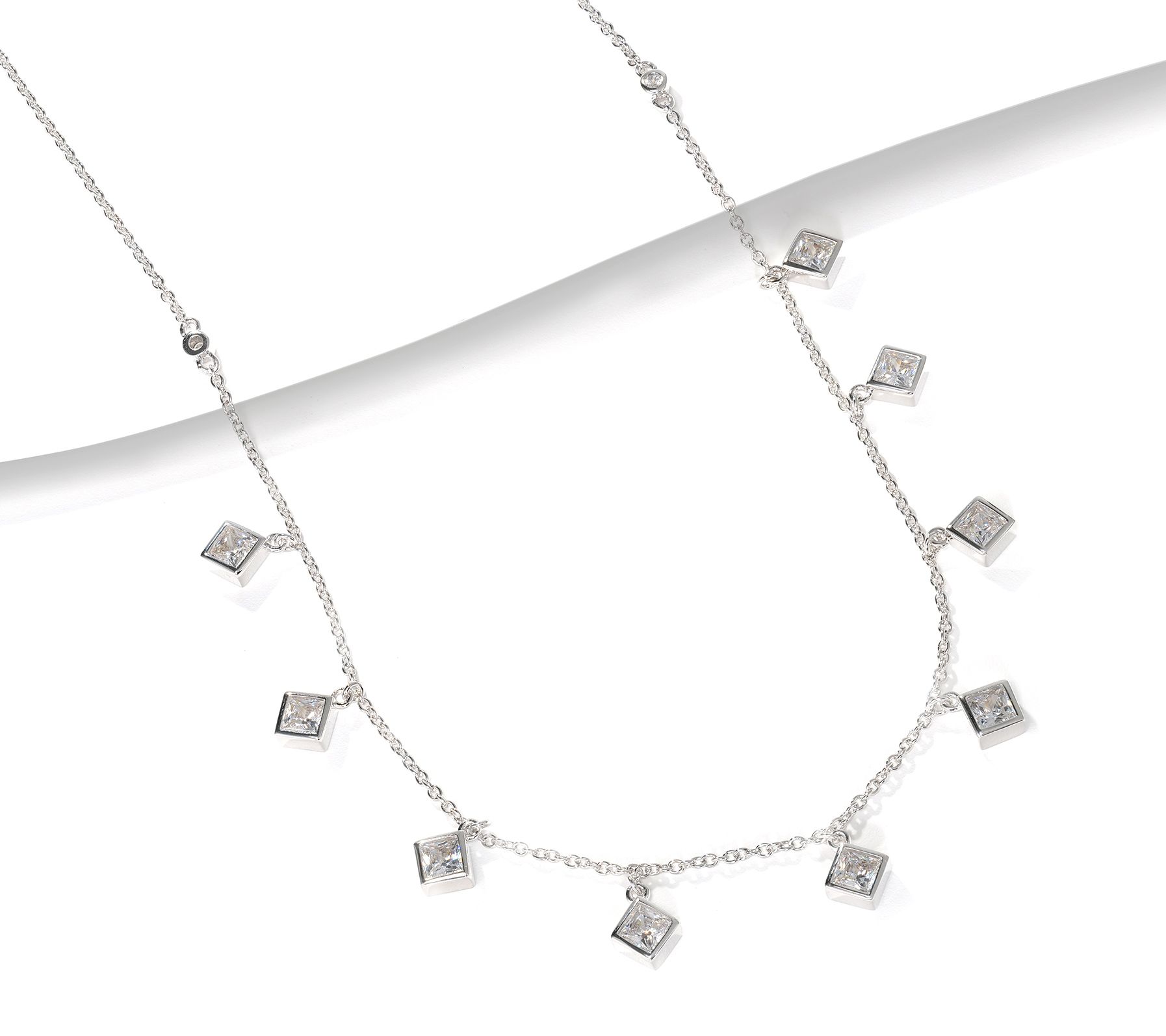 - Bezel-set, princess-cut, Diamonique simulated diamond dangles; rolo link chain; polished finish