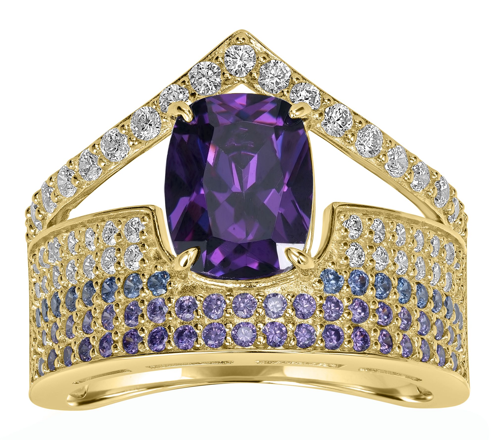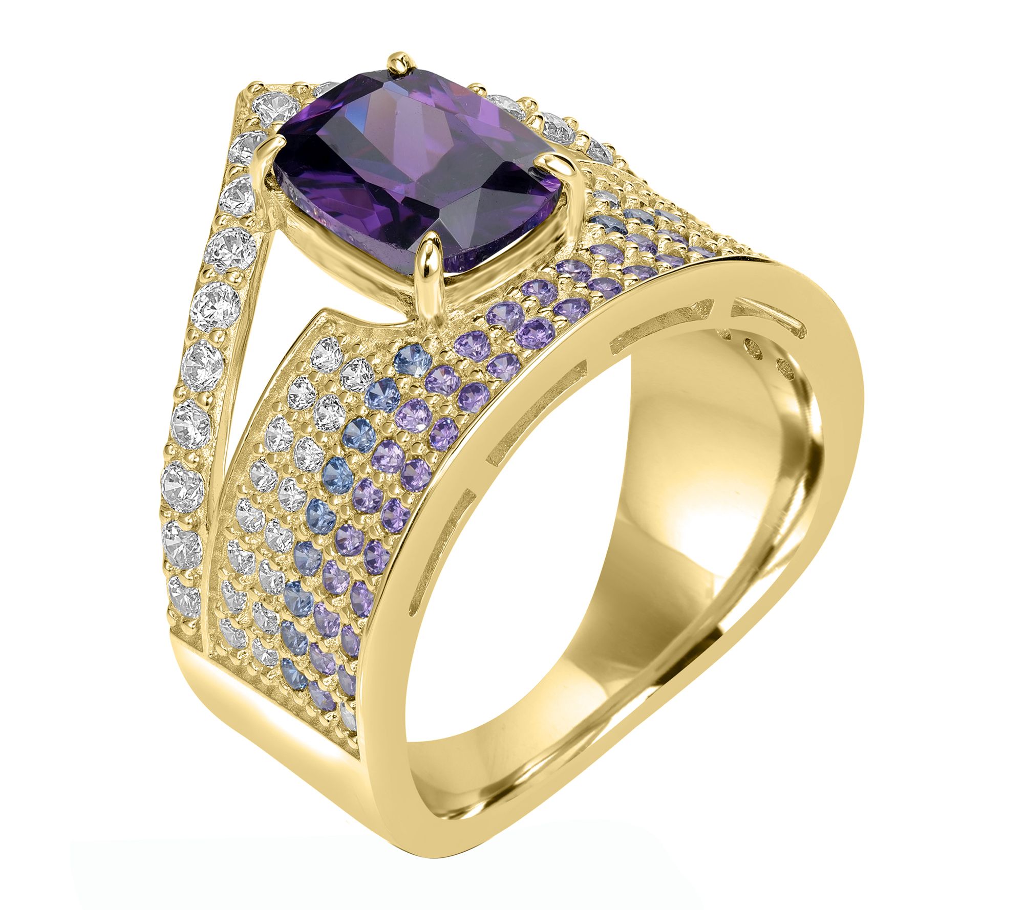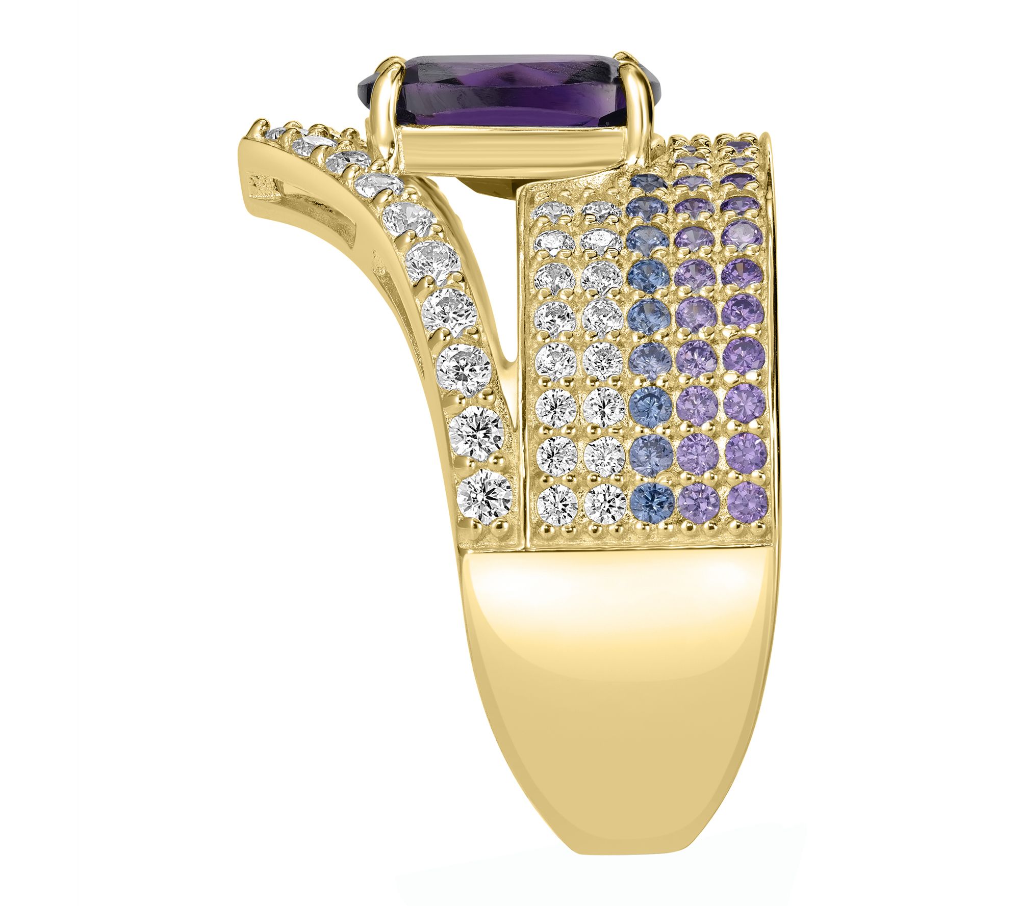 Let your signature style shine with a ring that captures the glamour of purple hues and sparkling accents, instantly transforming any outfit from day to night.