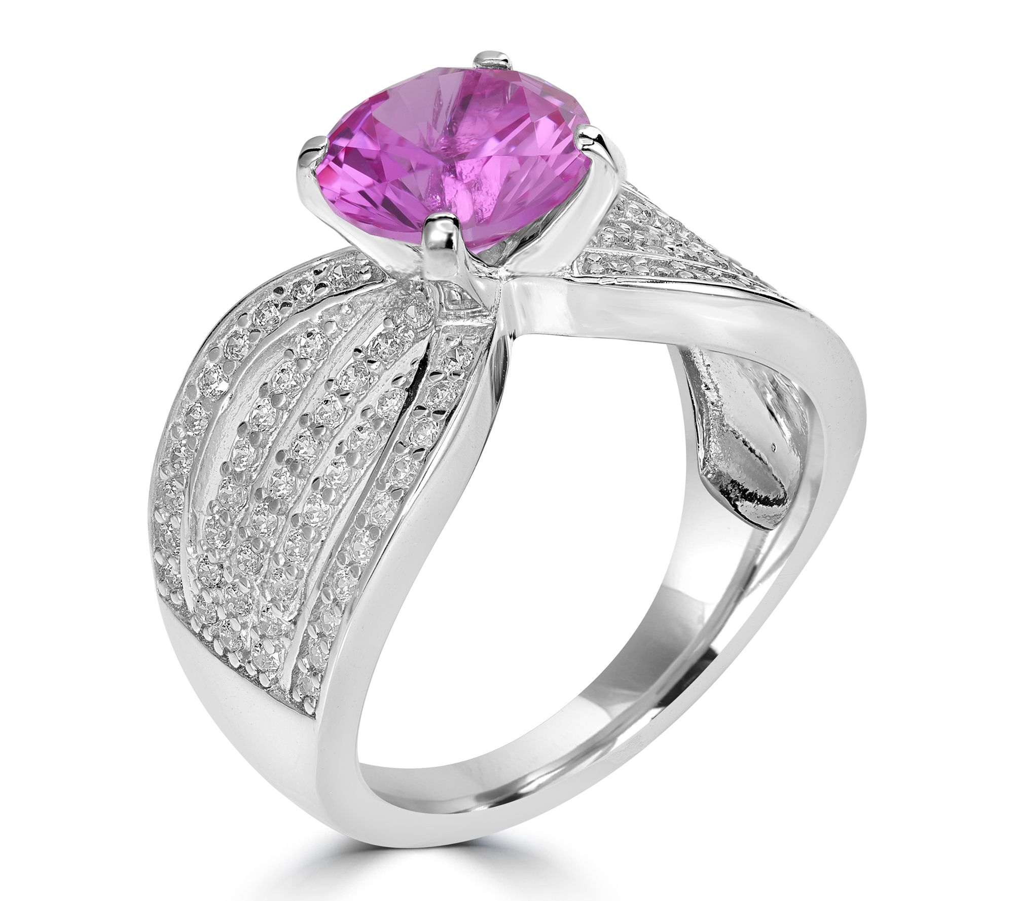 A swirl of shimmer makes every occasion a little brighter -- especially when you slip on this round ribbon band ring, created in collaboration with Kathy Levine. Gleaming sterling silver and a center Diamonique simulated diamond lend irresistible sparkle for milestone moments, special celebrations, or simply elevating your own everyday.