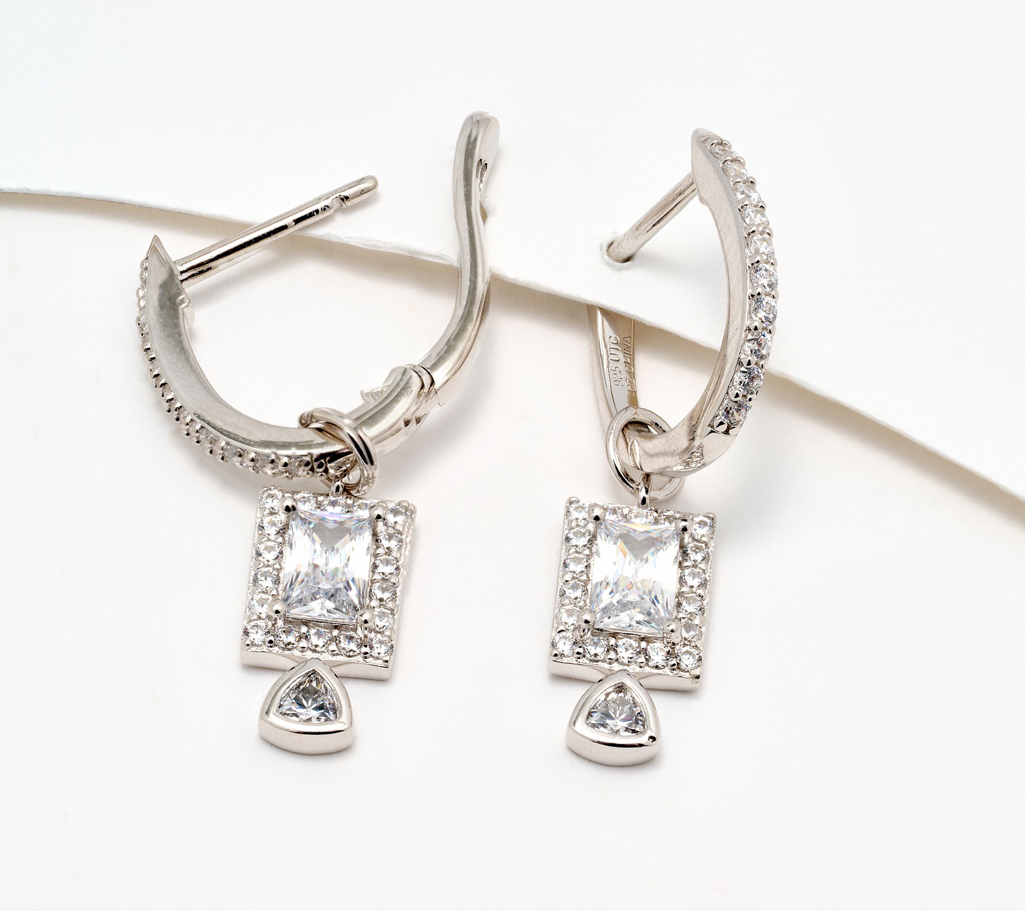 Round and baguette Diamonique simulated diamonds; removable Diamonique simulated diamond baguette drop