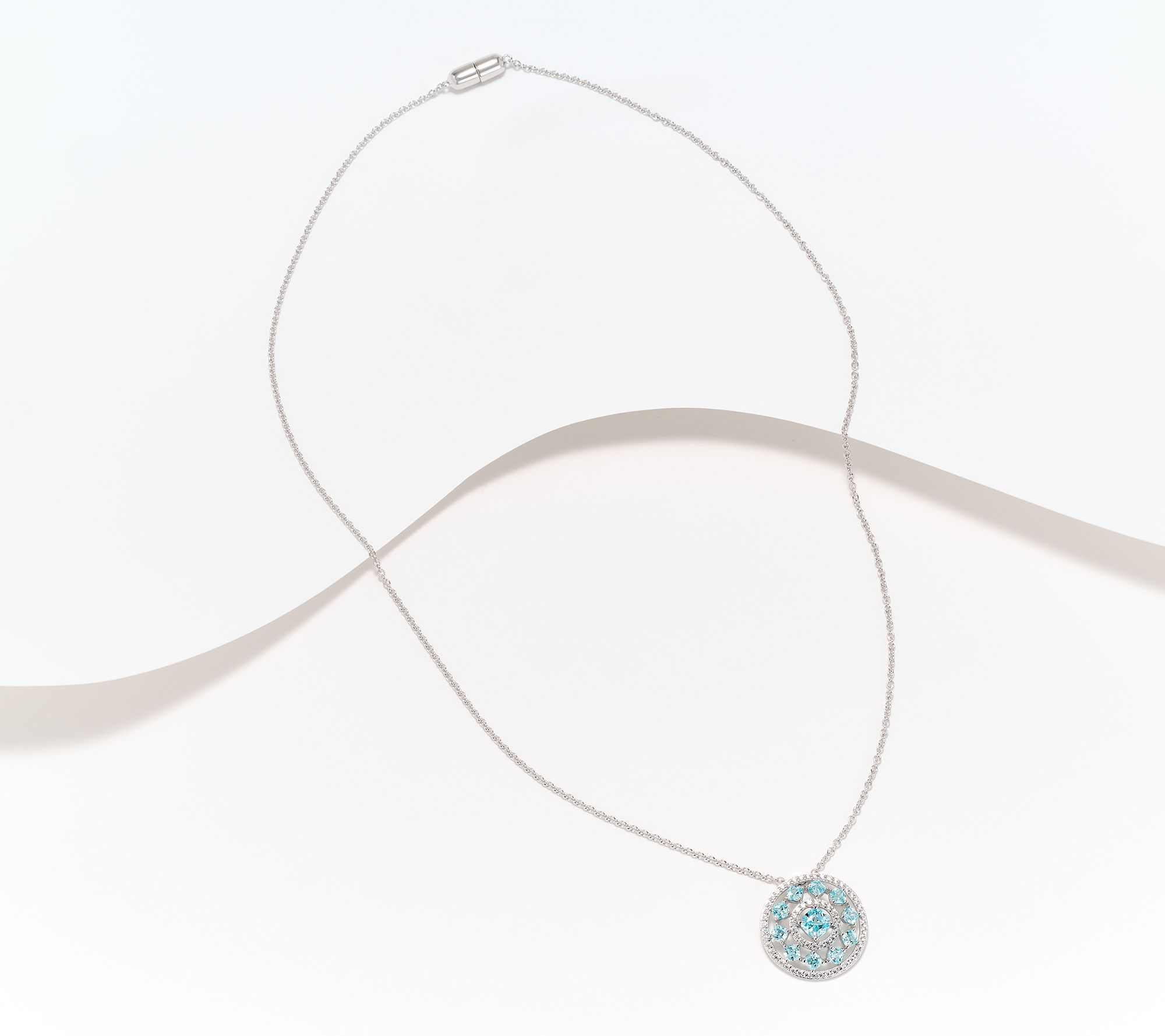 All-around radiance and a pop of pastel color are the haute hallmarks of this stunning pendant and chain necklace. A seemingly endless array of sparkling Diamonique simulated diamonds sits in a circular sterling silver design, making every outfit it's worn with a mesmerizing style statement.