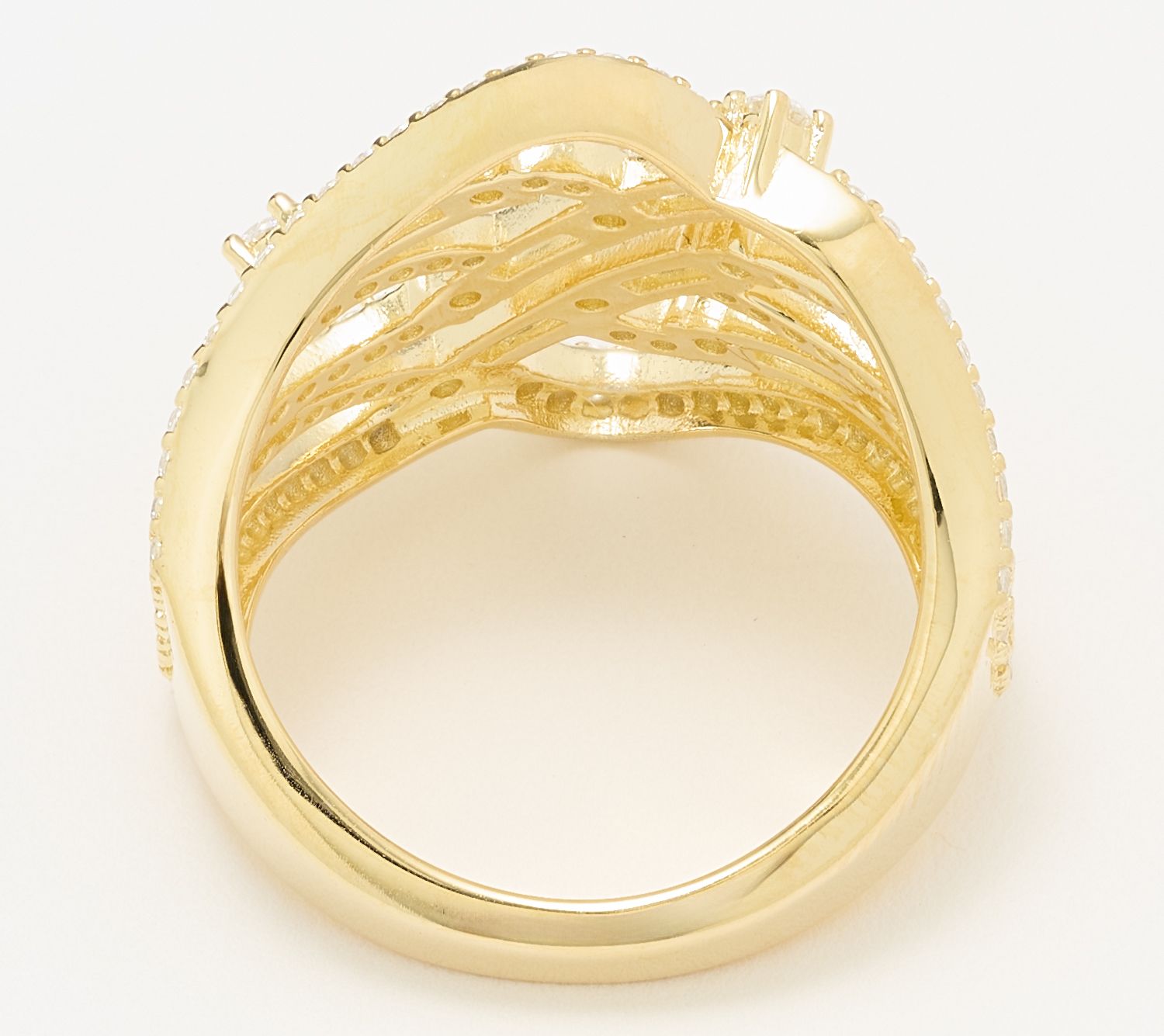 Sparkling with a mix of round and baguette Diamonique simulated diamonds, this band ring brings a lively twist to your jewelry lineup. Wear it to accent an elegant evening outfit or stack it for a playful daytime look -- the swirl design and rich plating options make it easy to express your personal flair. Gift it to someone special or add it to your rotation for radiance every day.