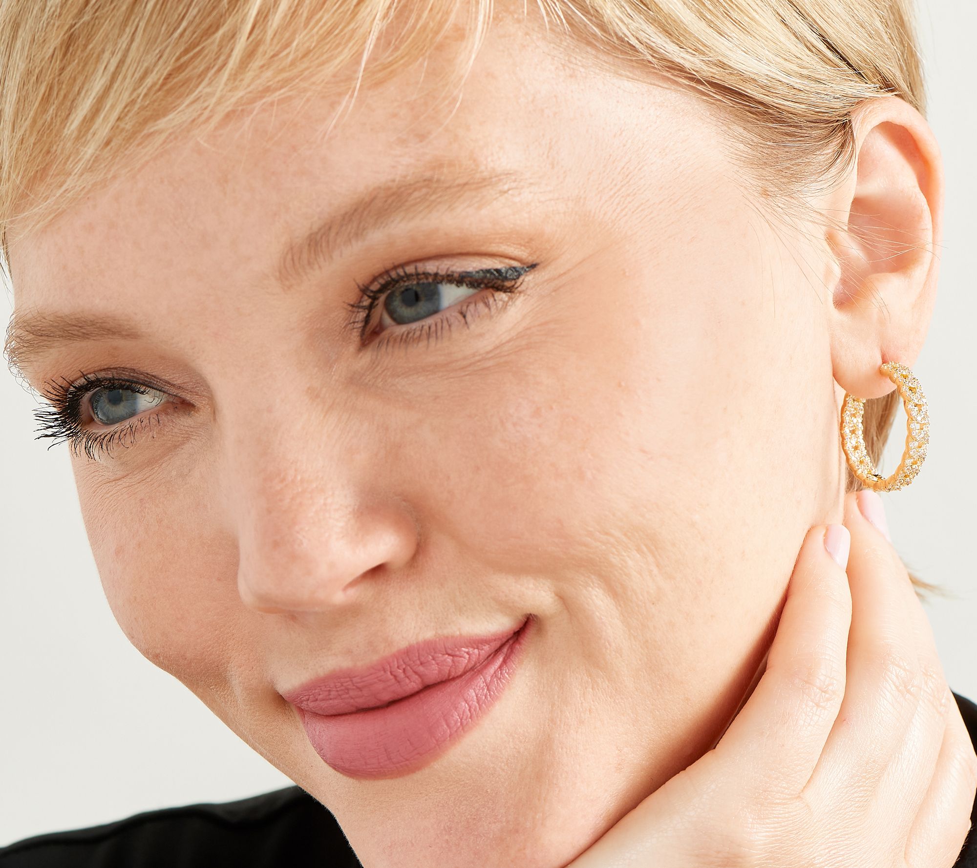 Hardware update! For a look that reads next-level luxe, sub in these sparkly chain link hoops for your usual plain-Jane pair.