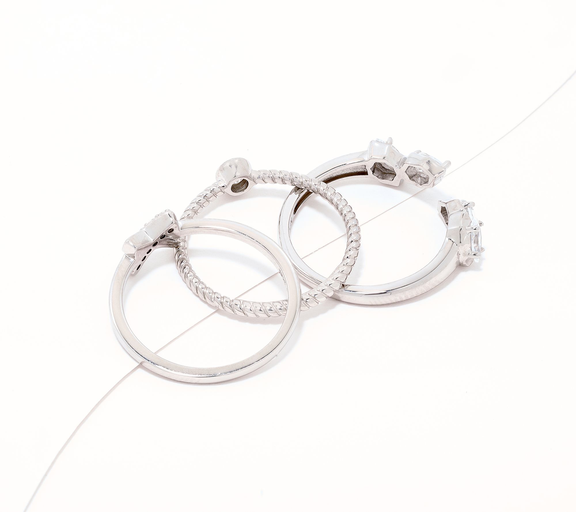 Diamonique x Lulu Frost 3 Piece Ring Stack, Sterling Silver