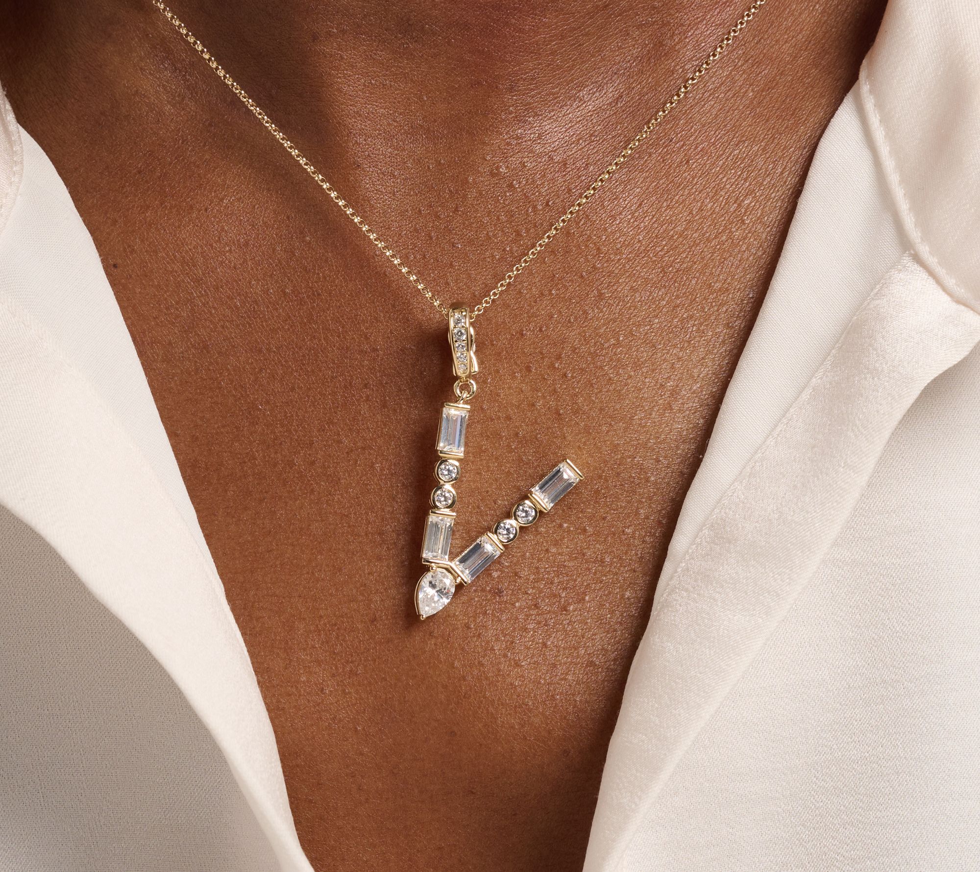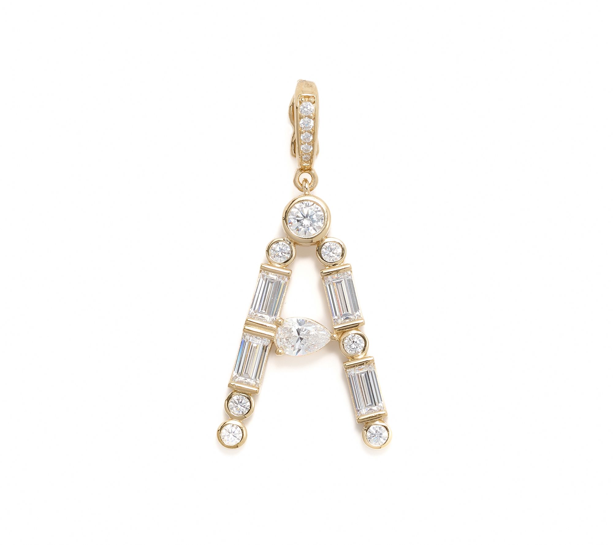 Add an expressive flourish to a bracelet or necklace with this initial charm enhancer, crafted from 14K yellow gold-plated sterling silver and radiant with Diamonique simulated diamonds. Personalized from A to Z, each initial sparkles with a meaningful touch, making it a thoughtful gift or a signature piece for daily wear. Celebrate your story with the charm that shines as bright as you do.