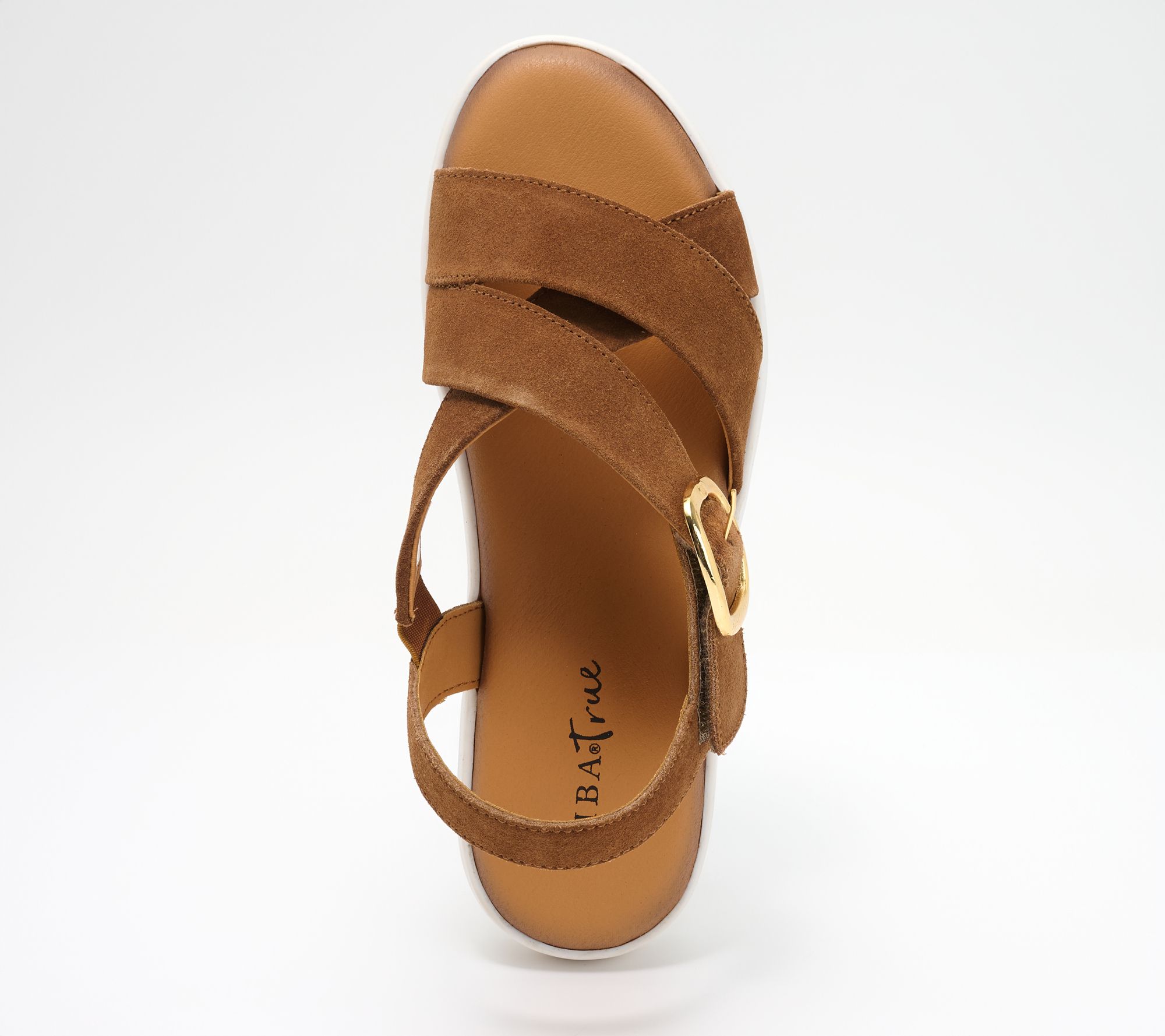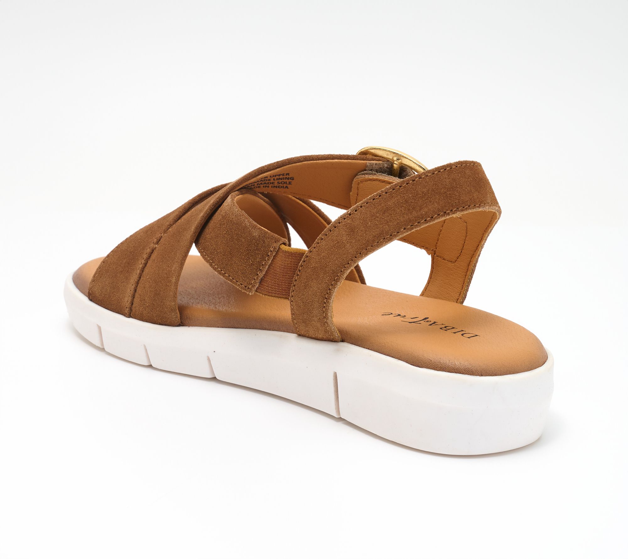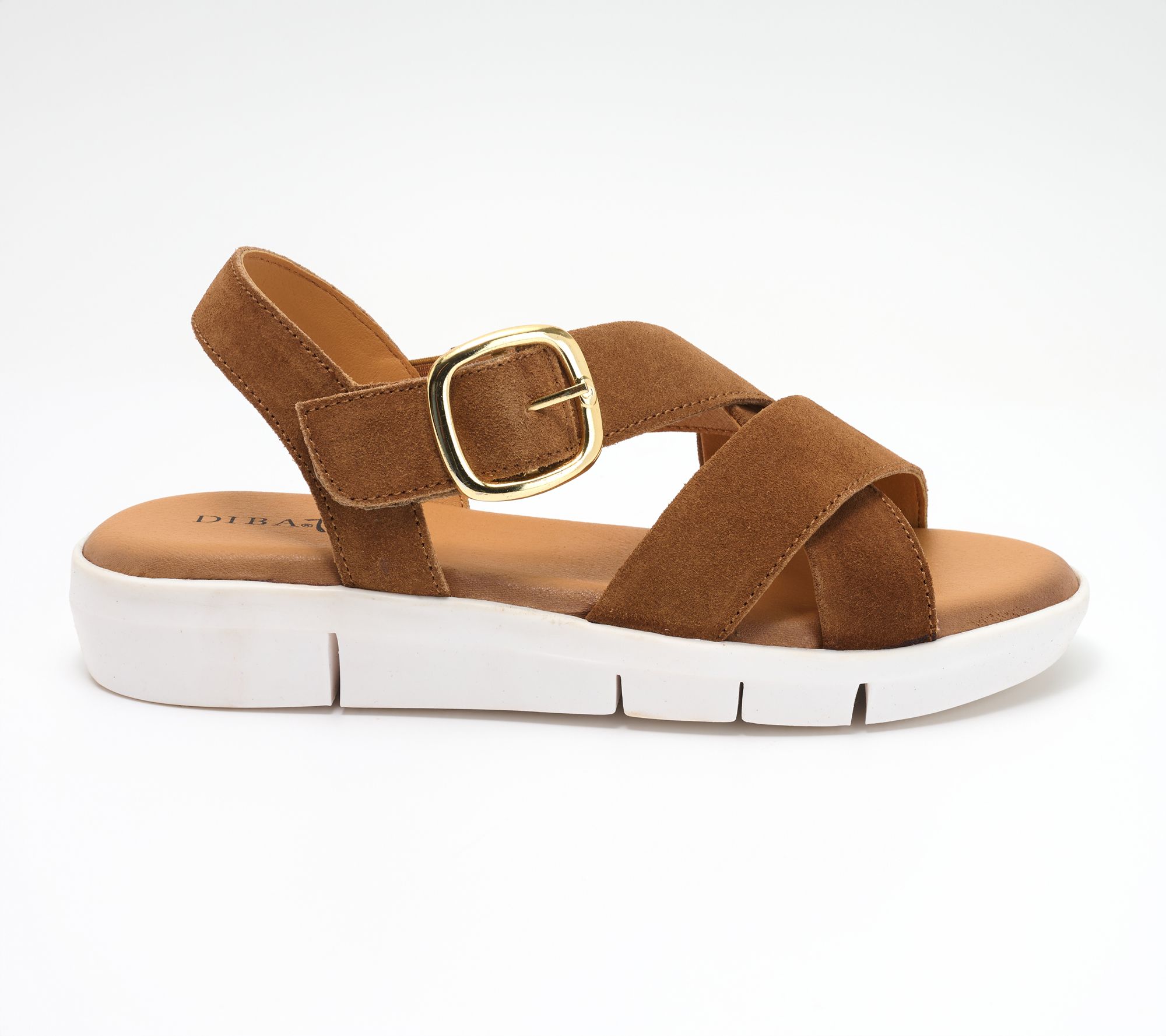 Diba True Leather Adjustable Sandals-Advo Cate. Genuine suede or metallic leather, comfort sporty sandal, round toe, adjustable velcro strap. Heel height: 1.25". Sole thicknesS: 1". Fit: true to size. Upper: cow foil or cow suede. Lining/outsole: man-made. COO: Imported.