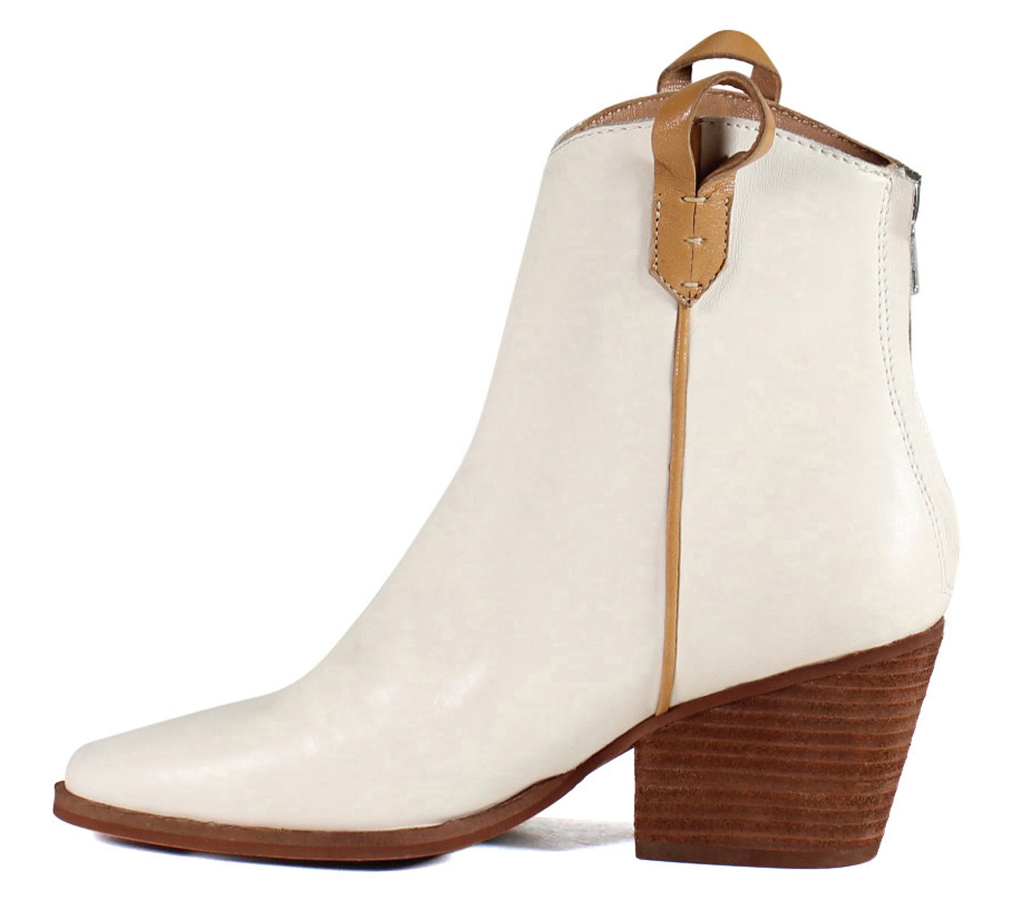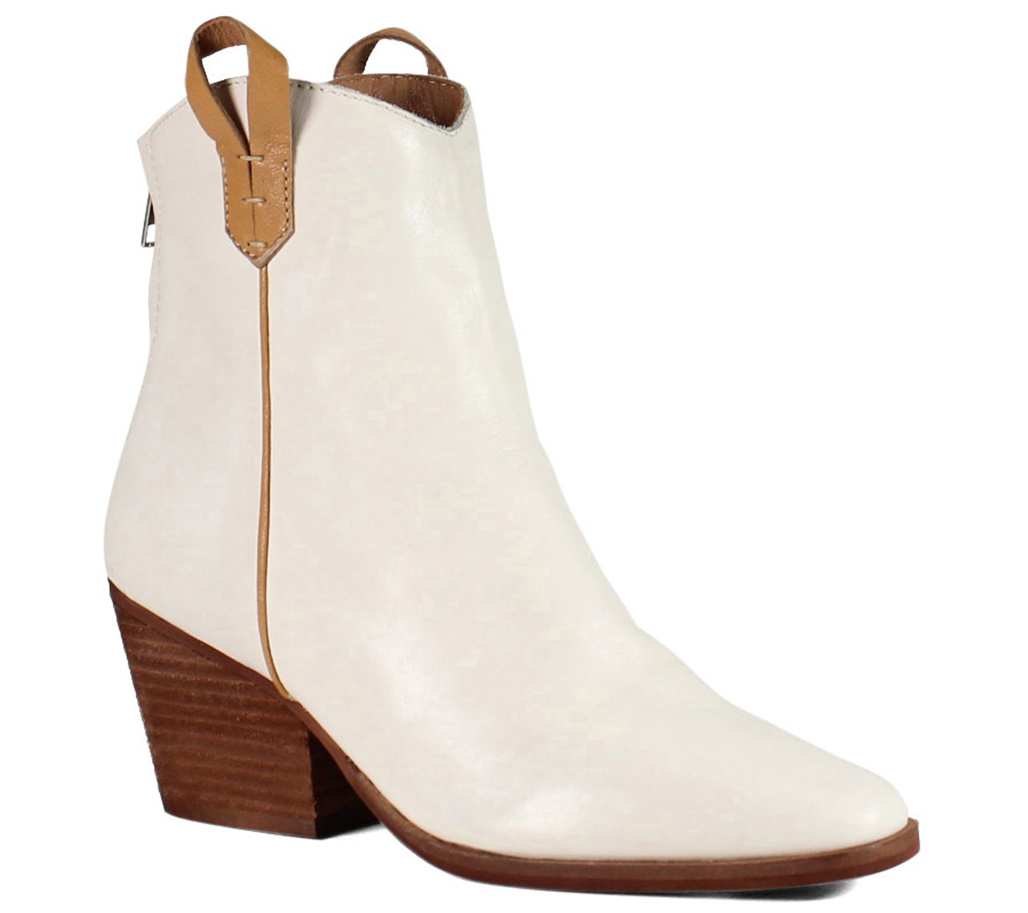Give your footwear a kick of Western-inspired glamour with these sleek pointed-toe booties that sit atop sturdy stacked heels. From Diba True.