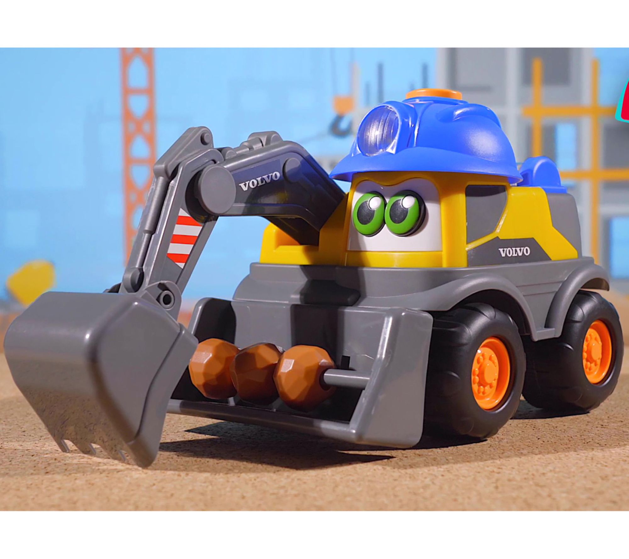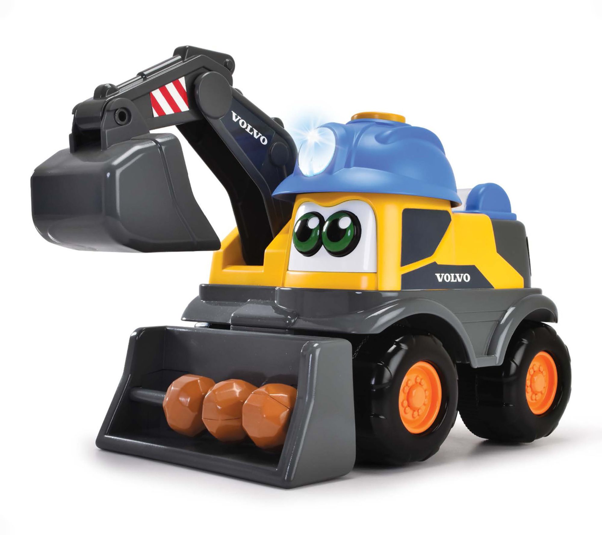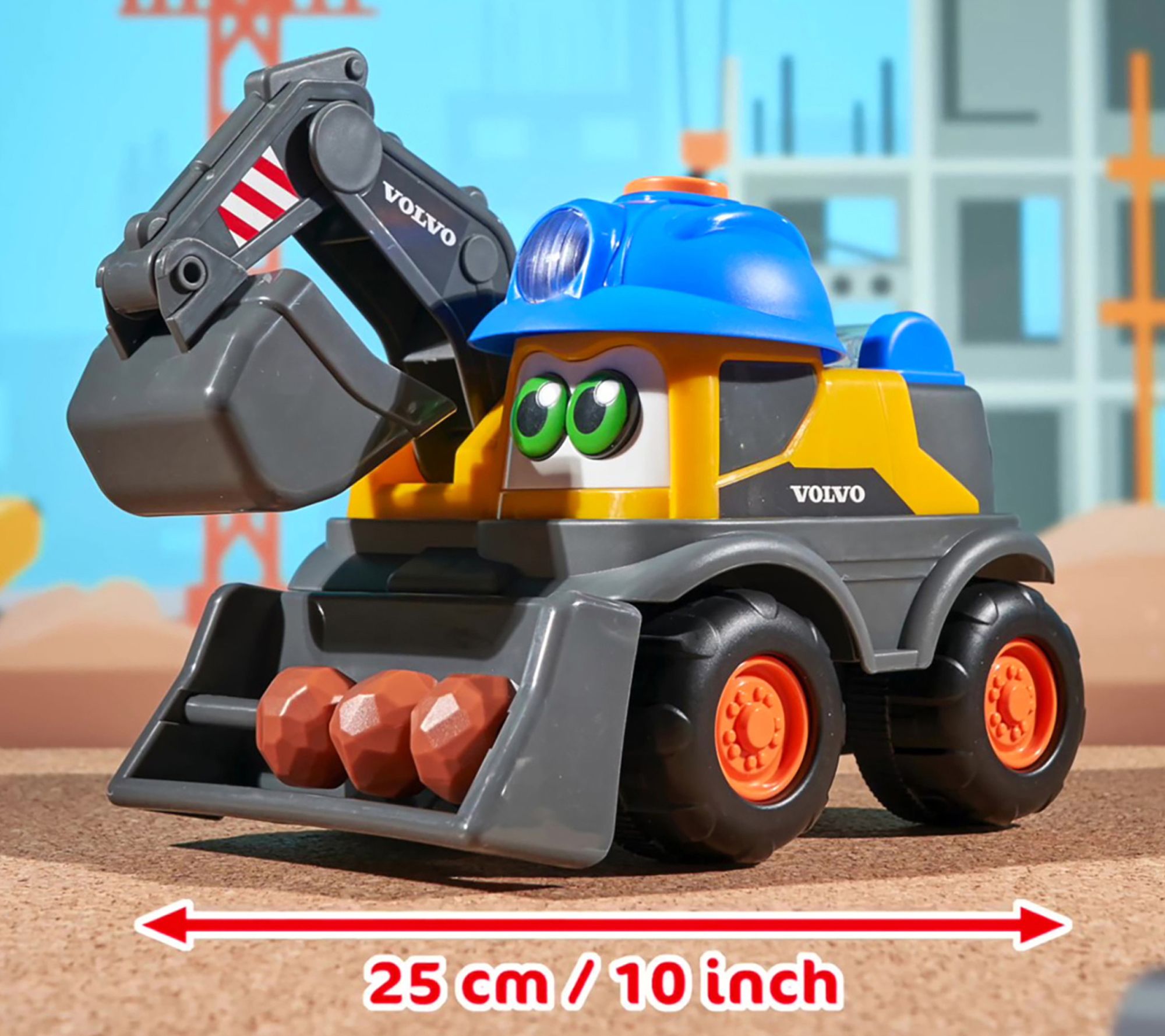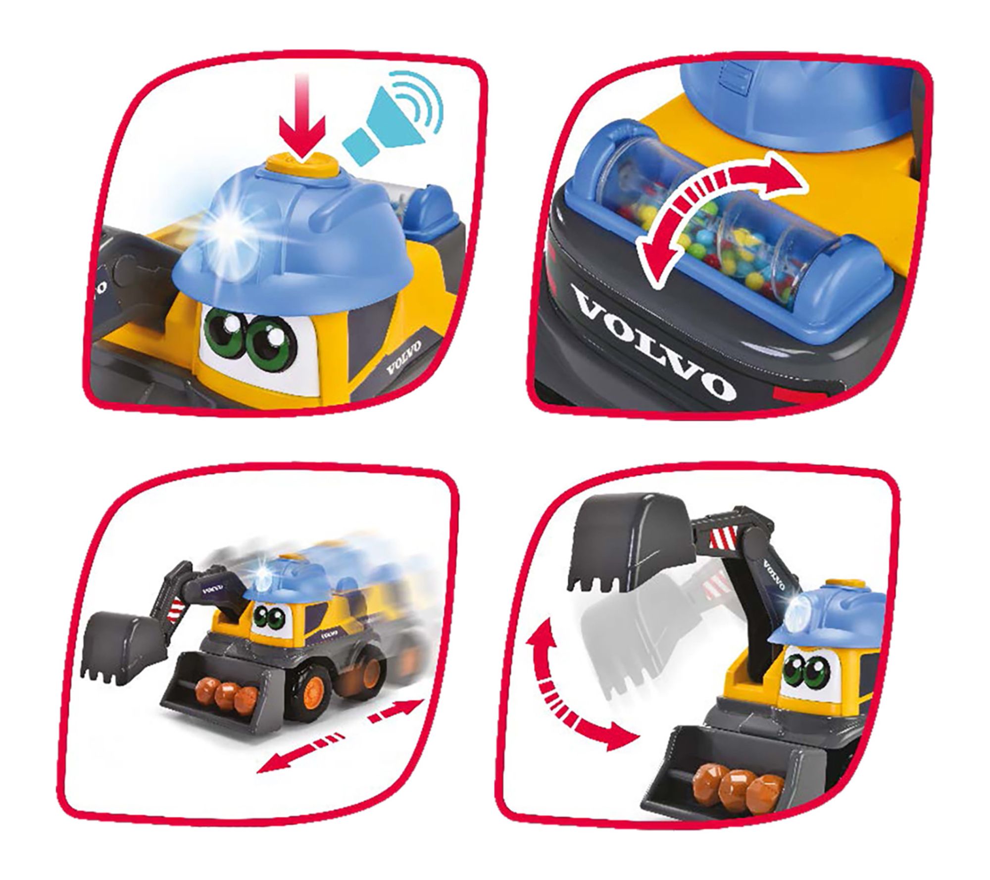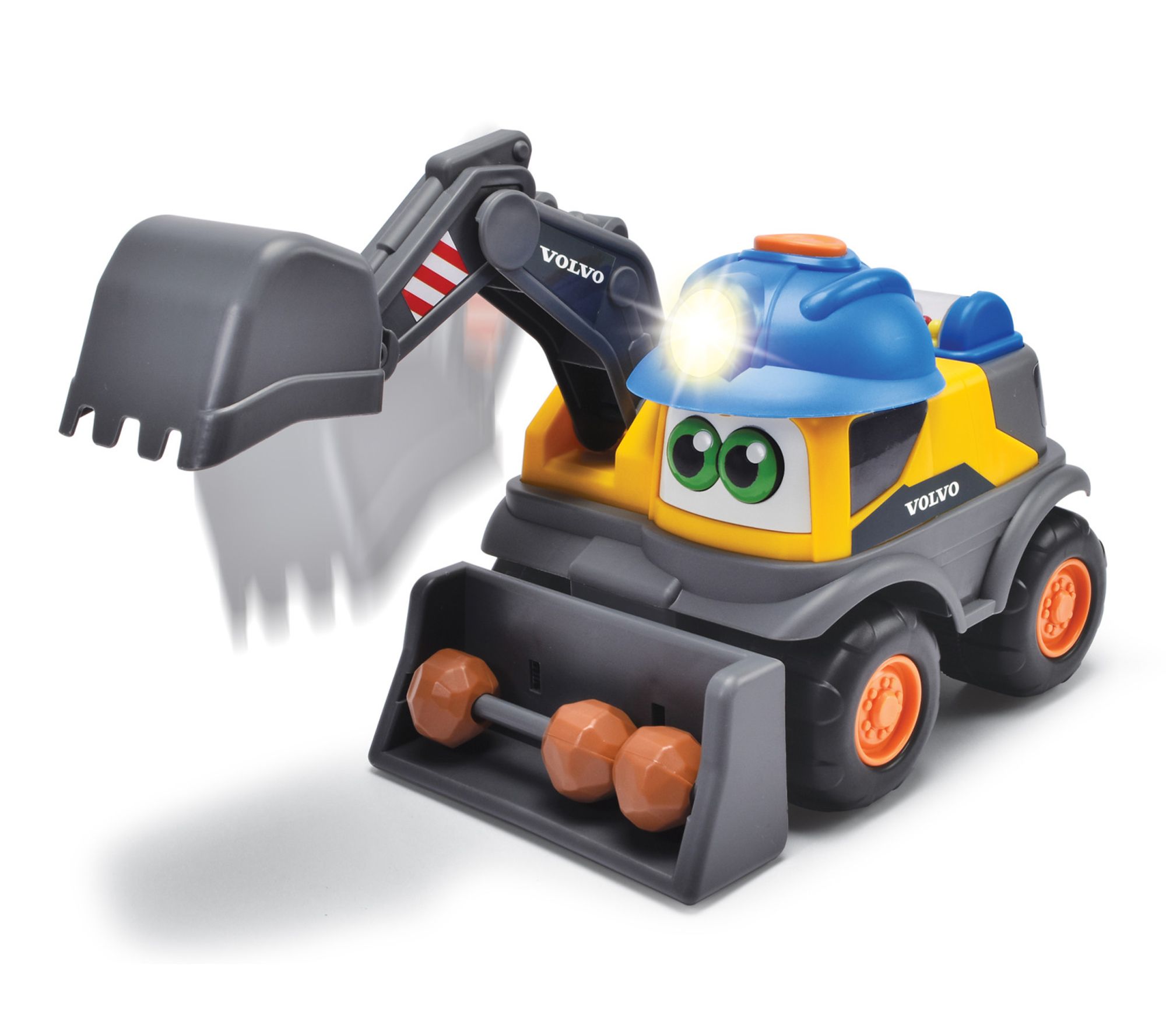 Bring the excitement of the construction site home with the Danny Digger Volvo excavator. This battery-powered toy truck features moving lights, realistic vehicle sounds, and interactive functions like a digger arm and rotating rattle filled with colorful beads. Ready to inspire creativity and motor skill development, it invites hands-on playtime for little builders. From Dickie Toys.
