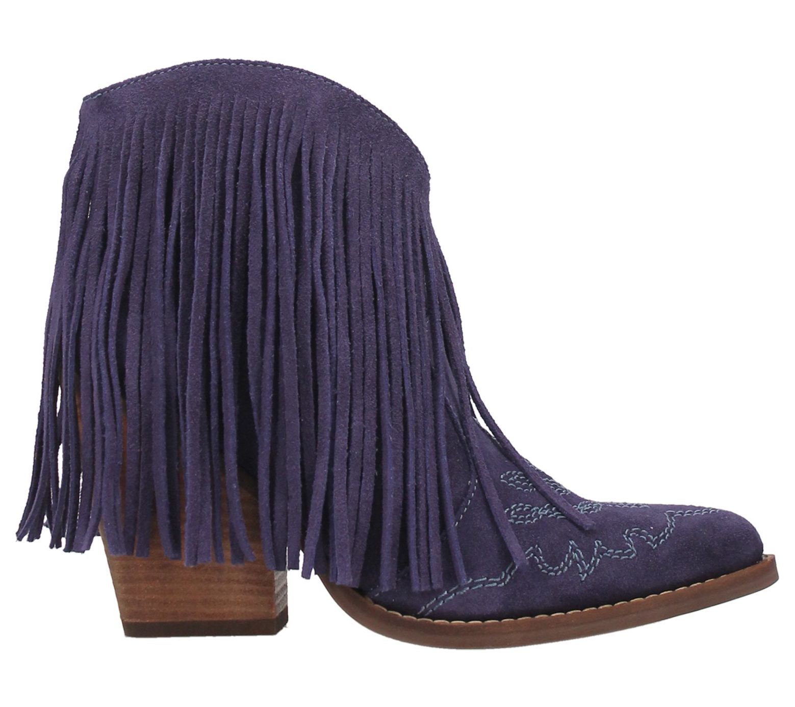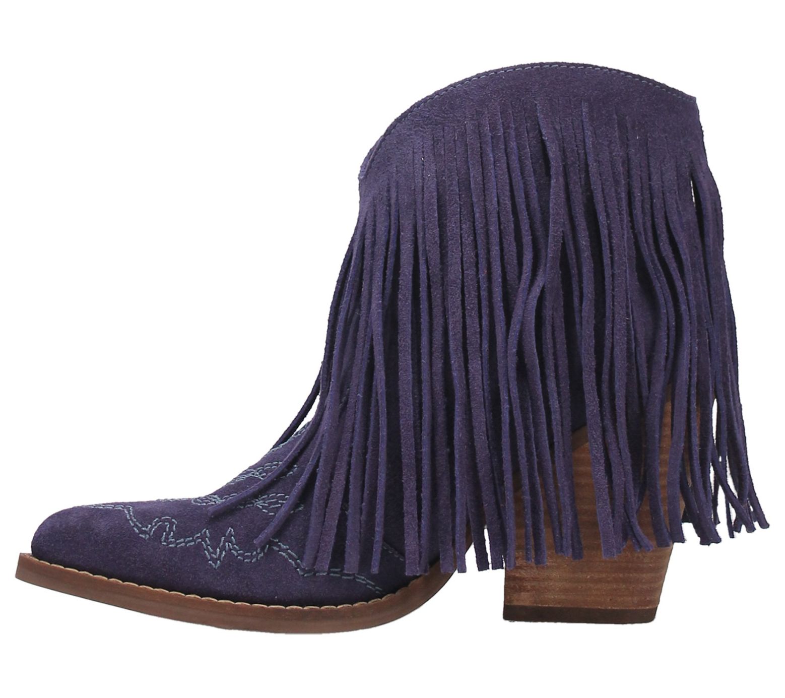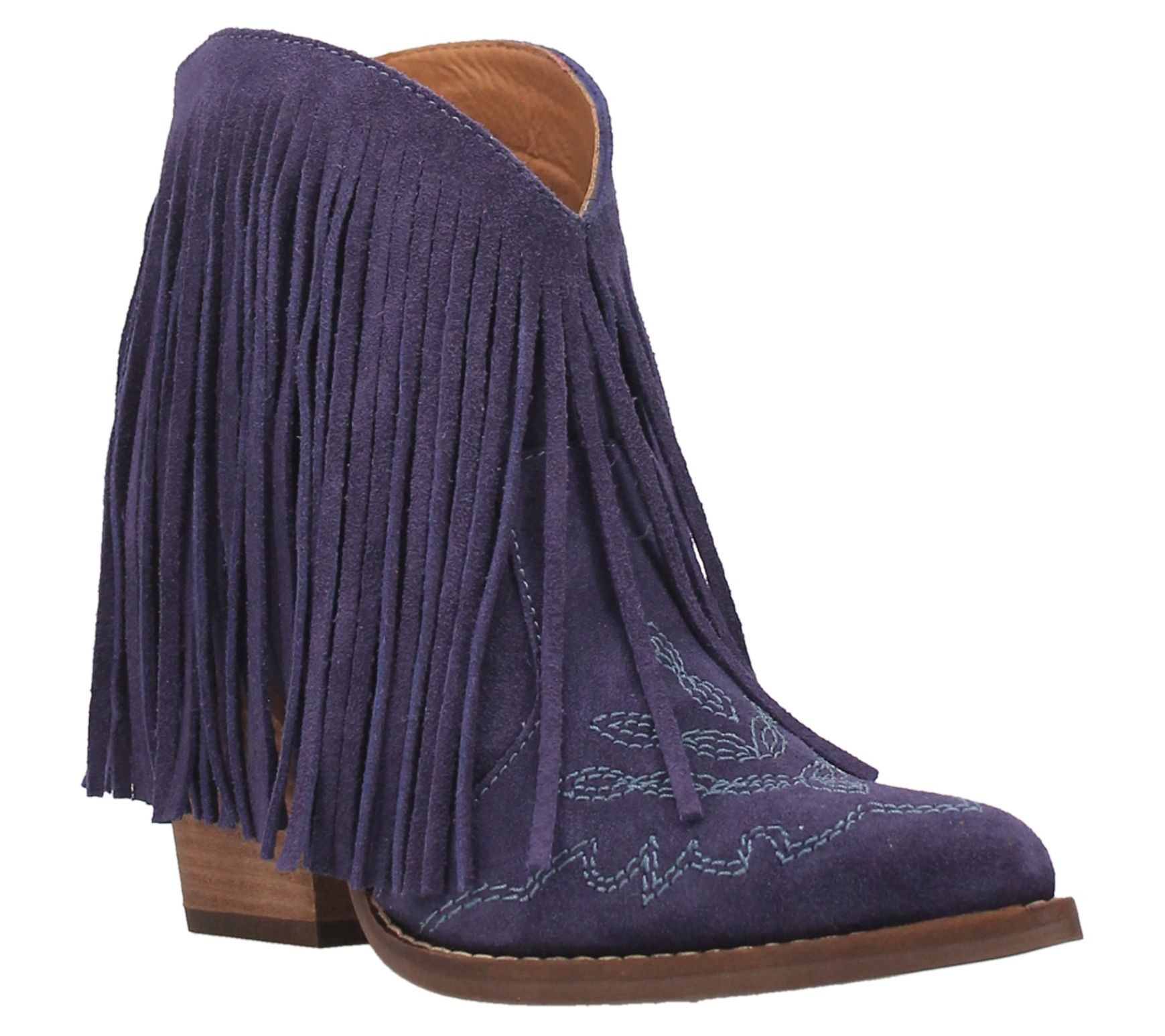 A playful bootie that adds boho chic style to your look, Tangles offers beautiful stitching and all-around fringe that swings and dances as you walk. From Dingo.