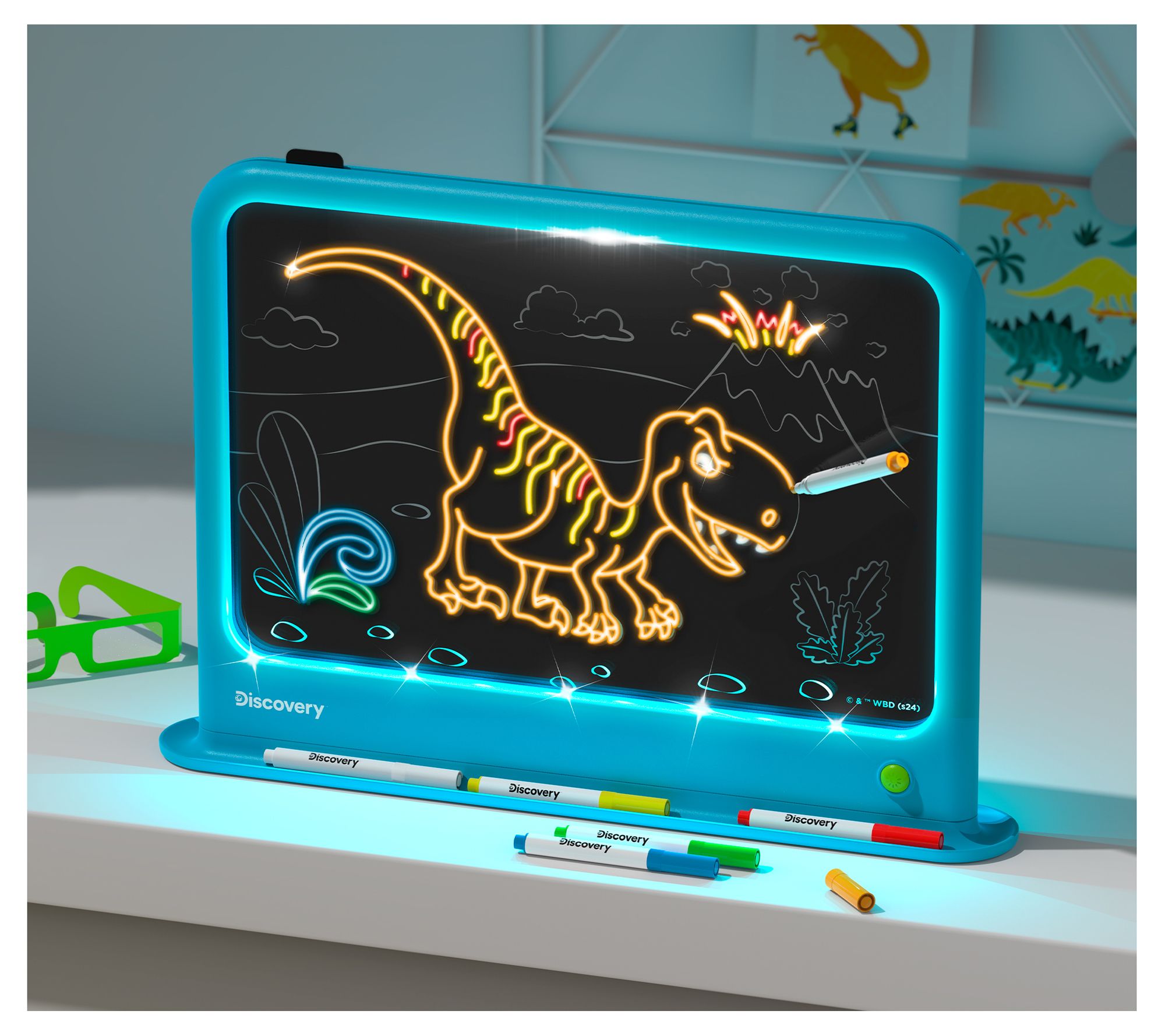 • Includes art board, storage base, six color markers, two double-sided templates, and pair of 3D glasses