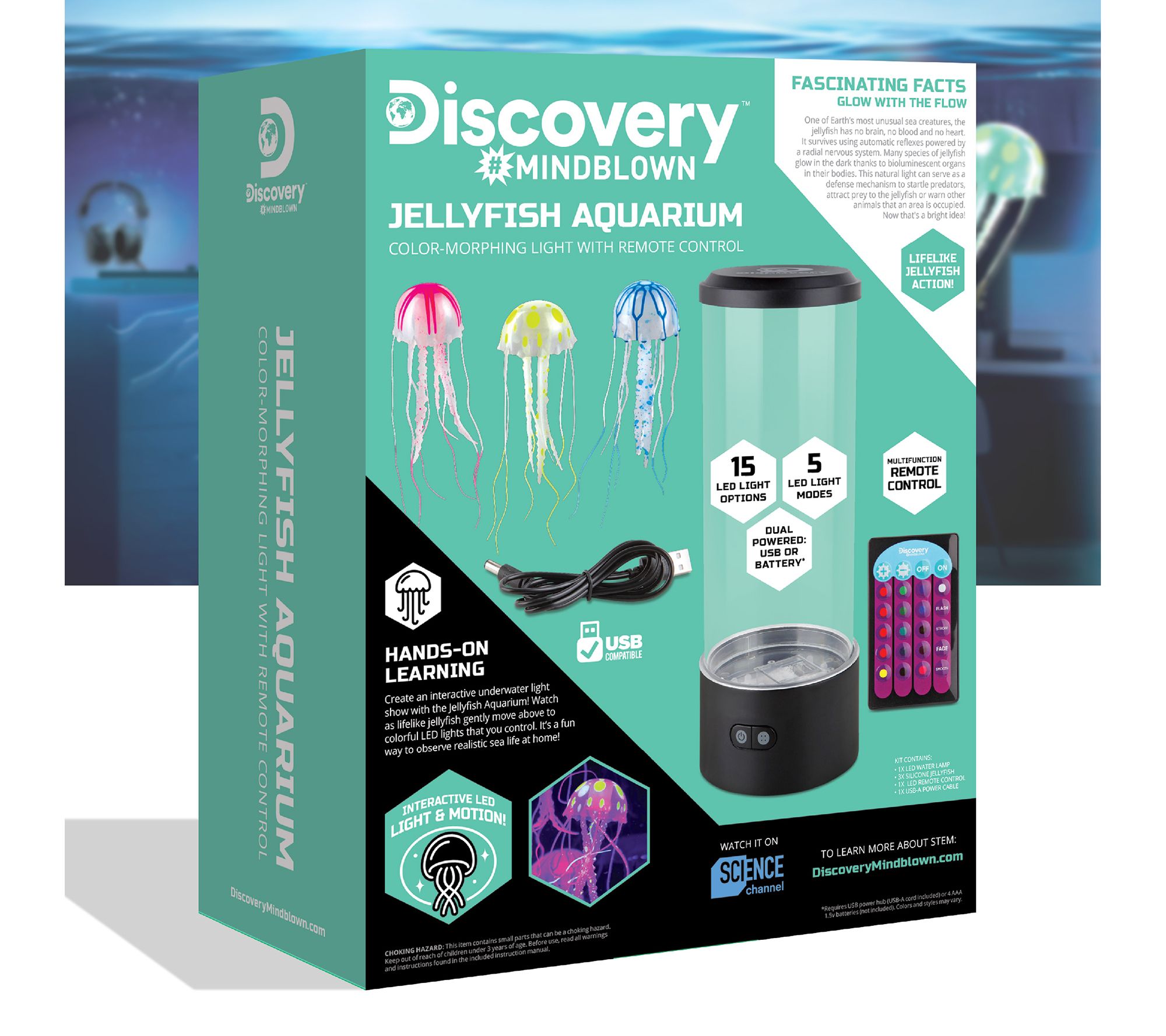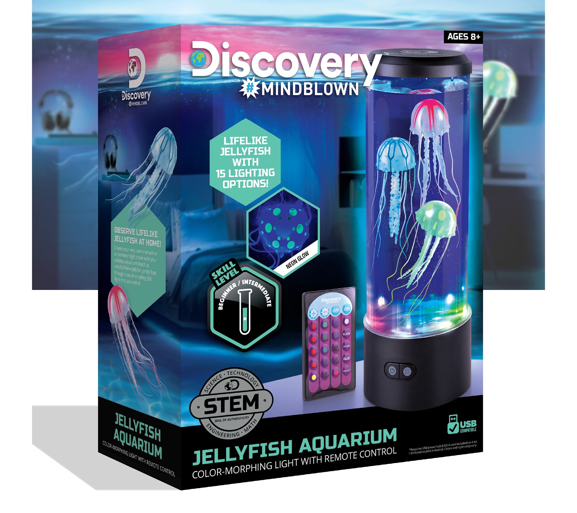 Transform game nights or quiet afternoons into a captivating underwater adventure with this educational jellyfish lamp. Adjustable LED lights let you set the mood while realistic jellyfish gracefully glide through their illuminated aquarium, sure to spark wonder and curiosity in all ages. From Discovery Mindblown.