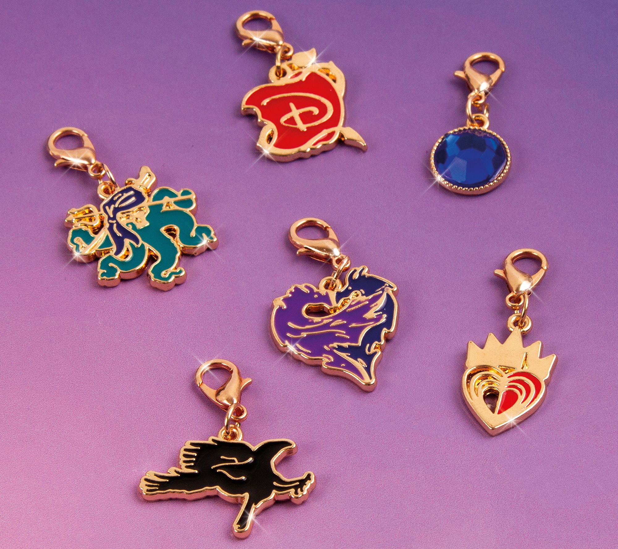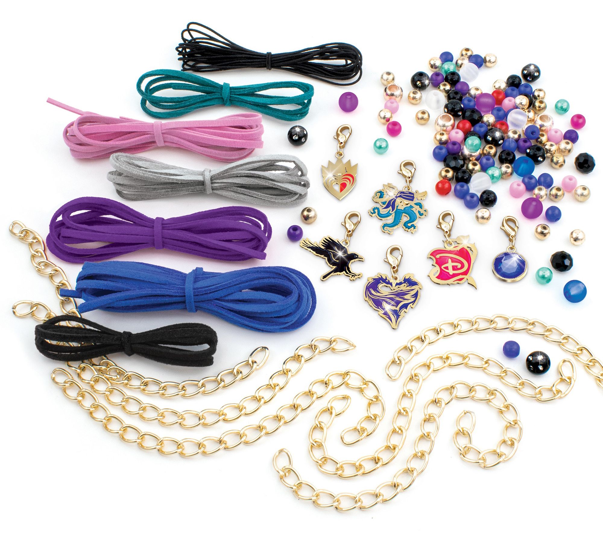 • Includes six descendants, three charms, six colors of suede lace, six curb chains, 38 goldtone beads, 44 colored beads, six pearlized beads, nine frosted beads, seven beads with rhinestones, four faceted beads, book with story and instructions