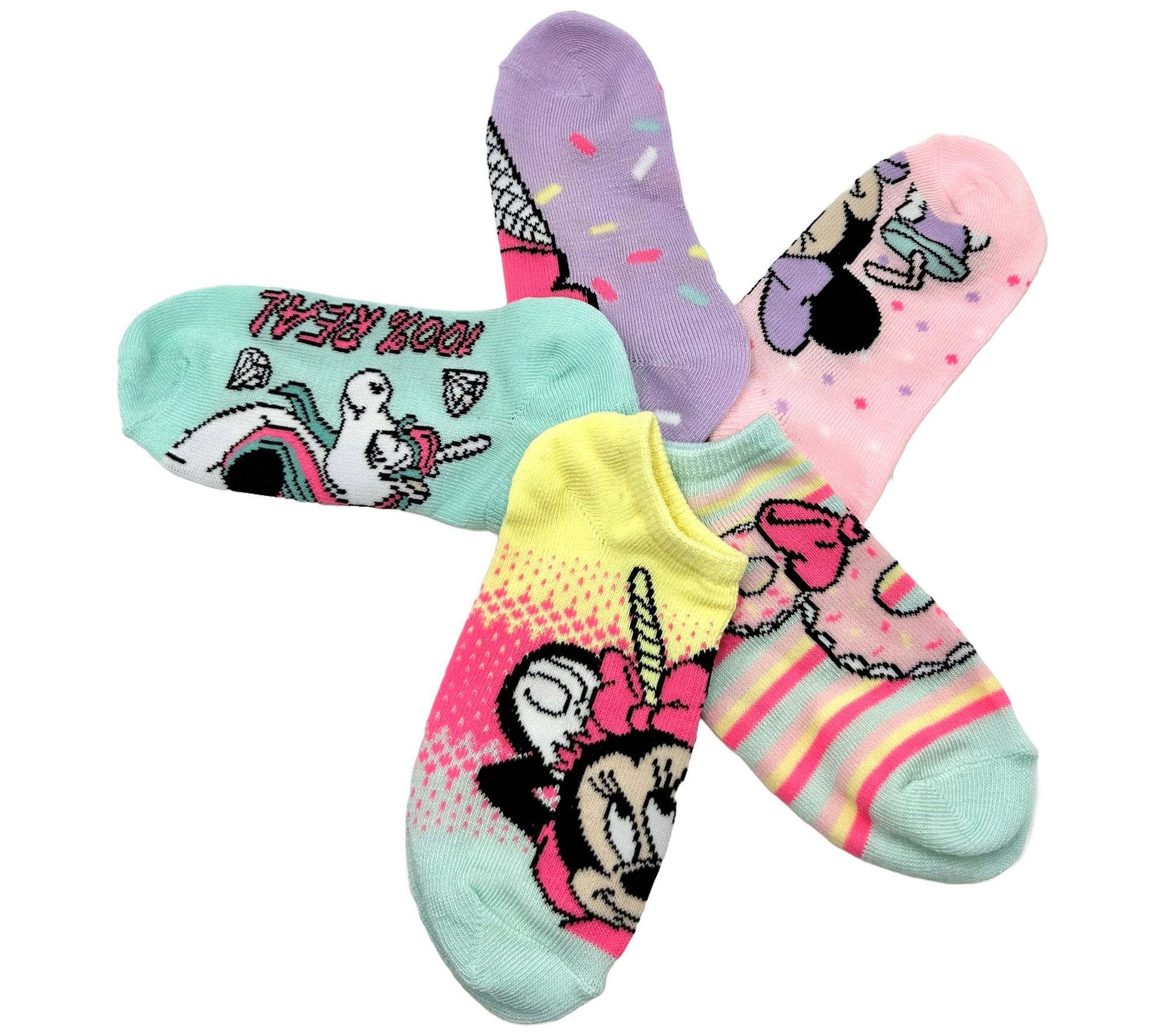 Disney Big Girl's Minnie Mouse Unicorn No-ShowSocks - 5 Pair