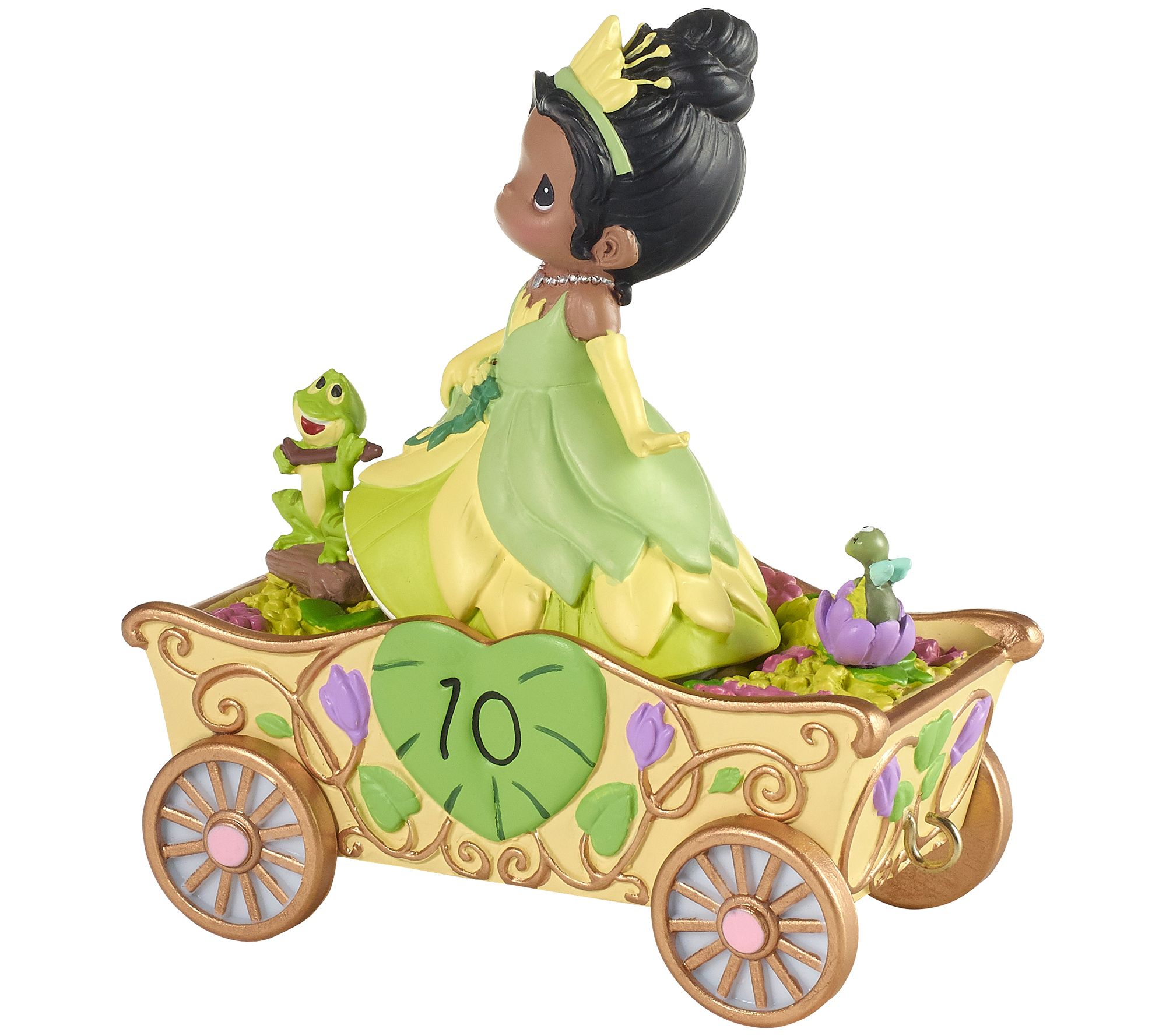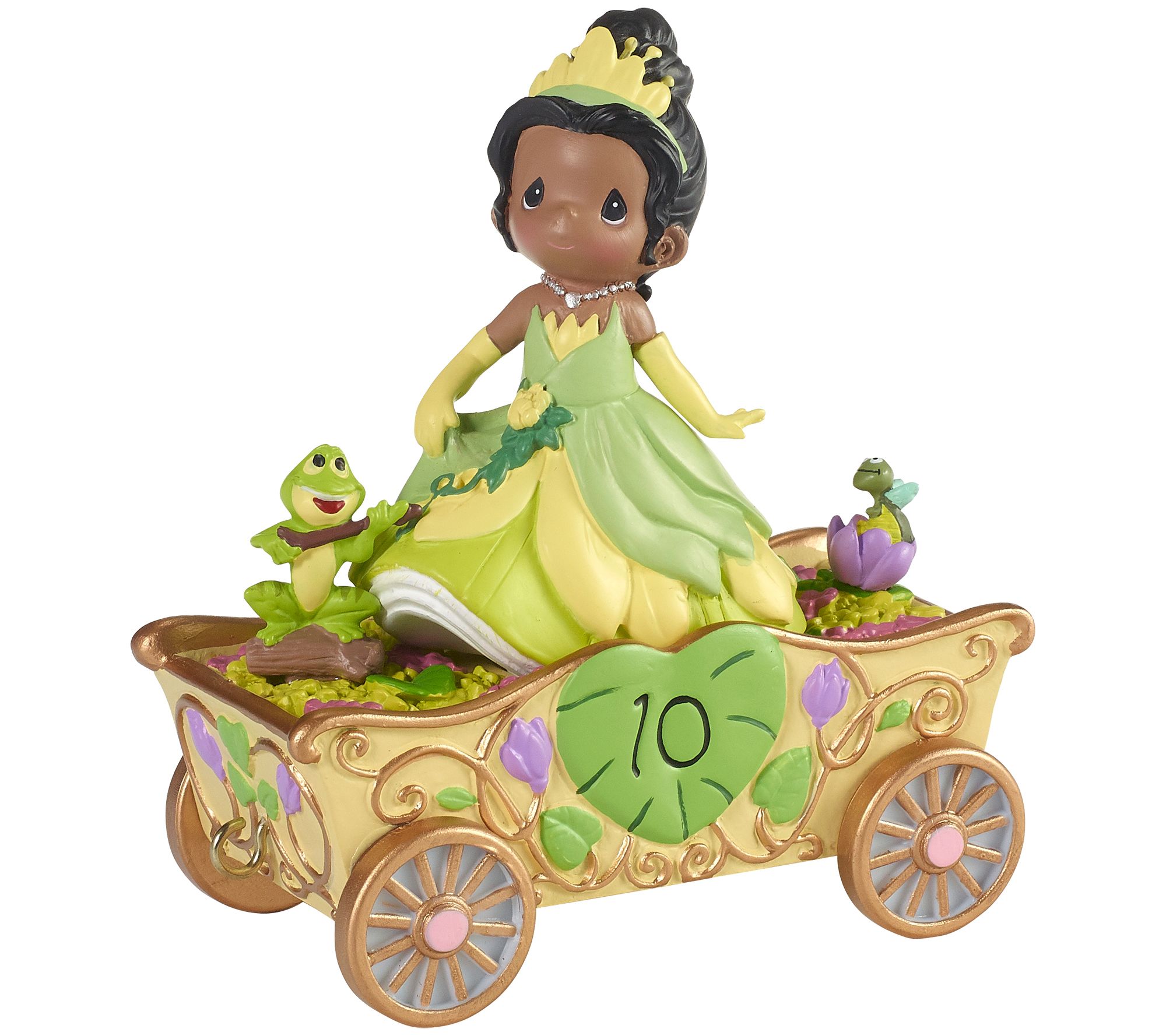 Disney's The Princess and the Frog became an instant classic! Dressed as Disney's beautiful princess from the bayou, Tiana, a Precious Moments girl marks a 10th birthday in a truly magical way. Frog Prince Naveen looks on while he strums his homemade banjo. Look closely and you'll see the firefly, Ray, looking on adoringly as well! From Precious Moments.
