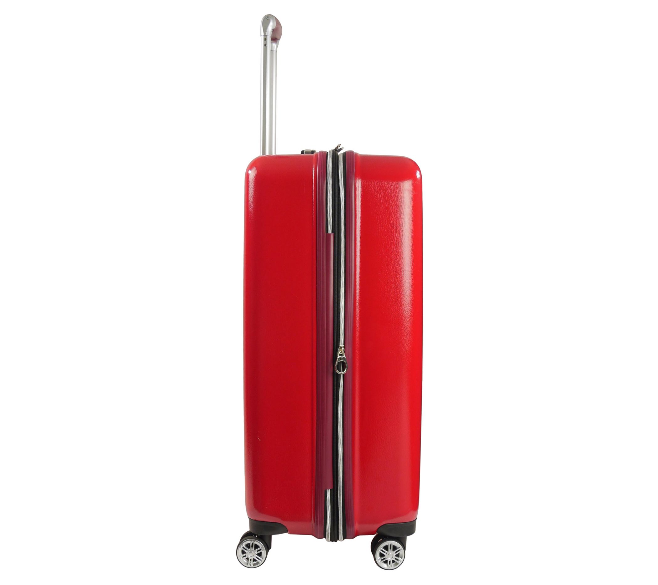 • ABS exterior with a polycarbonate film, eight 360-degree spinner wheels, aluminum telescopic handles, retractable top carry handles, 2" expandable zipper gusset