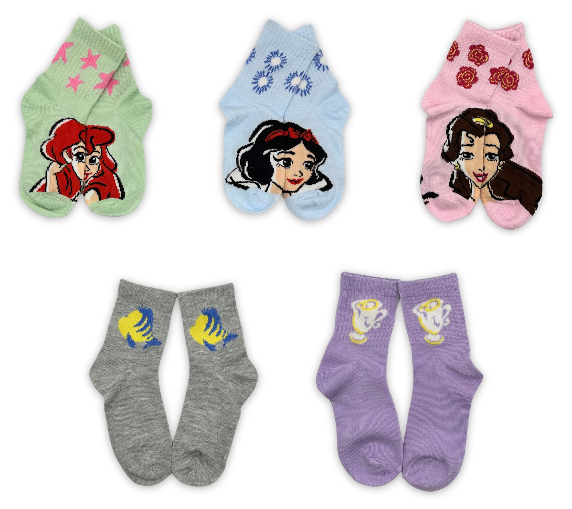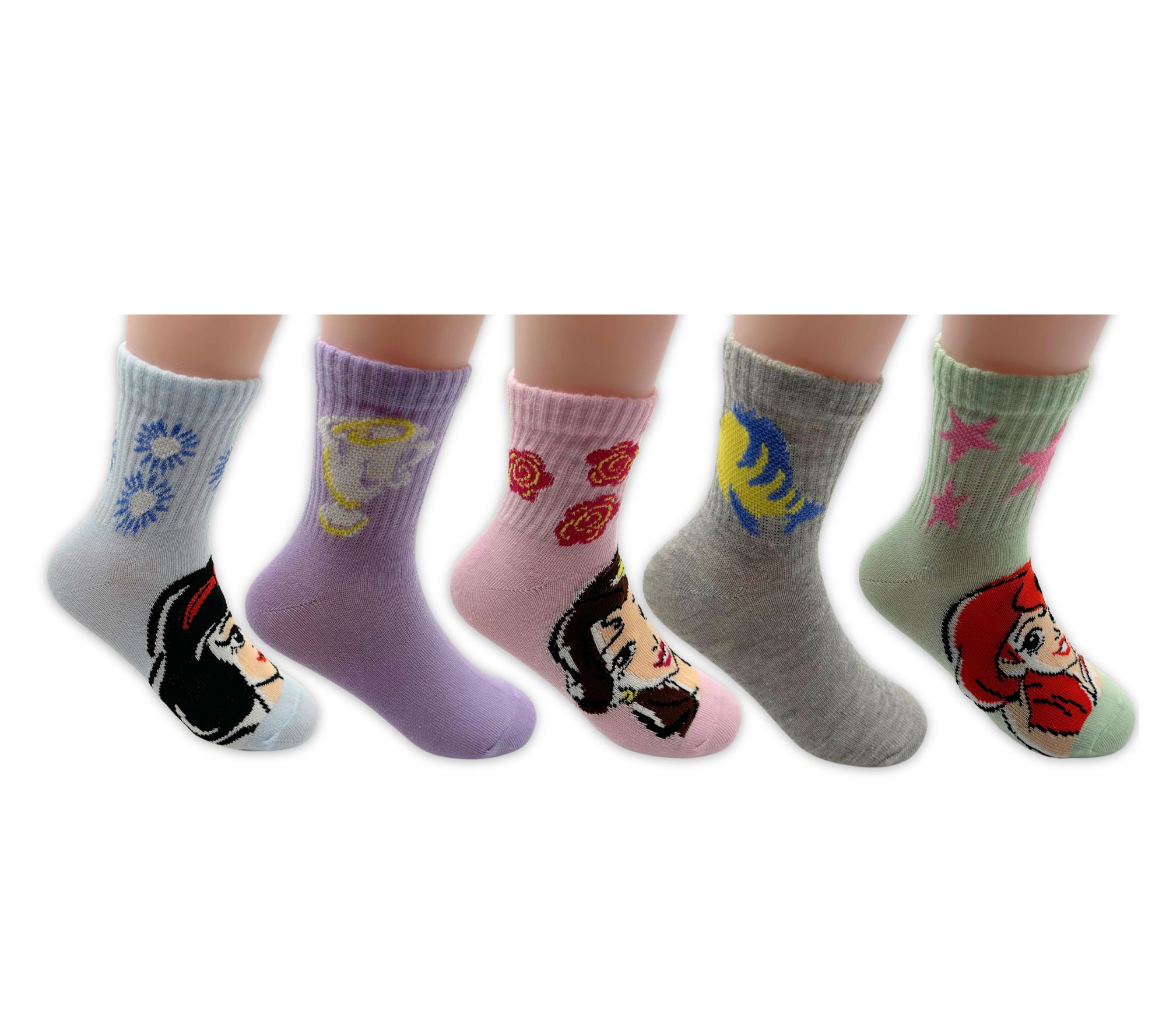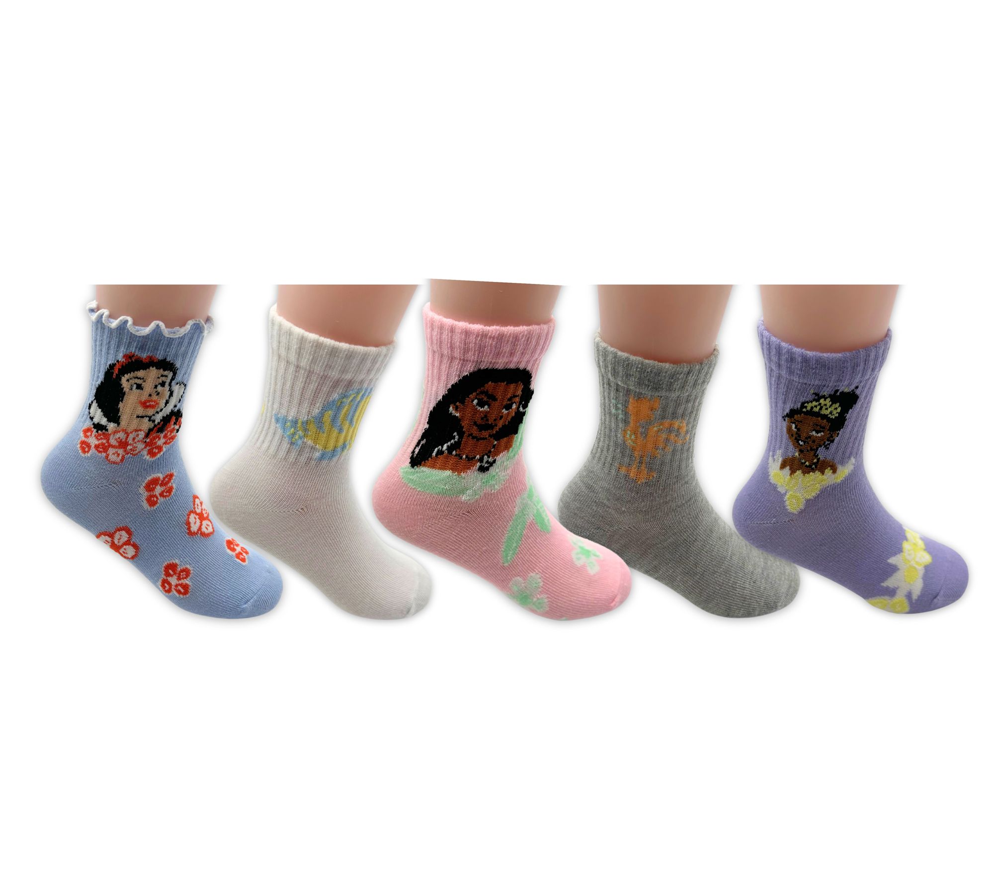 Disney Girls' Set of 5 Princess Mid-Crew RibbedSock Set