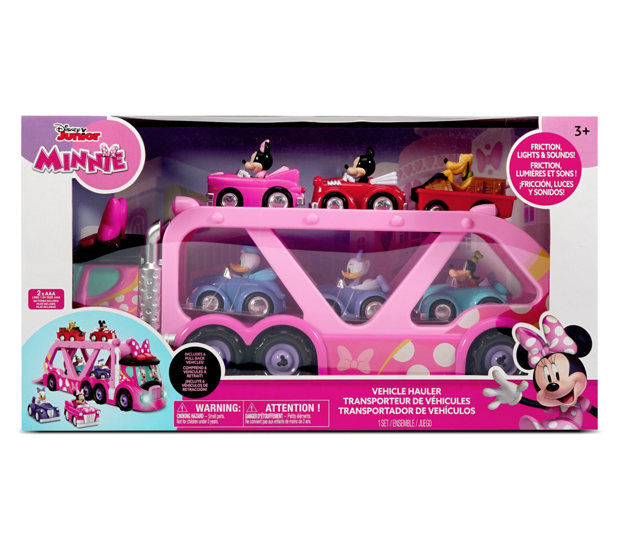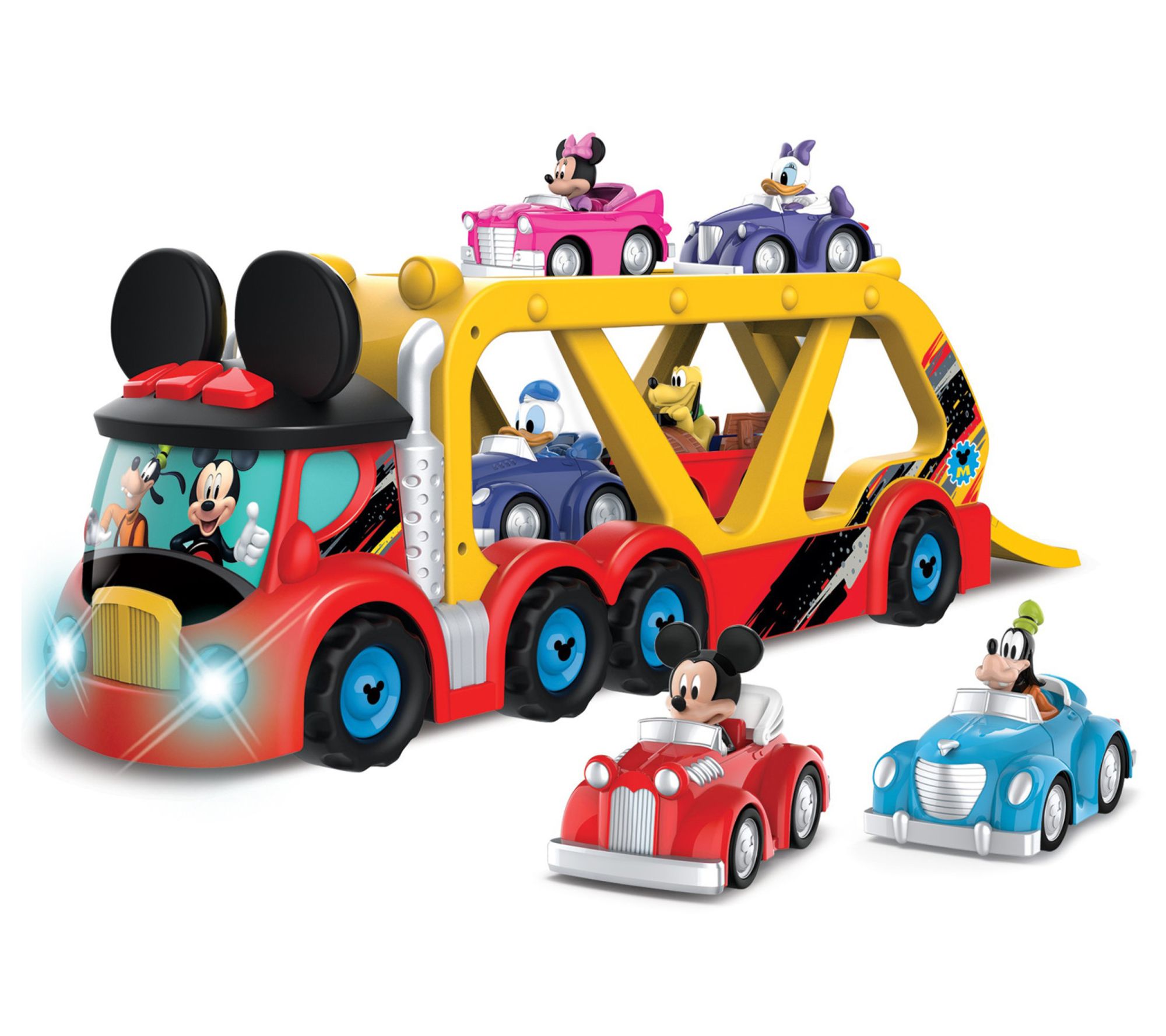 Create a grand adventure at playtime with this vehicle hauler set, featuring six pullback cars with beloved Disney Junior characters. Load up the cars, roll the hauler across the room, and watch as your little one's favorite friends speed into action for exciting races or imaginative storytelling. From Disney Junior.