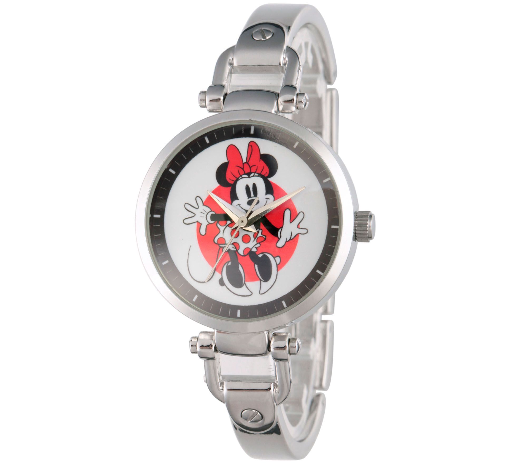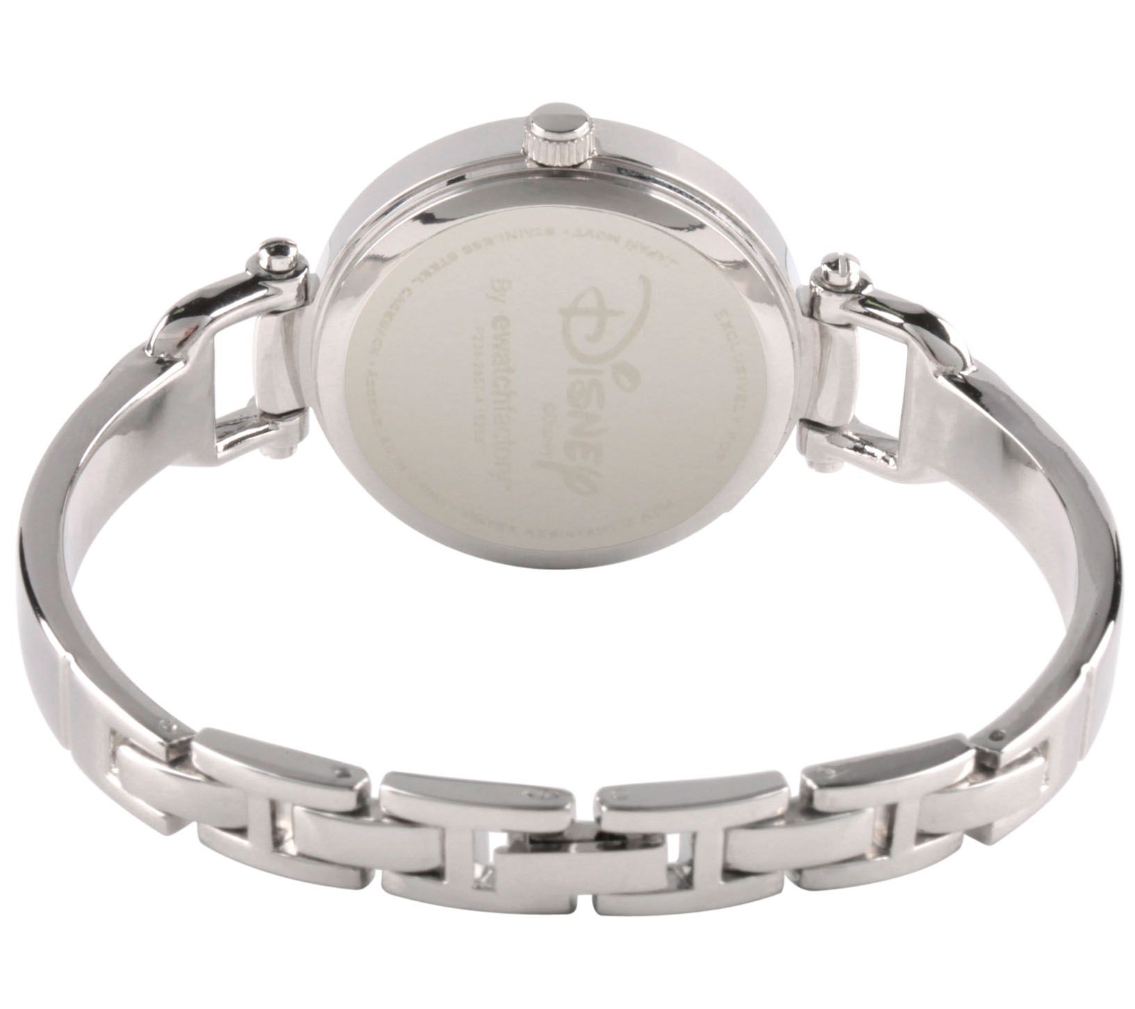 Showtime! This darling Disney Minnie Mouse women's bracelet watch is sure to brighten your day with its playful silvertone design. Reliable Japanese quartz movement keeps it going right on schedule. From Ewatchfactory.