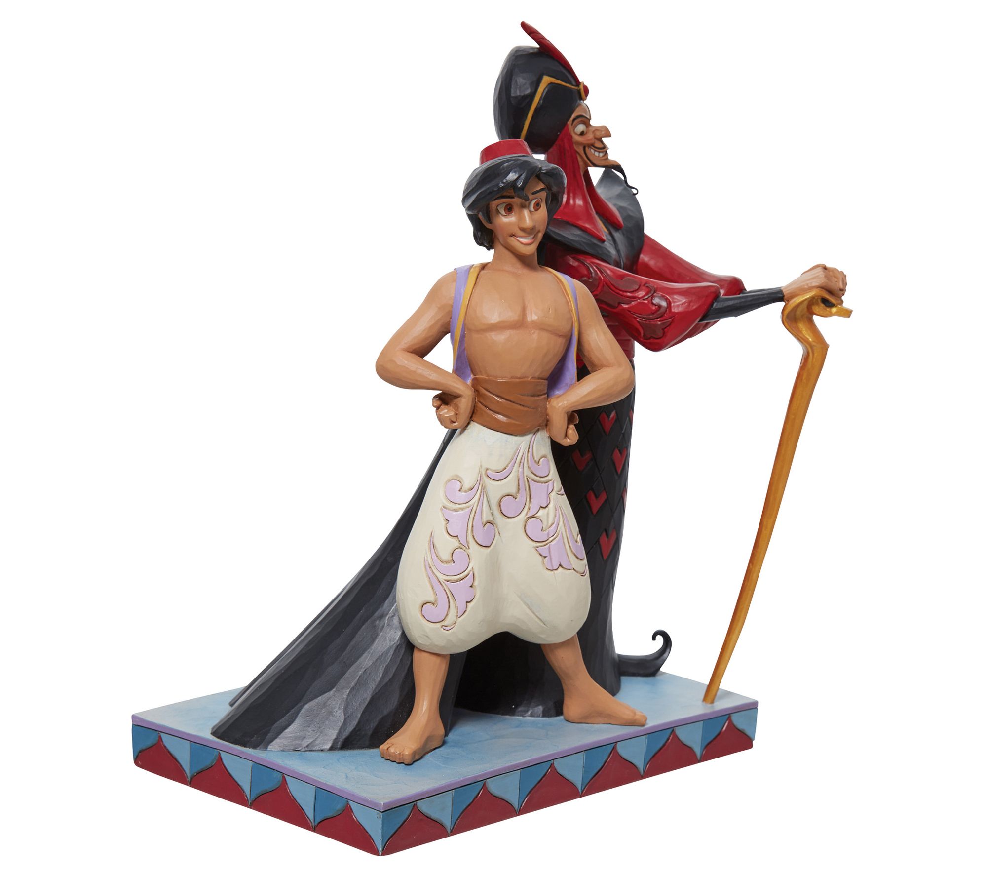Capture the essence of an epic tale with the Disney Traditions Aladdin Jafar Good vs Evil figurine, where the timeless struggle between hero and villain is artfully depicted. Designed by Jim Shore, this piece brings Aladdin and Jafar to life in stunning detail, making it a must-have for collectors and fans alike. From Disney Traditions.