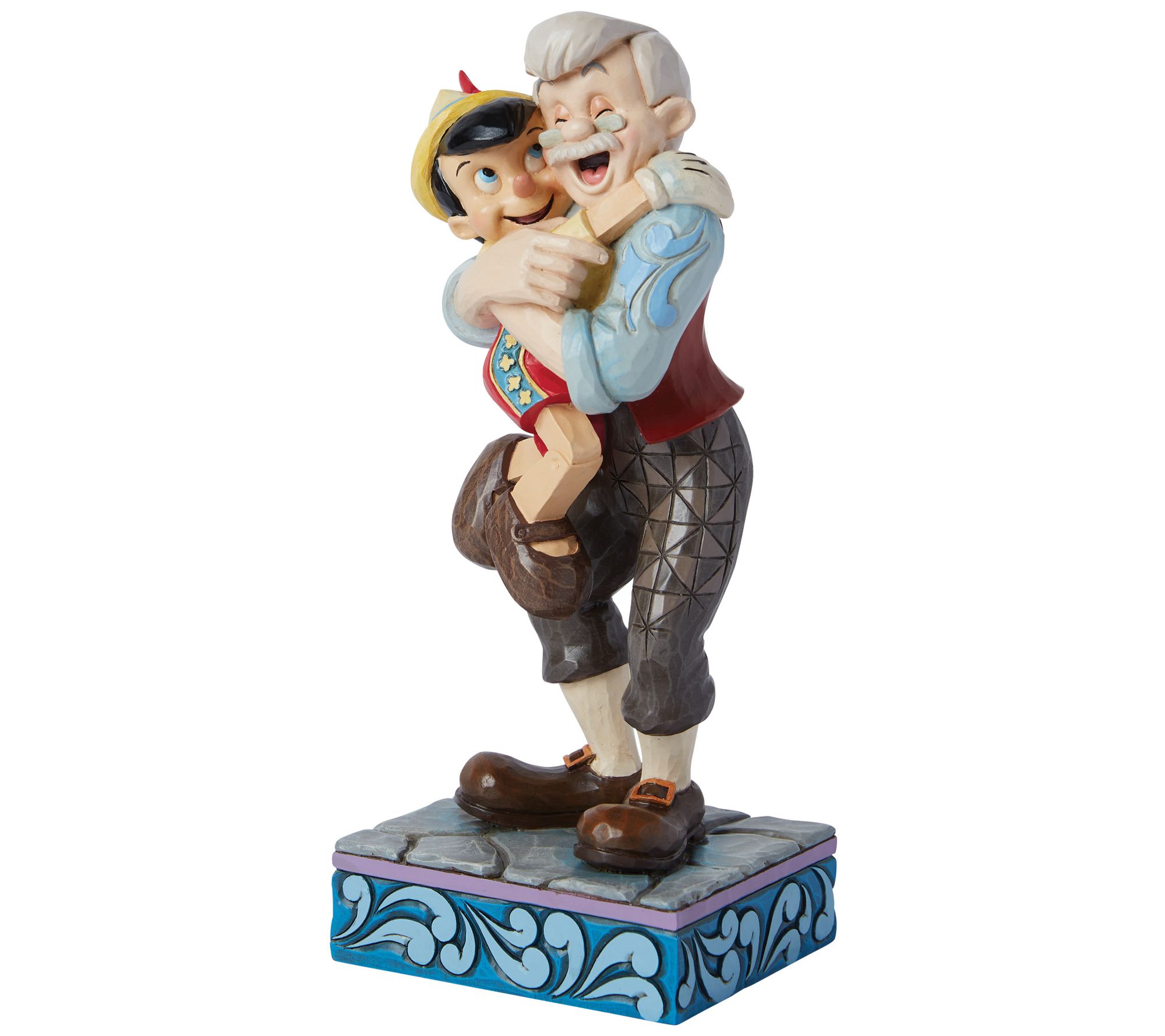 Capture the magic of a heartfelt moment with this adorable figurine. This Jim Shore creation beautifully portrays Gepetto's joy and Pinocchio's wide smile, adorned with intricate patchwork and rosemale details, bringing a touch of enchantment to any space. From Disney Traditions.