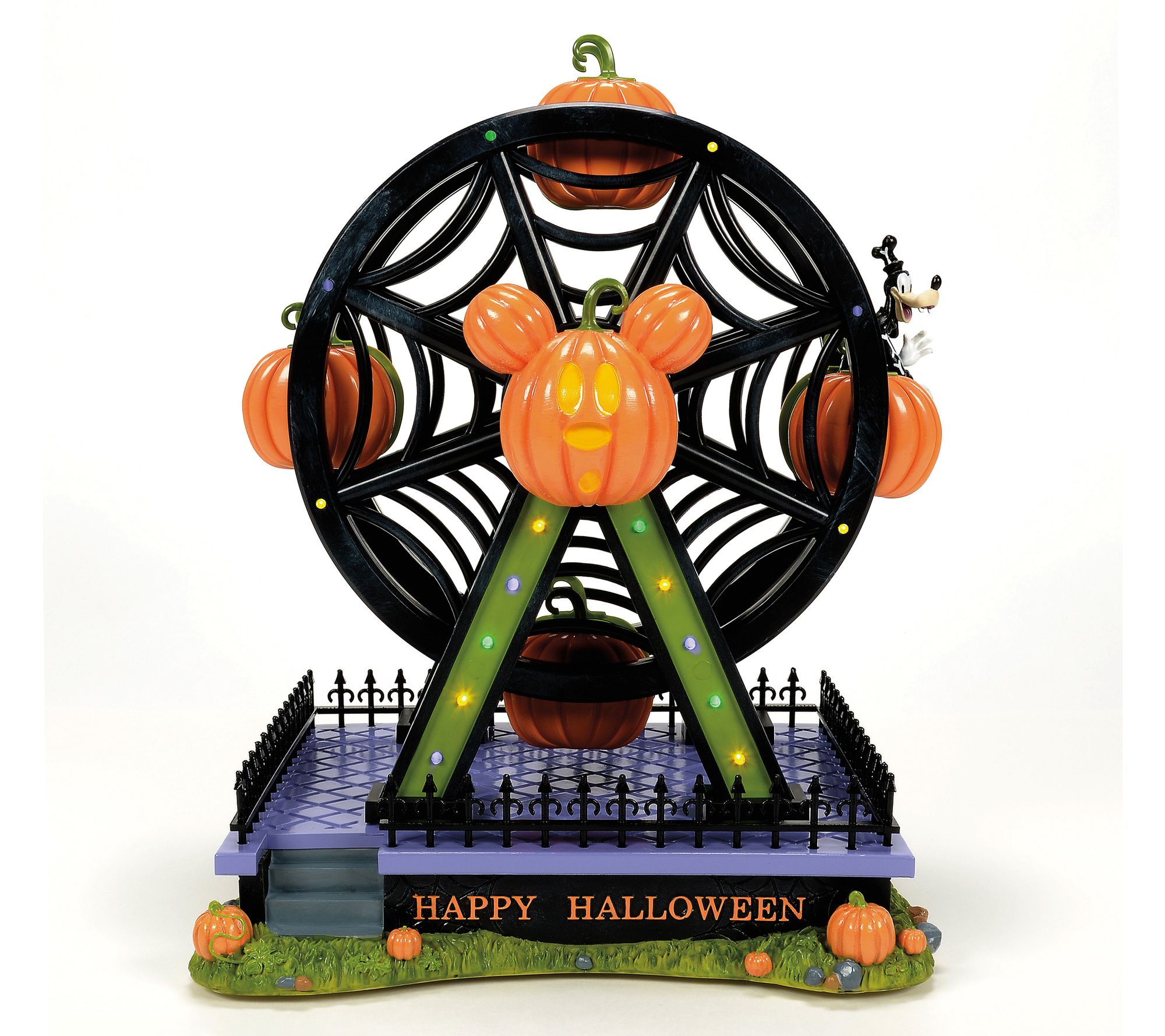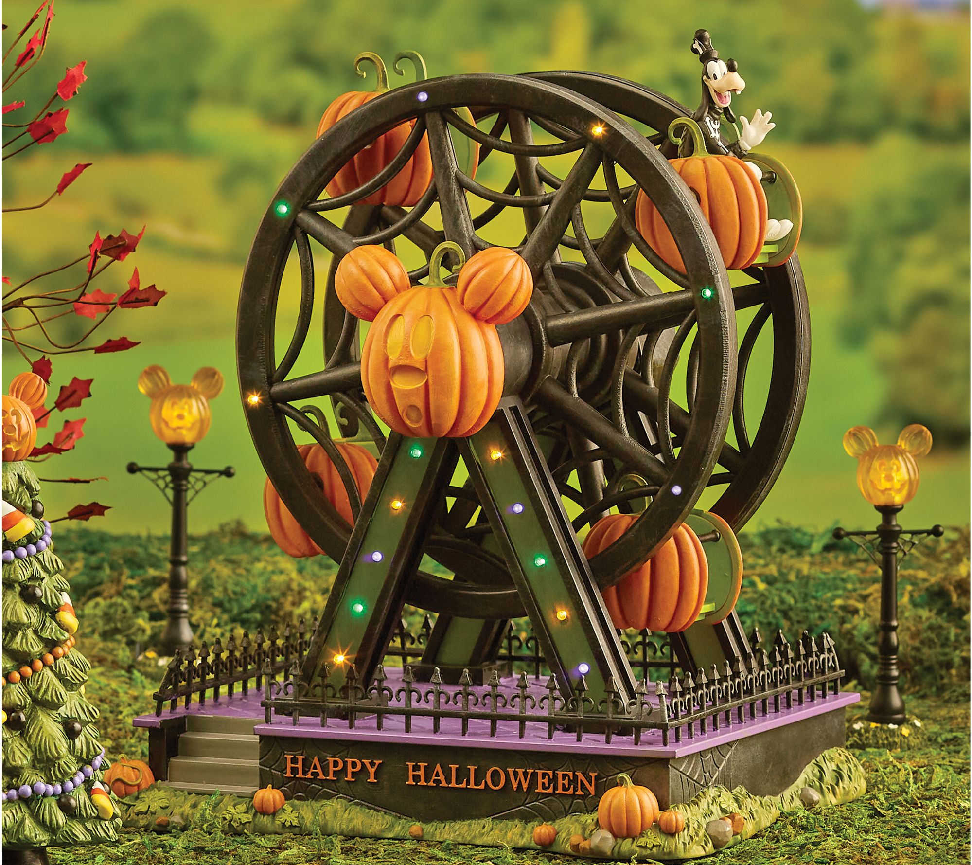 Goofy finds endless laughter spinning around the Pumpkintown Ferris Wheel, bringing the joyful whimsy of Disney Village right to your mantel or holiday table. Soft glowing yellow LED lights add a festive charm, making this figurine an instant centerpiece for gatherings big and small. From Disney.