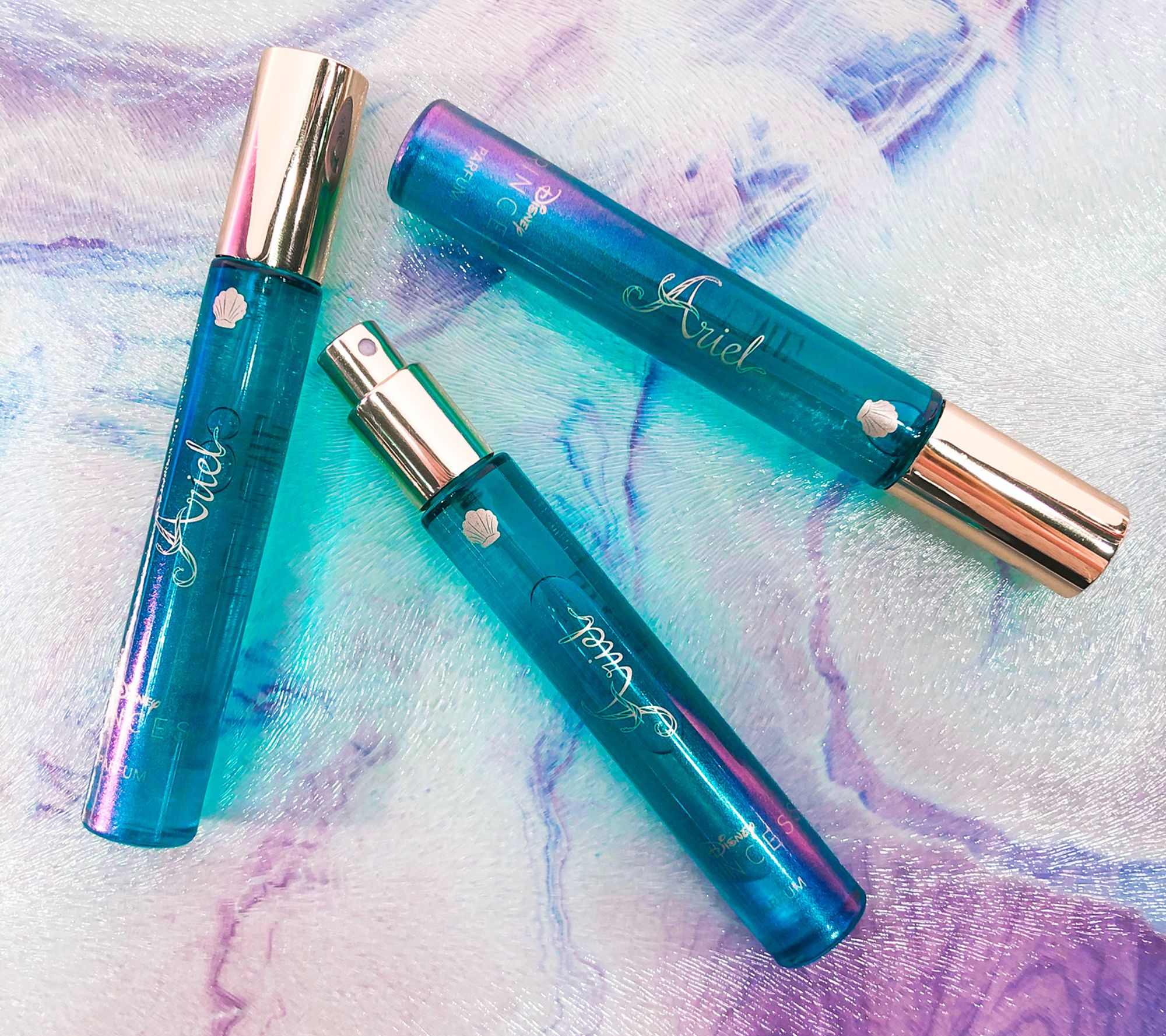 Ariel is an adult prestige fragrance created in collaboration with Disney and DefineMe Fragrance. Launched in 2019, the Ariel fragrance has quickly become a covetable, must-have fragrance due to its stunning turquoise green mermaid-tail glass bottle with rainbow iridescent shell cap and it's dreamy, youthful yet sophisticated, beachy, fresh scent. Ariel is meant to evoke a sense of wanderlust and adventure, starting with a splash of citrusy neroli and bergamot, flowing into a sweet floral with jasmine and lilac, then crashing with a beachy blend of tonka bean, coconut, and driftwood. It will surprise and delight even the most particular fragrance connoisseurs.