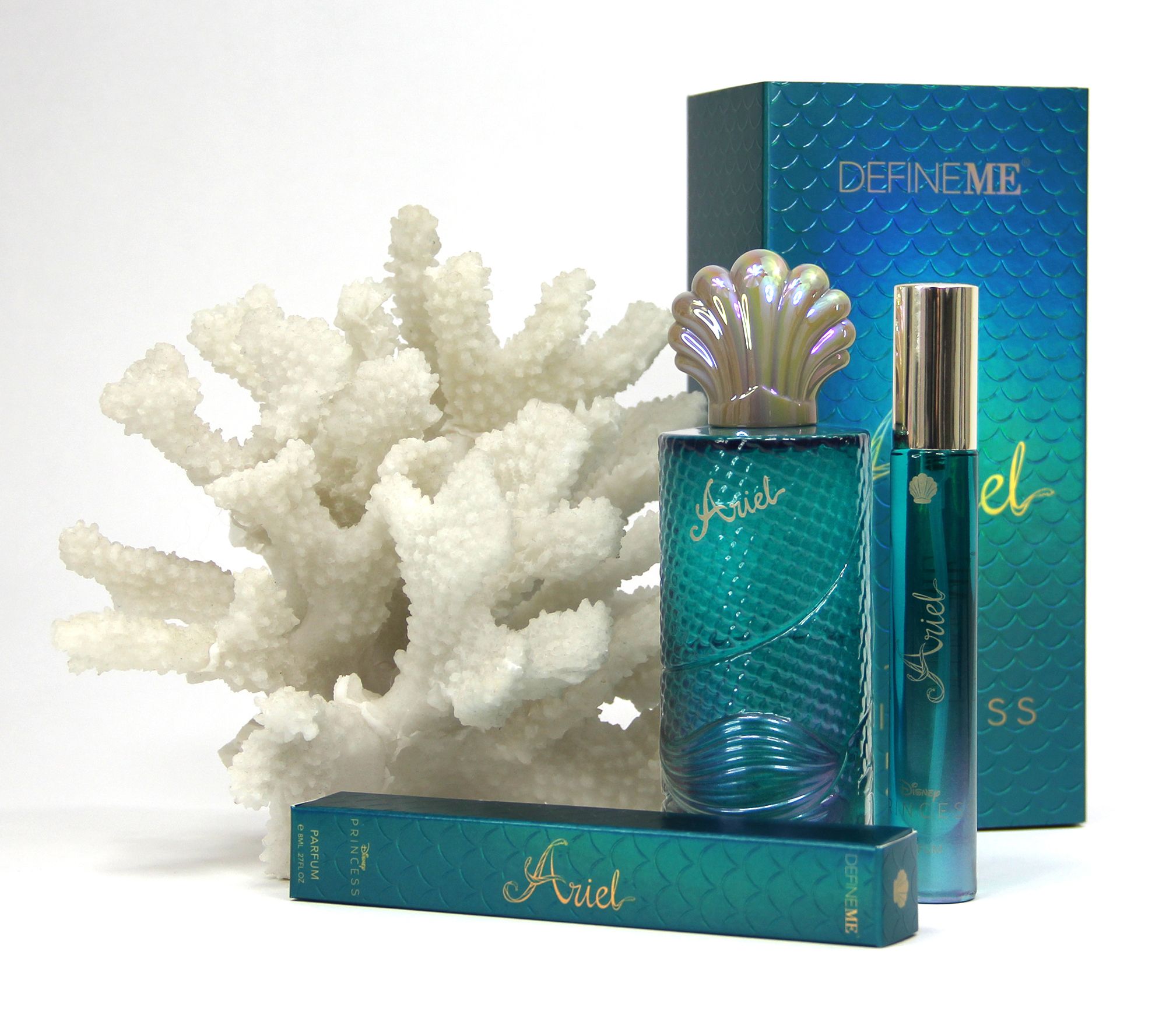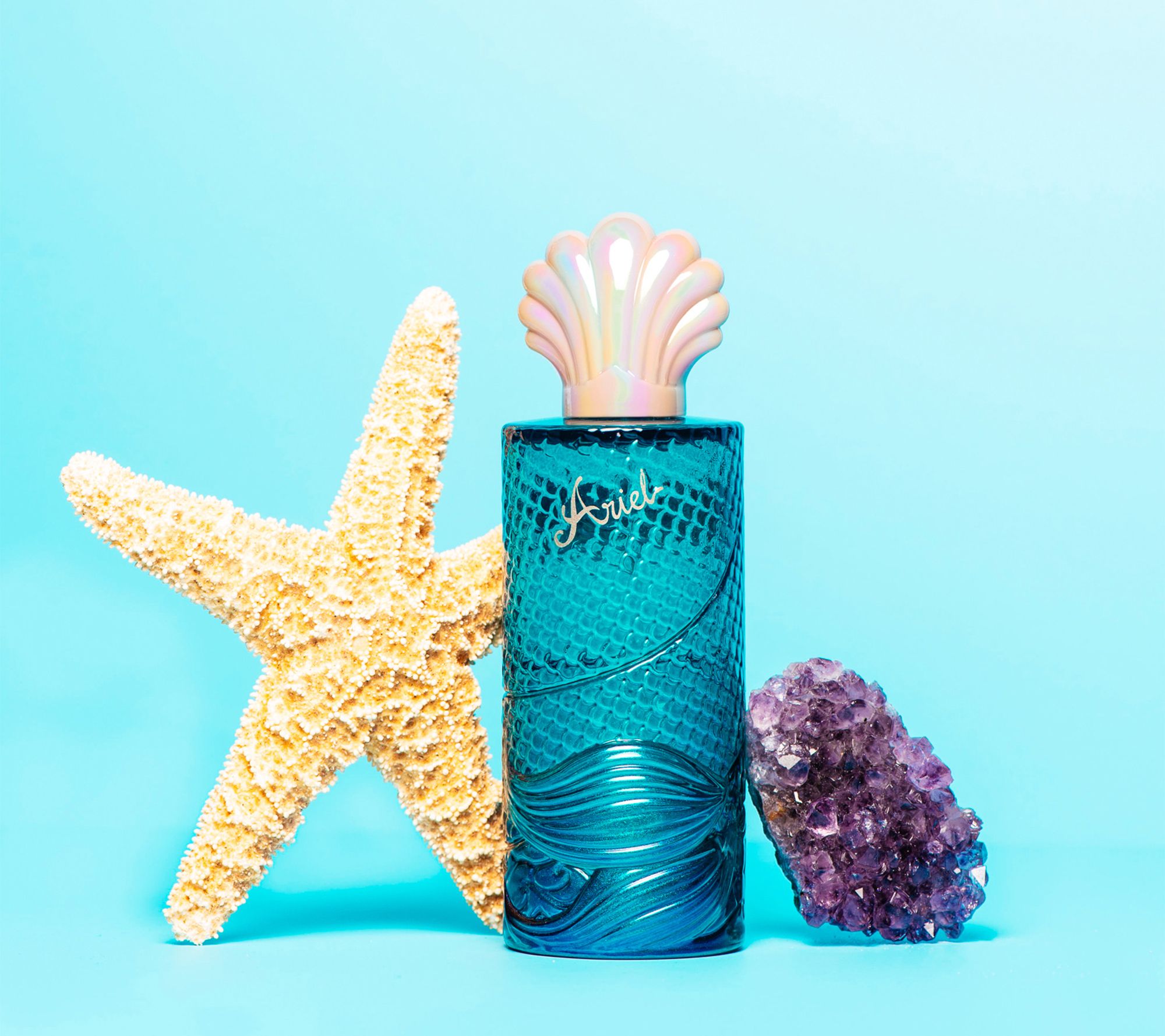 Ariel is an adult prestige fragrance created in collaboration with Disney and DefineMe Fragrance. Launched in 2019, the Ariel fragrance has quickly become a covetable, must-have fragrance due to its stunning turquoise green mermaid-tail glass bottle with rainbow iridescent shell cap and it's dreamy, youthful yet sophisticated, beachy, fresh scent. Ariel is meant to evoke a sense of wanderlust and adventure, starting with a splash of citrusy neroli and bergamot, flowing into a sweet floral with jasmine and lilac, then crashing with a beachy blend of tonka bean, coconut, and driftwood. It will surprise and delight even the most particular fragrance connoisseurs.