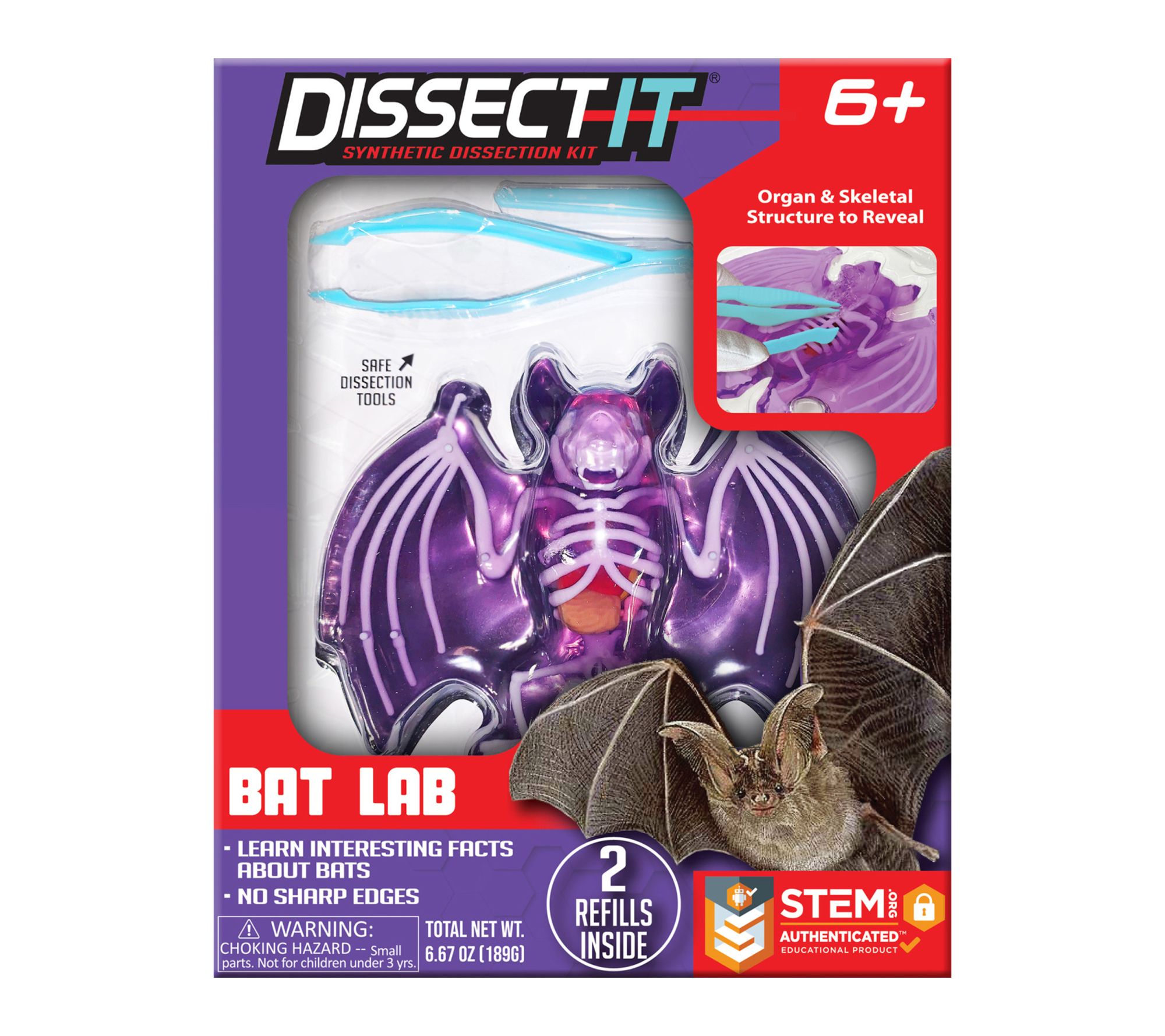 • Includes gelatin bat, plastic tools, two refill gel kits, organs, instruction manual, and dissection table