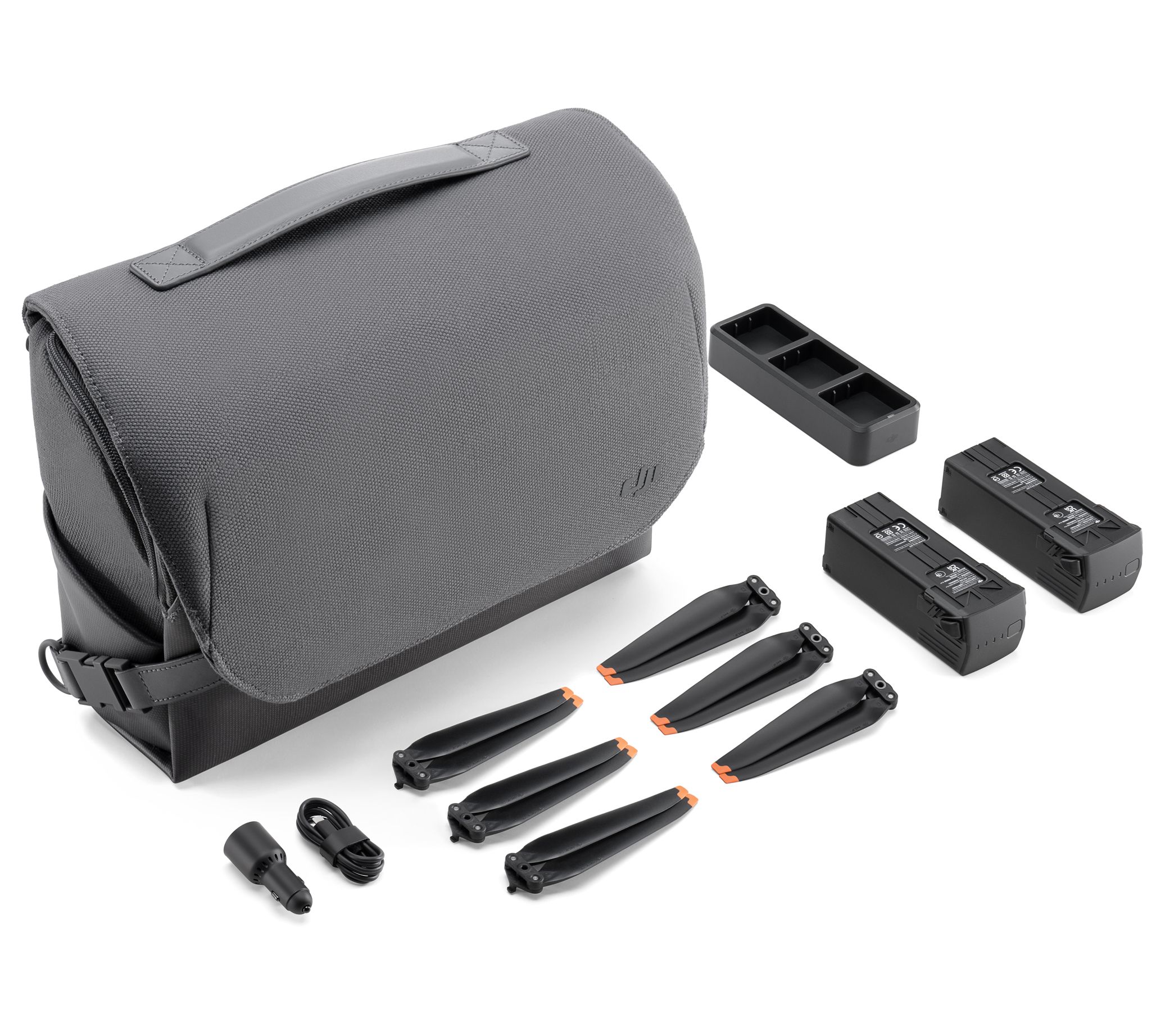 • Includes two Intelligent Flight batteries, 100W three-battery charging hub, three pairs of low-noise propellers, and convertible carry bag