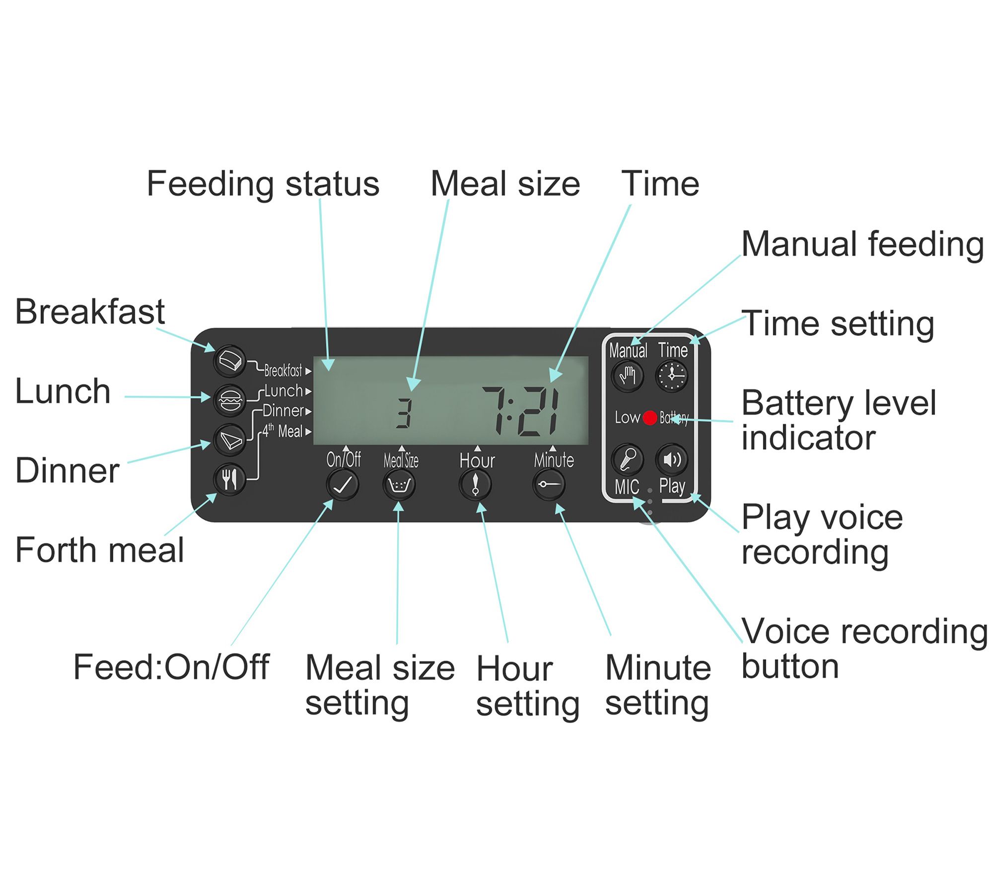 • Feeds up to four meal per day