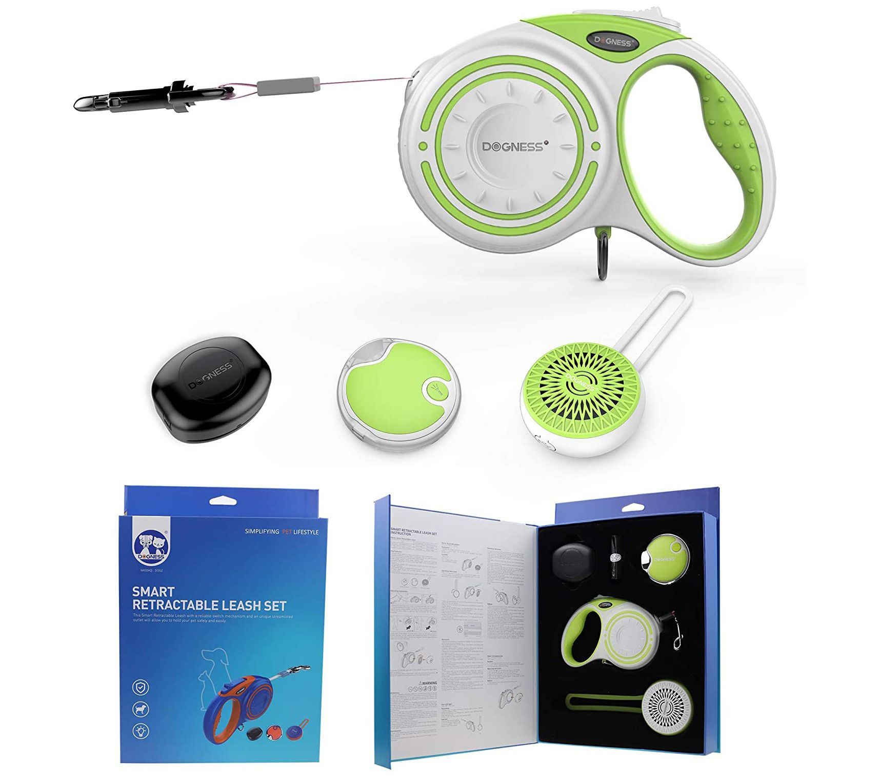 • Includes retractable leash, Bluetooth speaker, LED light, storage box, waste bags, and micro USB cord