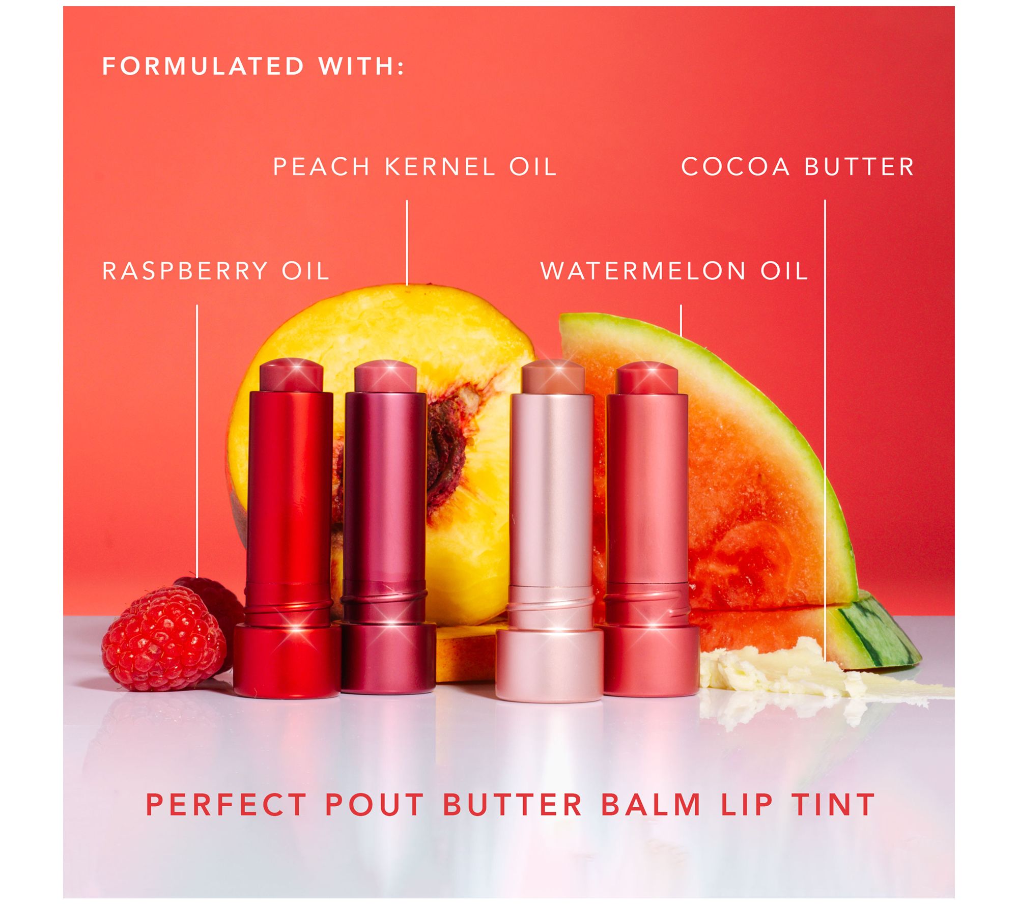 PerfectPout Butter Balm Lip Tint is formulated with nourishing butters to intensely hydrate.