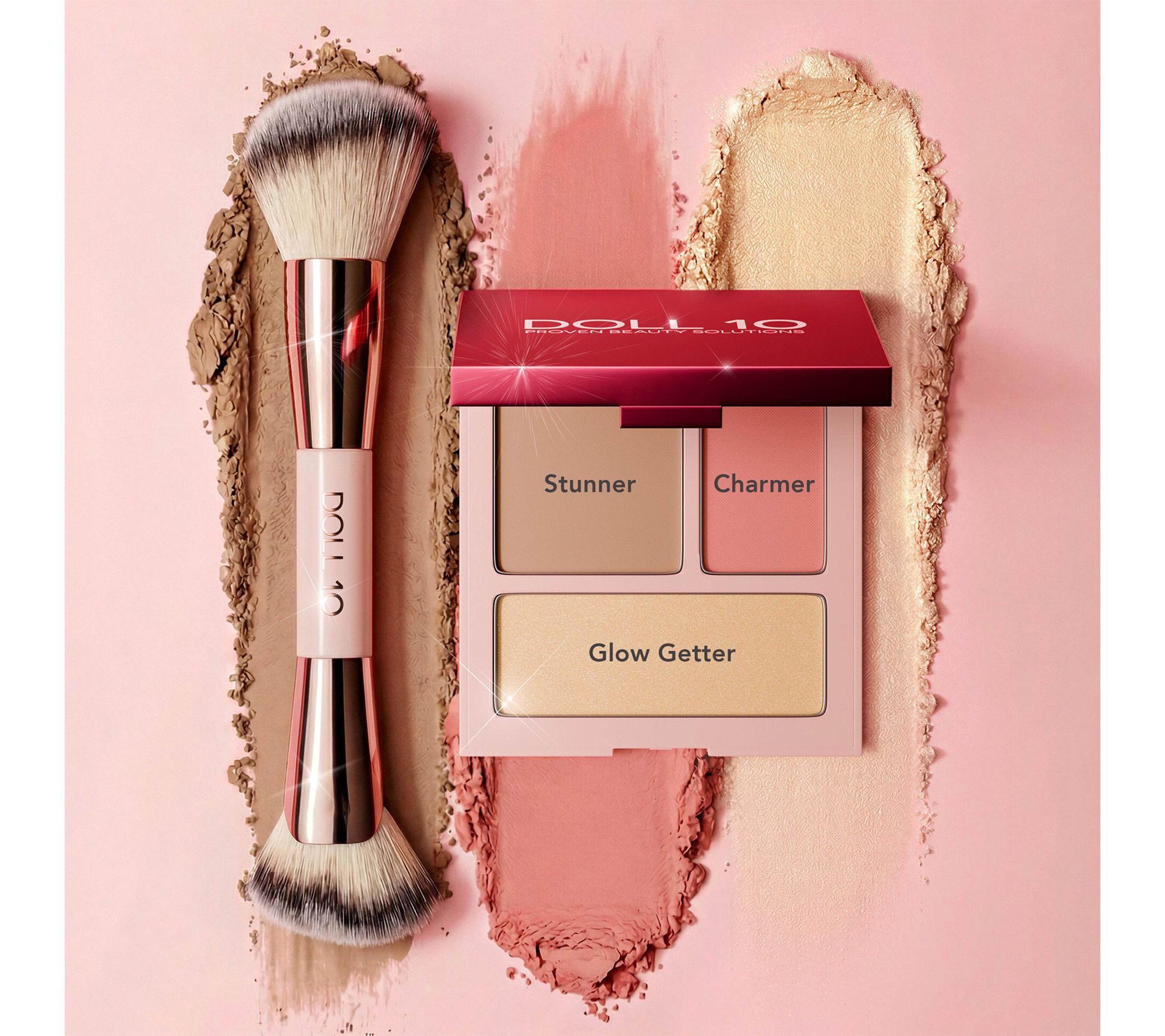 Equipped with a bronzer, blush, highlighter, and brush, Doris' Favorites palette provides you with a full face of beauty. The palette contains antioxidants (that may help fight against free radical aggressors), peptides (that help provide anti-aging beauty benefits), and aloe vera (which soothes skin with moisture). From Doll 10.