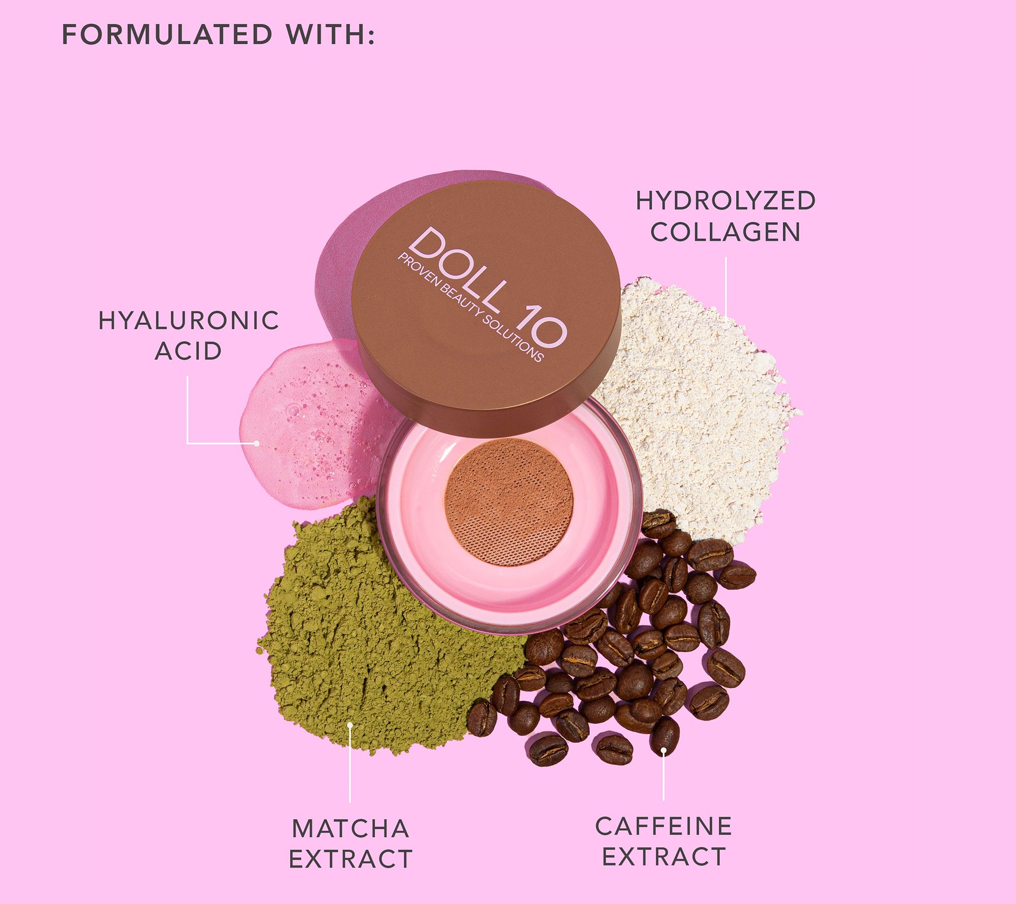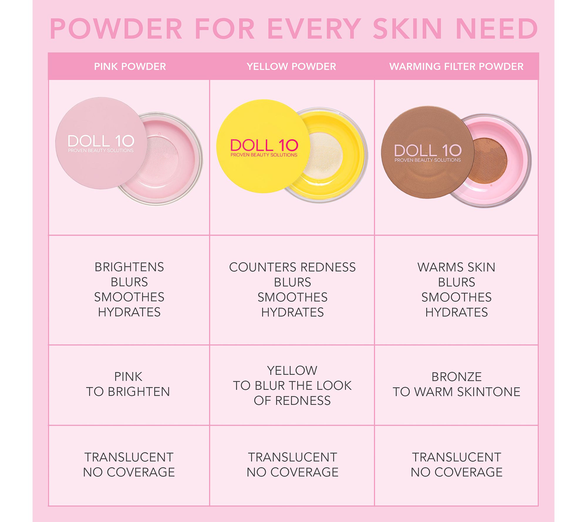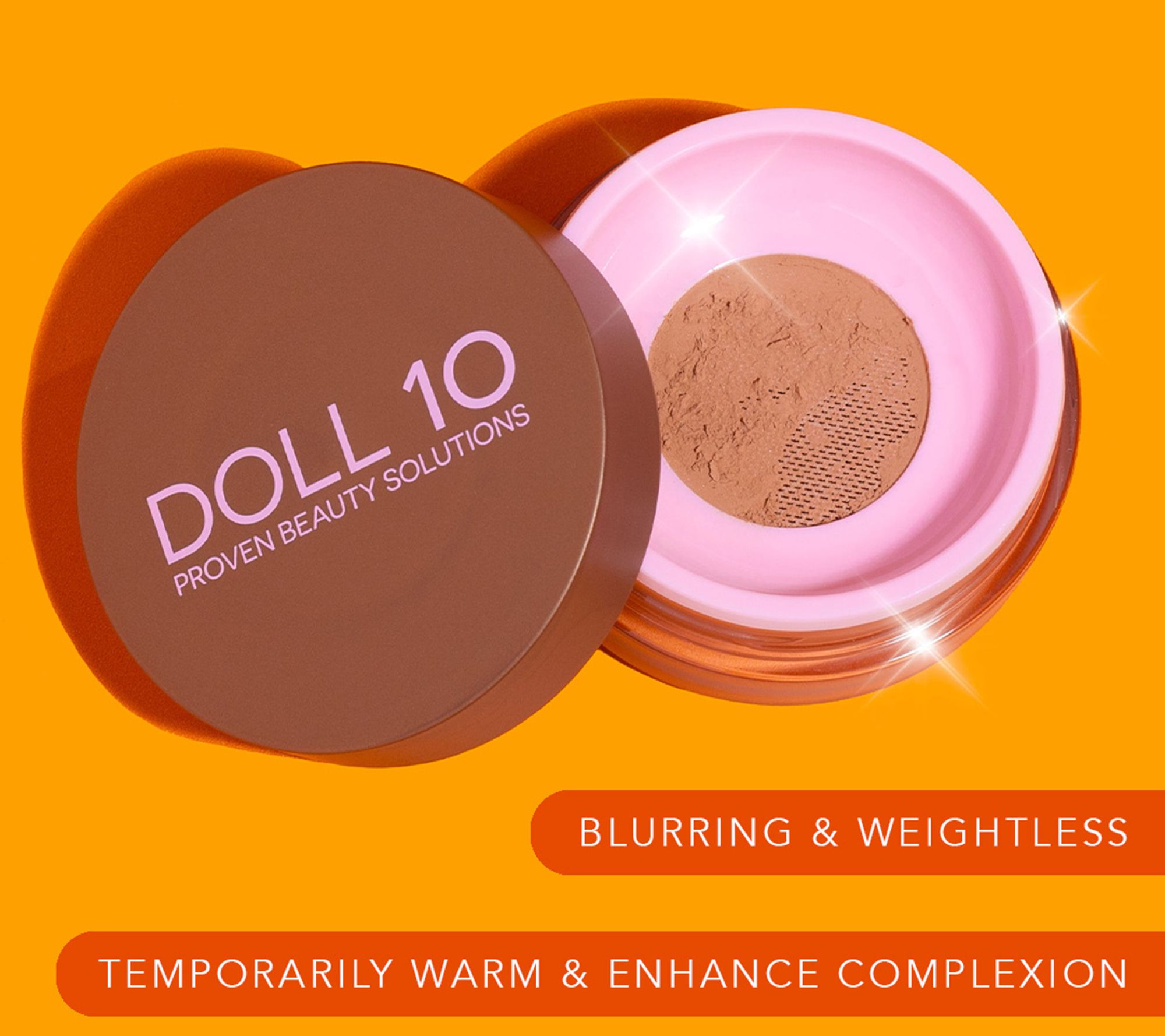 What is It: An ultra-blurring, weightless warming powder with brush| Creates an airbrushed finish while it provides a natural bronze. What it Does: The power of triple milled, bronzing mineral pigments. The luxurious formula temporarily minimizes the appearance of pores. How Do I use it: Generously dust the Doll Skin- Warming Filter Powder over the face. Focus on the forehead, nose, cheeks and chin. Rec: (1) 0.21 Doll Skin Warming Filter Powder (1) Brush