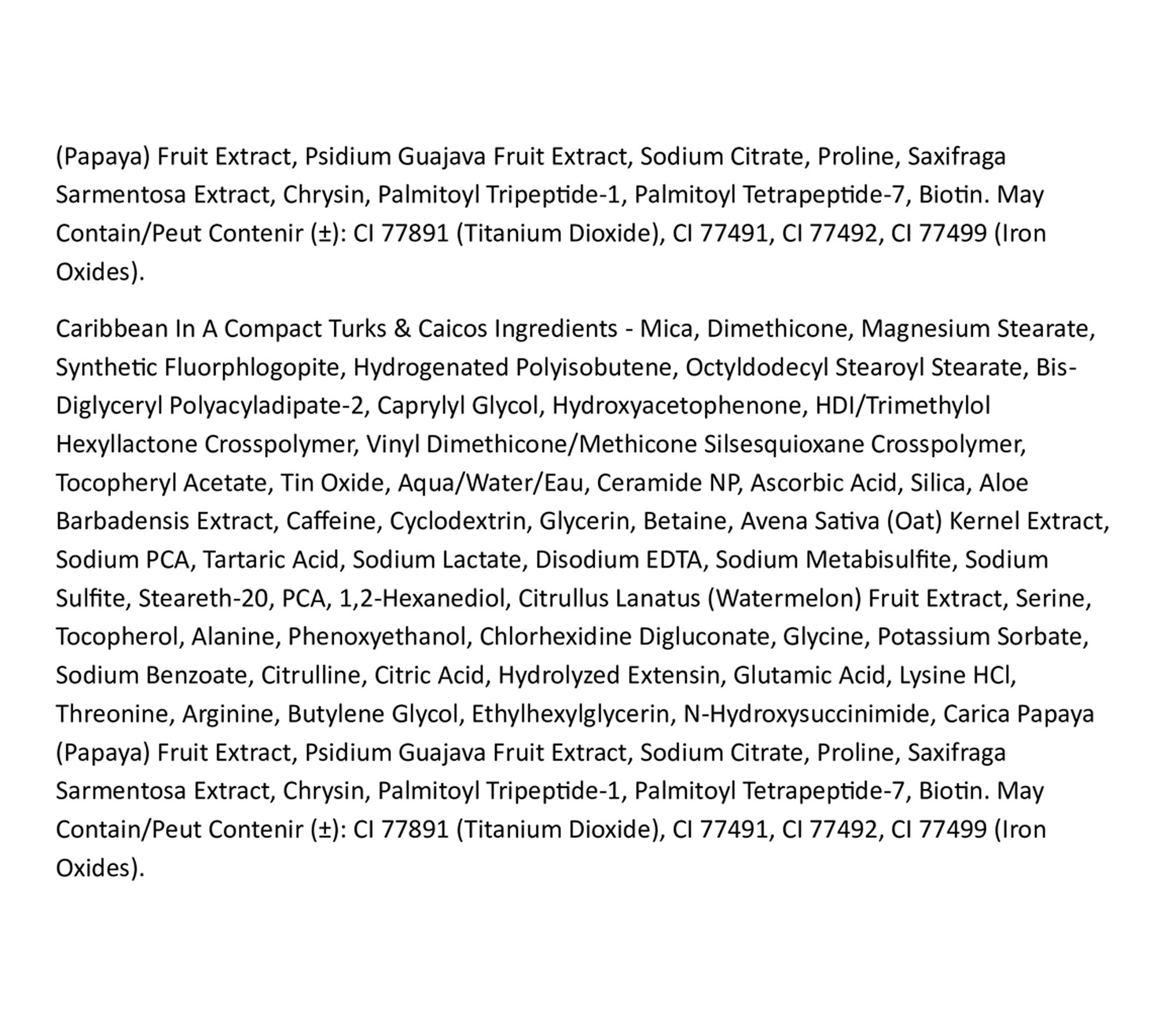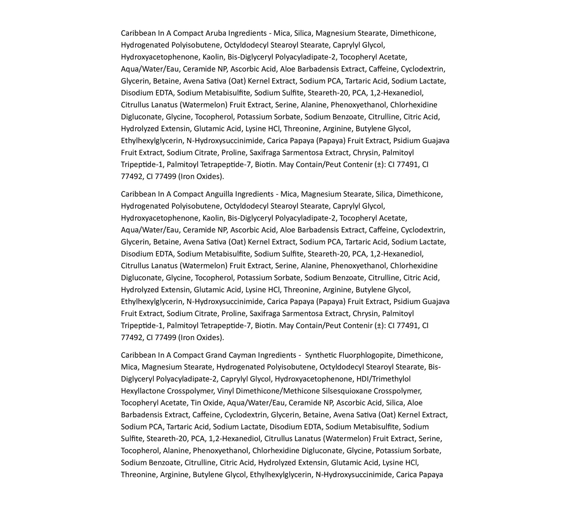 Caribbean In a Compact Bronzer Palette is a talc-free palette that works to enhance your complexion using shades that will contour, highlight, brighten, and warm. The weightless powders deliver a multi-dimensional luminescence to your skin tone, making it appear softer and lit from within. Designed to add warmth and luminosity to your skin, each of these shades will complement and enhance your unique complexion while allowing you to effortlessly contour, highlight, and glow. The classic sculpting contour shades define the cheekbones, nose, and jawline.