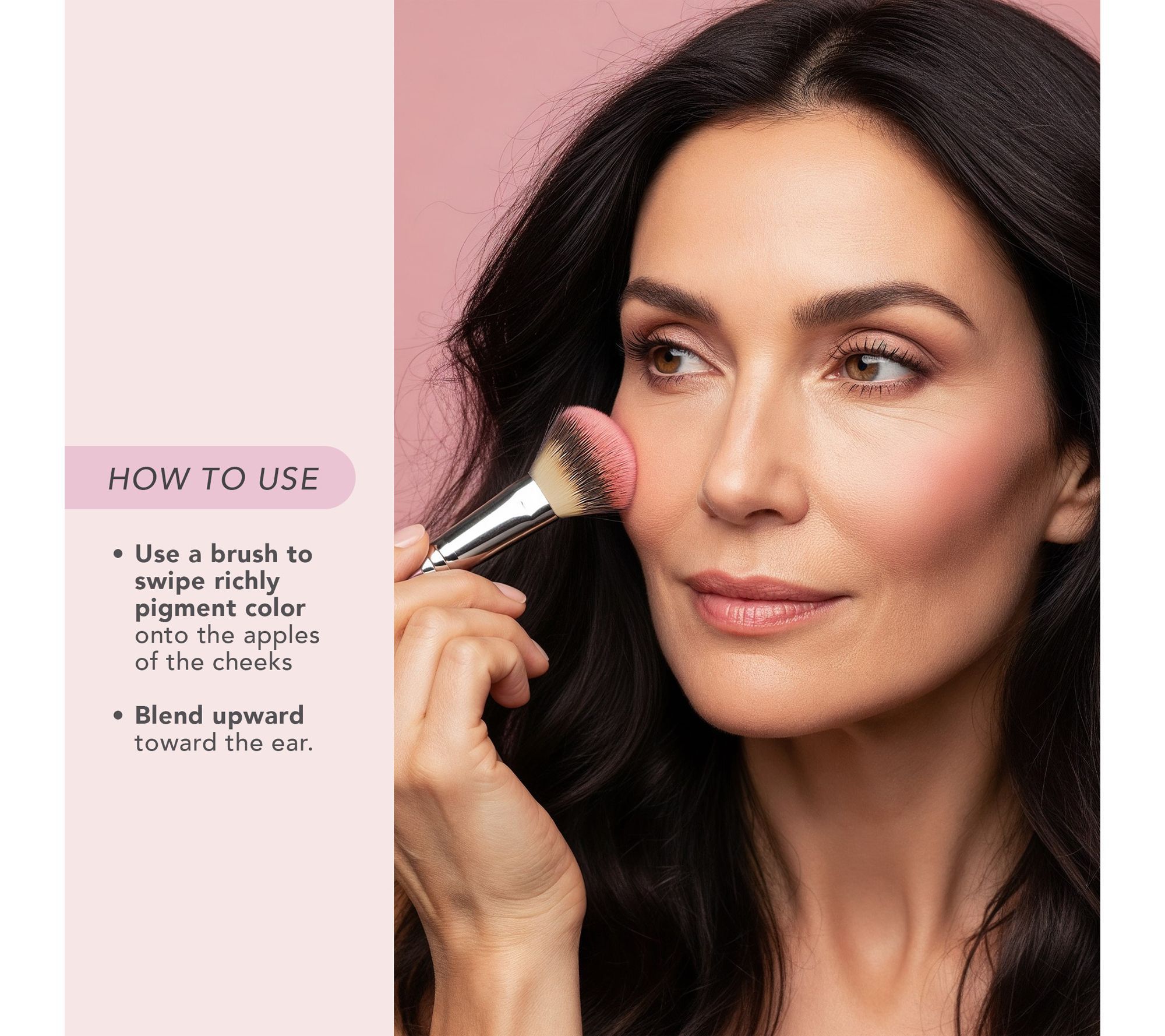 How do I use it: Use a brush to swipe richly pigmented color onto the apples of the cheeks, and blend upward toward the ear.