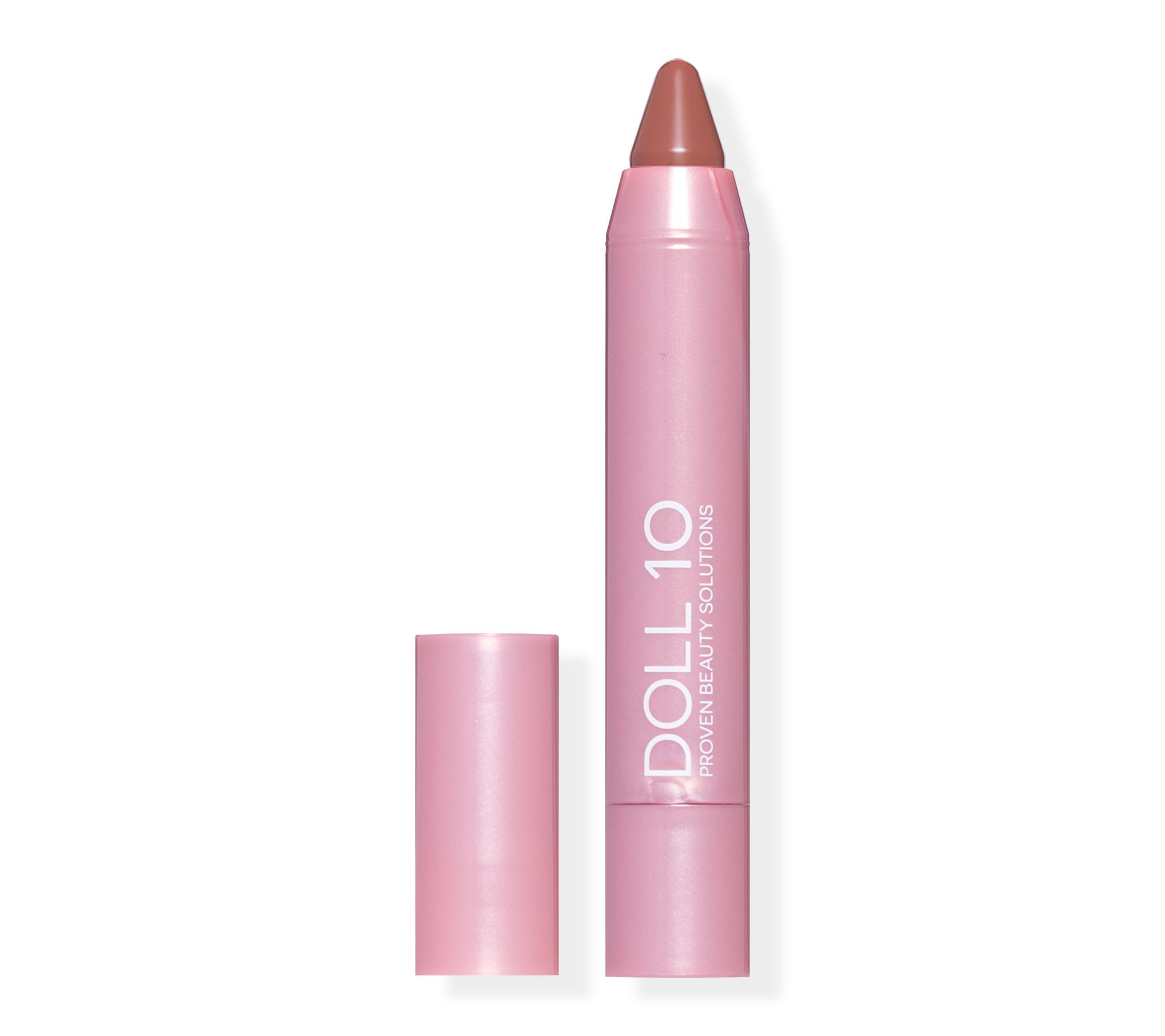 Discover a luxuriously creamy, full-coverage lip crayon that works with the pH in your lips for a custom color application. This lip formula is a dream cream for your lips. It's Doll 10's most plush and pigmented formula -- and may quickly become your lip go-to! The velvet cushion pigments adapt to your own lip color, making each shade incredibly wearable. The 3-in-1 lip crayon delivers a luxurious, plush application that gives your lips custom color, while the hydrating ingredient blend allows the color to move and flex with your lips. Formulated with ingredients including hyaluronic acid, prickly pear oil, pomegranate oil, and vitamin E. Cruelty-free.