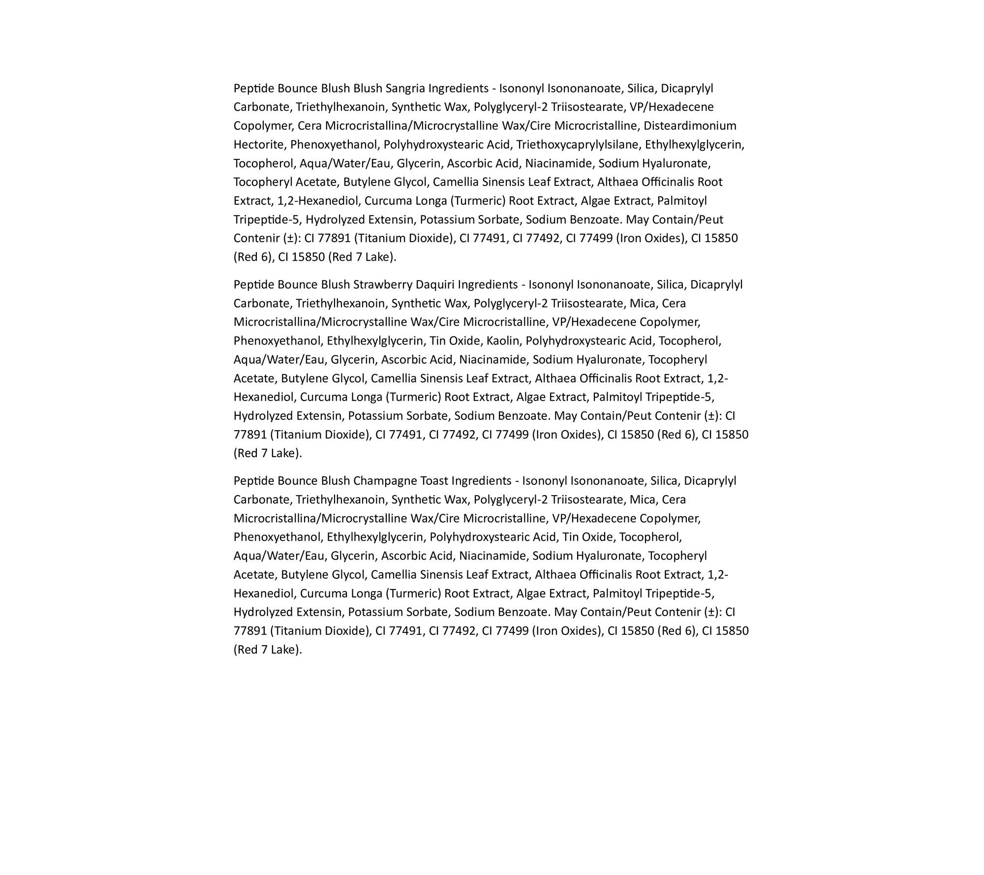 Peptide Bounce Blush is a water-based gel blush with a creamy, blendable formula that gives skin a healthy-looking flush of seamless color. This sensorial gel-based face color blends easily for a natural-looking, lit-from-within flush. It is made with ingredients including niacinamide and hyaluronic acid that leave skin appearing temporarily smooth and dewy. This dreamy formula melts onto skin for effortless, long-lasting color.