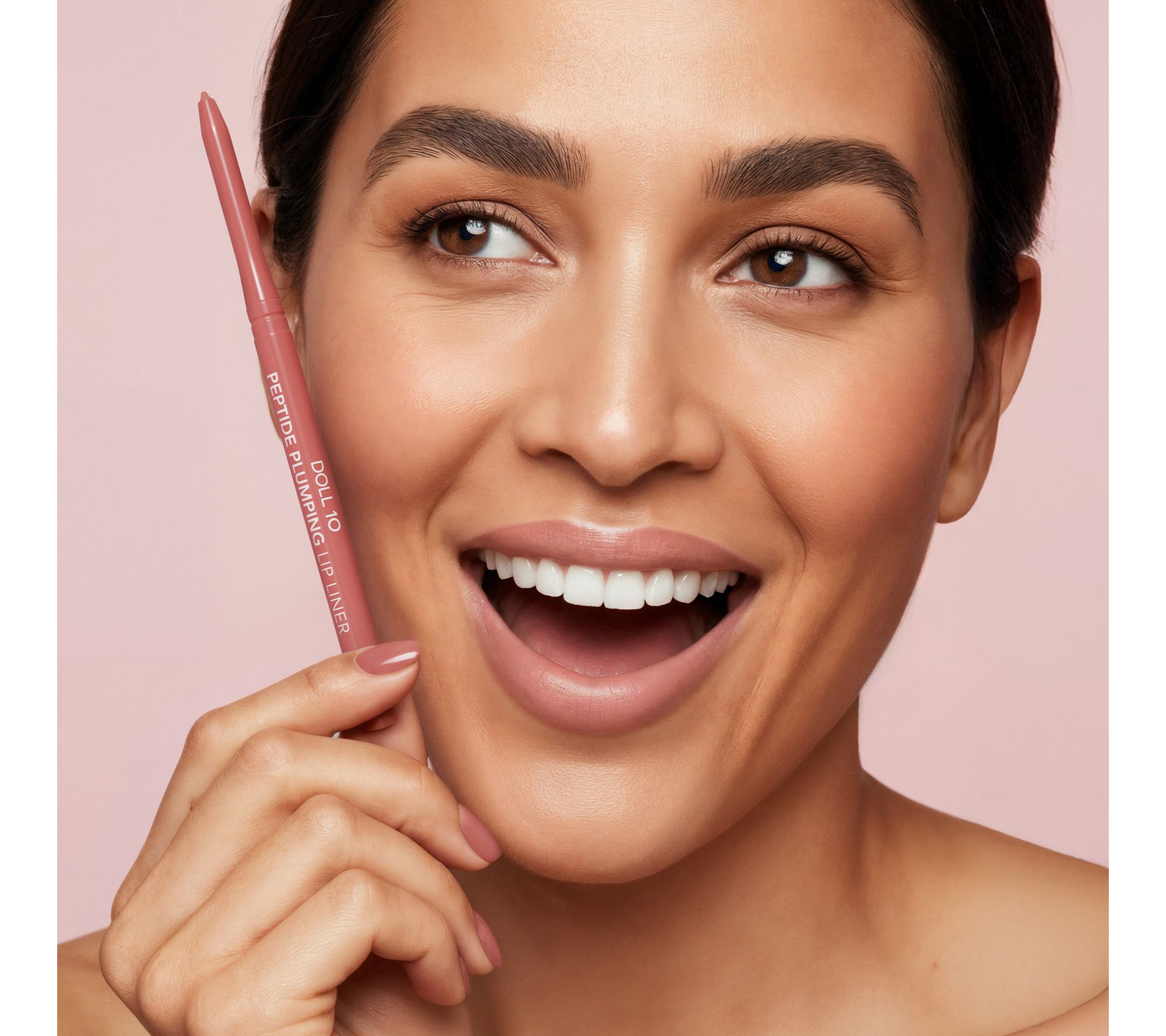 Fuller looking lips? We've got you covered! Doll 10 Peptide Plumping Lip Liner is a precision dual-ended lip liner that defines, sculpts, and shapes the lips to create the illusion of a fullness. The highly pigmented lip pencil provides a plush matte finish. It is enriched with ingredients like peptides, hyaluronic acid, and mango oil to plump the look of your pout while keeping it looking creamy and hydrated.