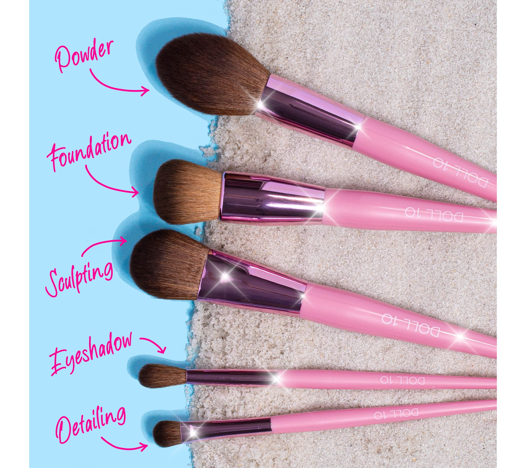 From Doll 10, this luxe special-edition set of five face and eye brushes keeps you feeling glamorous all season long -- plus a pretty pink brush case holds them all and make travel easy-breezy!