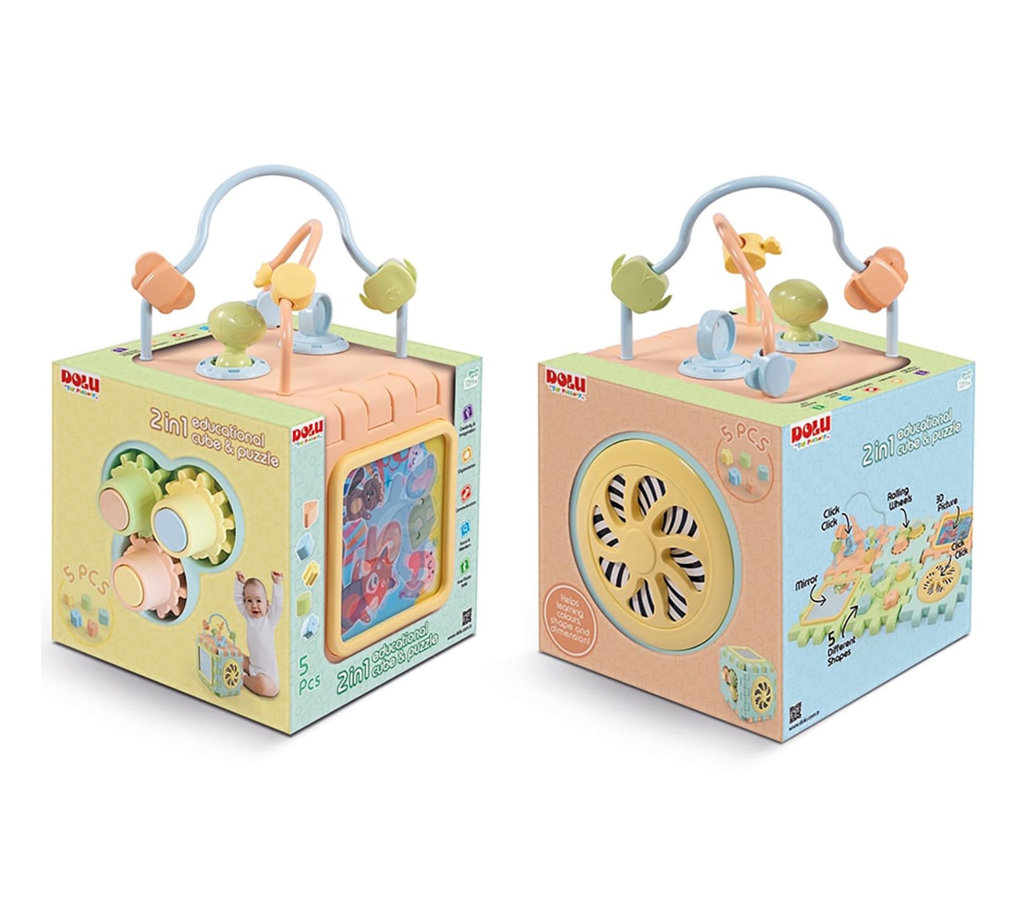 Encourage early learning and hands-on fun with this educational puzzle and activity cube designed for toddlers. With turn, twist, and spin features on every panel, little ones can explore colors and shapes while building coordination as they play. Enjoy versatile playtime whether the toy is stacked into a cube or arranged flat as a puzzle board. From Dolu.