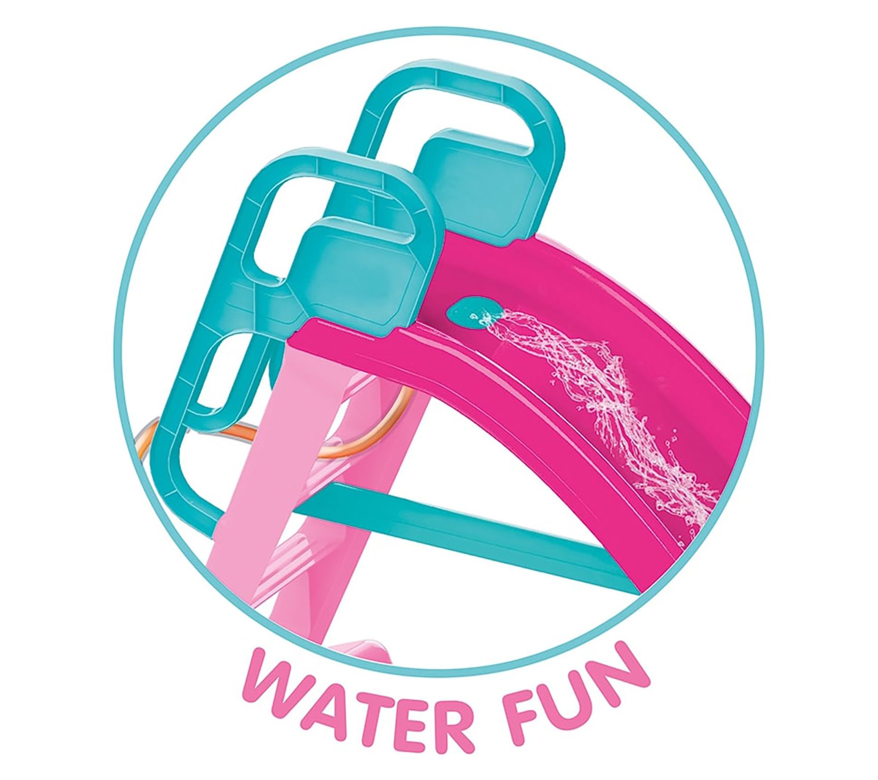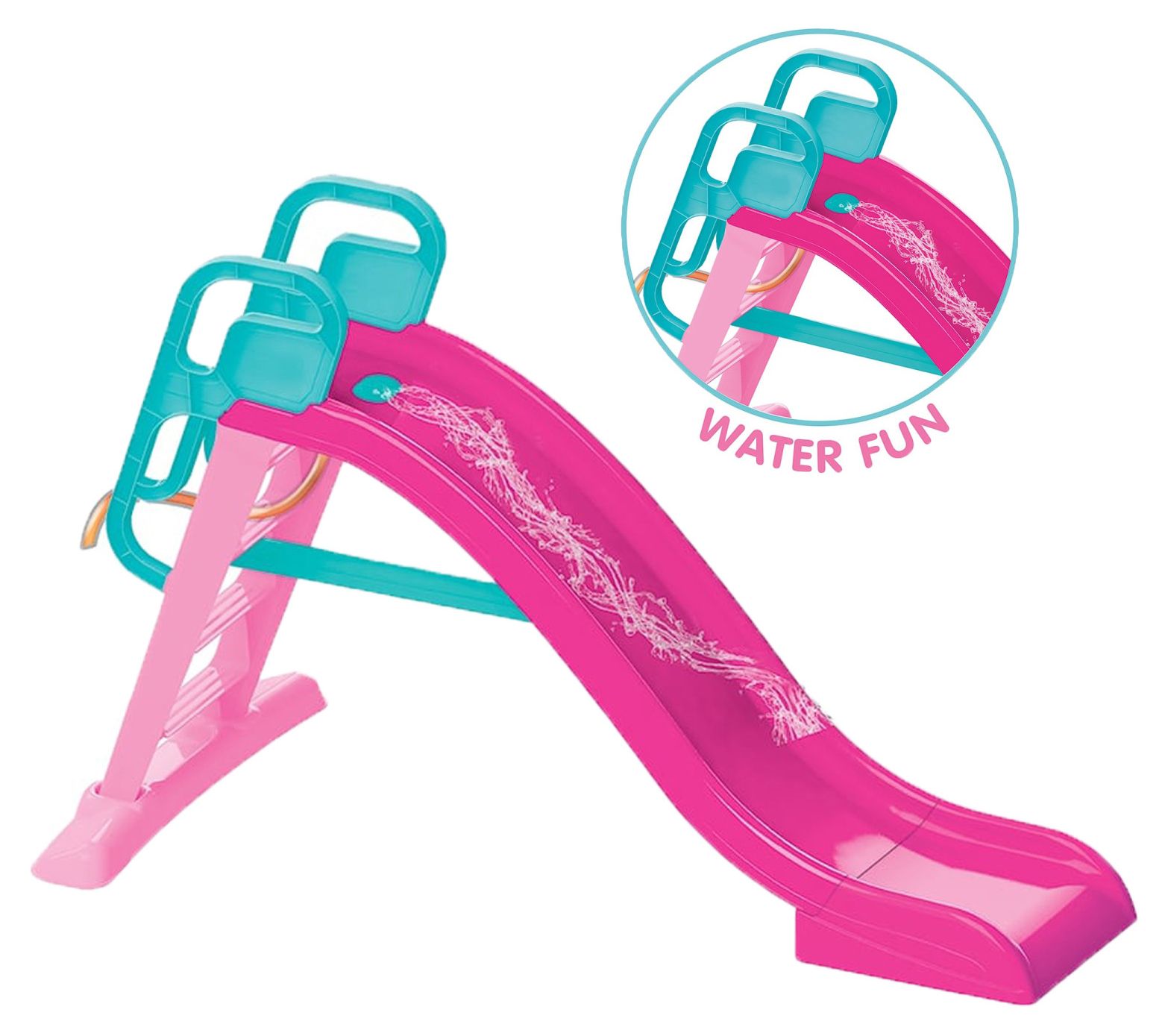 • Includes slide with ladder, two handles, and water hose