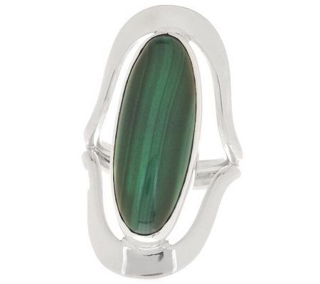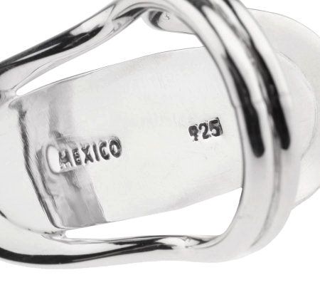 A beauty to behold. An elongated gemstone cabochon is bezel-set at the center of this artisan-crafted, sterling silver ring. Bordering the mesmerizing cabochon is an open, polished design. From Taxco Traditions(R) by Dominique Dinouart.